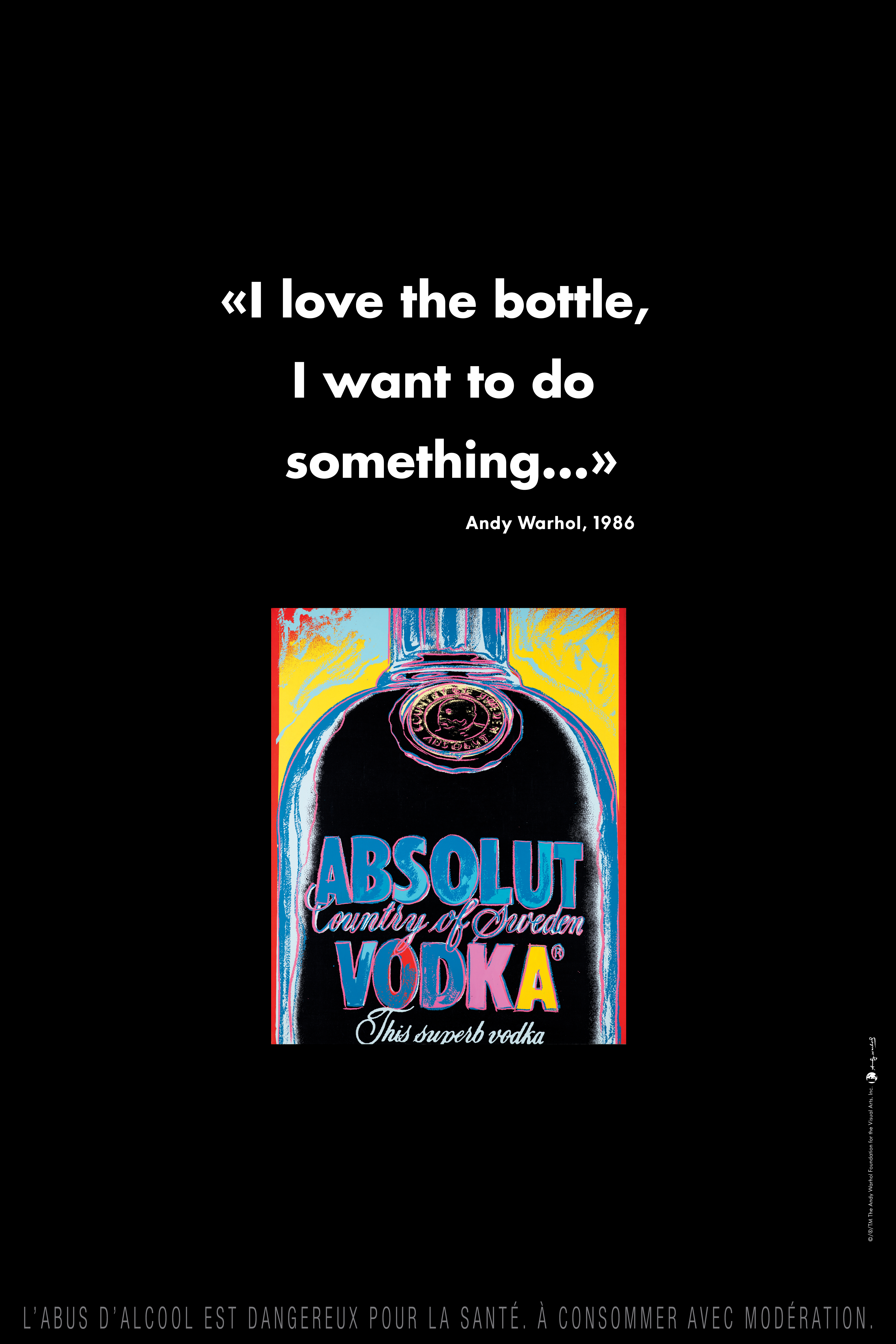 En 1986, lʼune de ces oeuvres devenait la très célèbre campagne de communication Absolut Warhol ; près de 30 ans plus tard, Absolut Vodka se révèle en édition limitée, dans un design directement inspiré de lʼoeuvre de Warhol. Réalisée conjointement avec la Fondation Andy Warhol, mécène influent dans le milieu de lʼart contemporain, Andy Warhol Edition ravive, dans le plus grand respect de lʼoeuvre, lʼesprit créatif et avant-gardiste du maître du pop art.