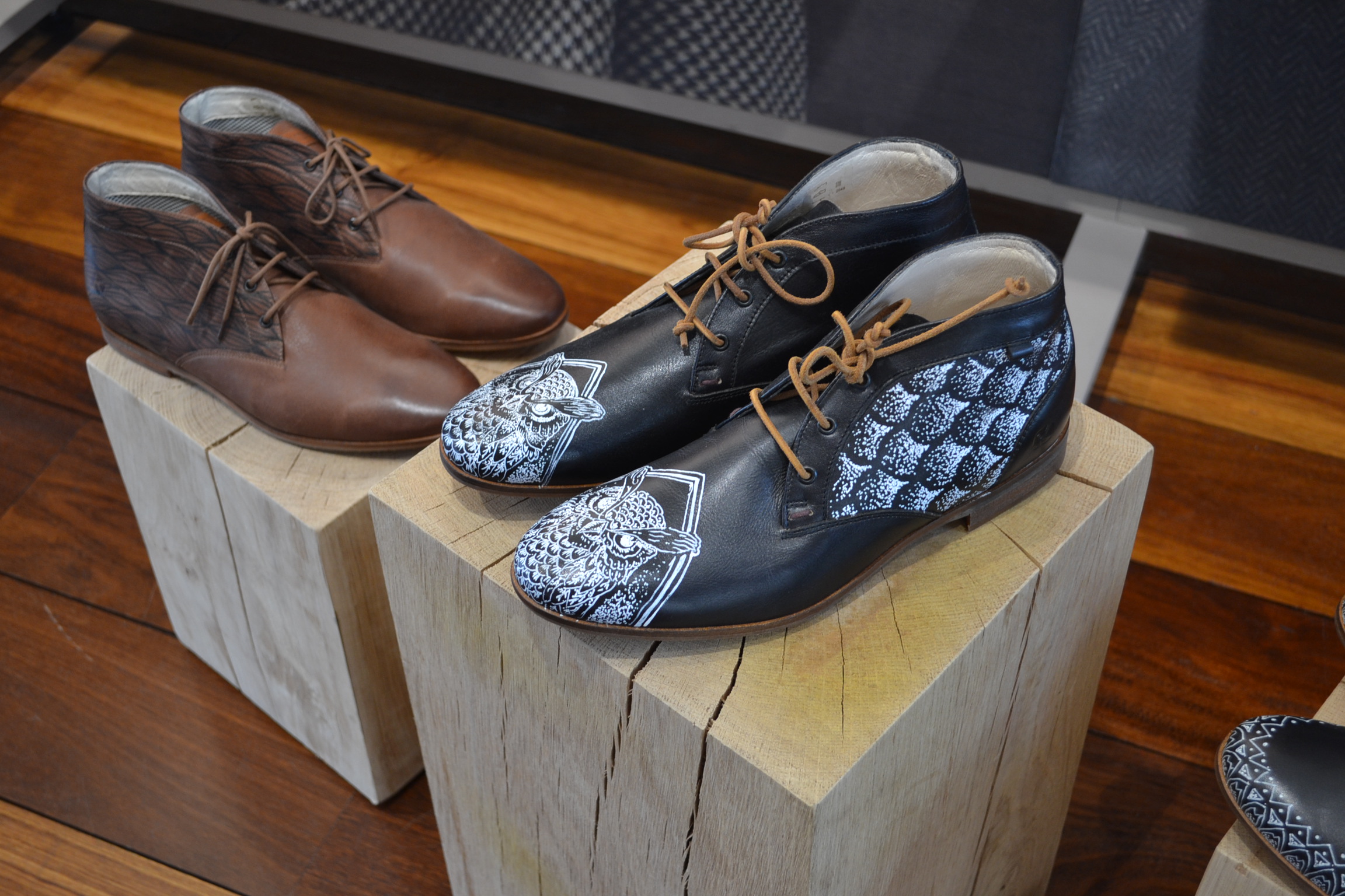 Kost dévoile donc sa nouvelle collaboration avec Hugo Dosu alias Opake, un artiste hyperactif qui s’est fait connaître par le dessin et le street art. Ses œuvres hyper réalistes faites au feutre ont bâti sa réputation en un rien de temps. Après avoir eu sa période textile où il produisait lui-même ses t-shirts, il est revenu à ce qu’il aime le plus, le dessin. En connexion avec la scène artistique Française depuis sa création, Kost s’est donc associé à Hugo Dosu. Entre précision et design, l’artiste s’est surpassé sur les trois paires de la marque. Ce soir là, de nombreux oiseaux exotiques peuplent le Showroom. Une ambiance très fun ! J’ai pu jeter un œil aux  différents modèles de la marque. Ce que j’ai pu voir est vraiment séduisant.