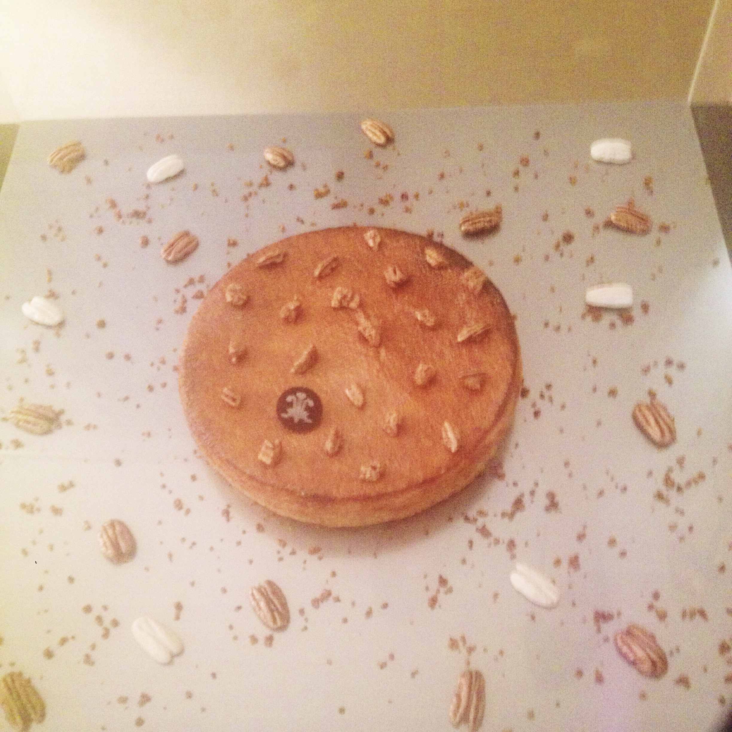 Ici l’amande de la frangipane a été remplacée par la noix de pécan, les couches de pâte feuilletée caramélisées au beurre des Charentes sont parsemées de quelques noix brunies puis le fondant de la crème pâtissière à base de noix de pécan (appelée aussi pacane) torréfiée se dévoile.