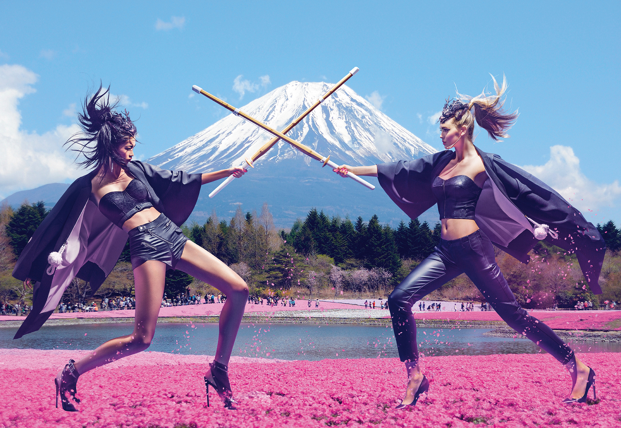 C’est au Japon que se sont posés les objectifs de Chen Man. En toile de fond nous retrouvons les magnifiques paysages du pays du soleil levant :Fujiyama, les prairies de Tokyo. Cette campagne publicitaire, orchestrée par le PDG et directeur créatif de GUESS, Paul Marciano, met en avant les deux GUESS Girls, Megan Williams et Karmay Ngai.