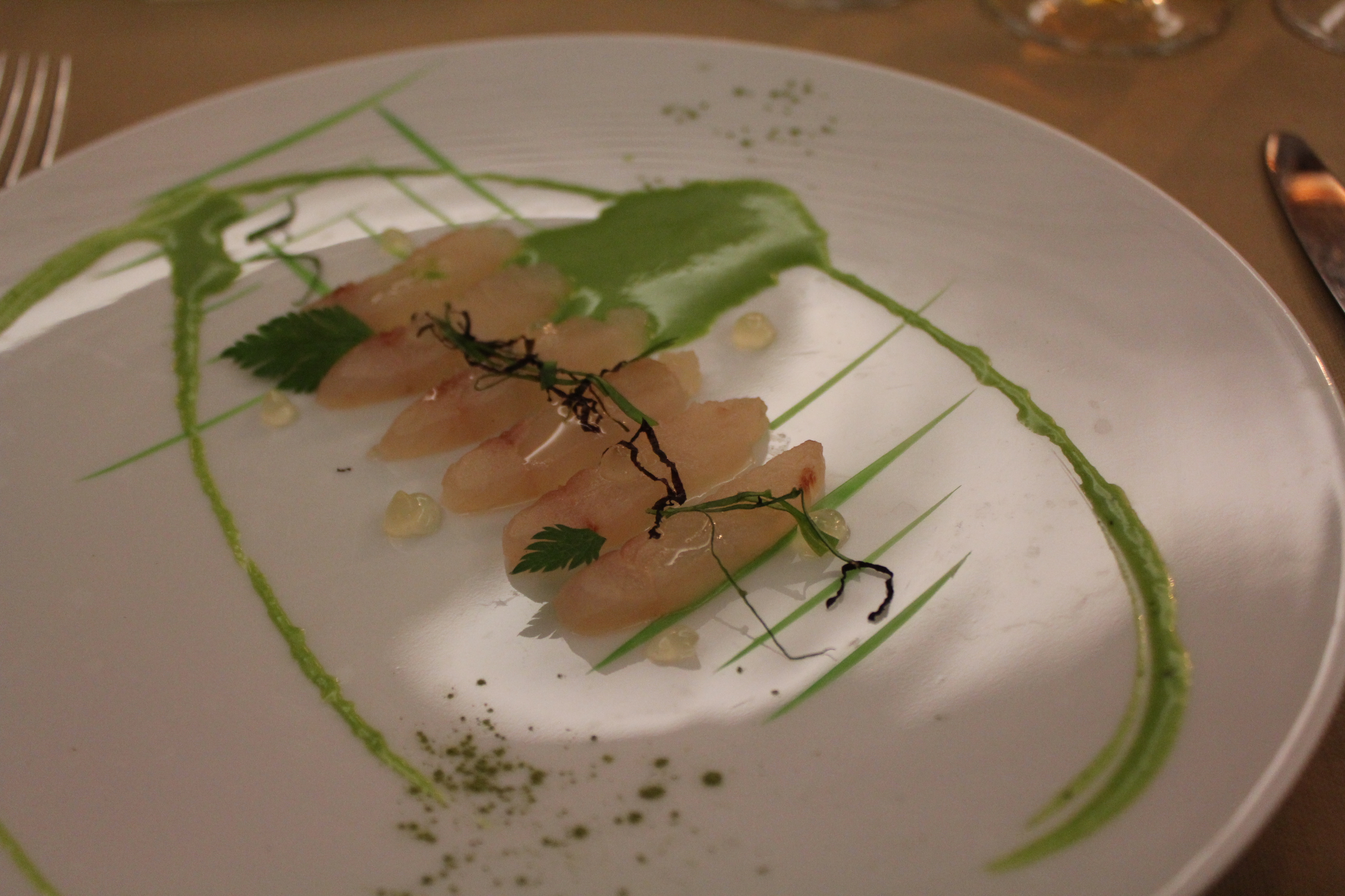«Fines tranches de fera juste cuites au sel, légèrement fumées à l’épicéa»