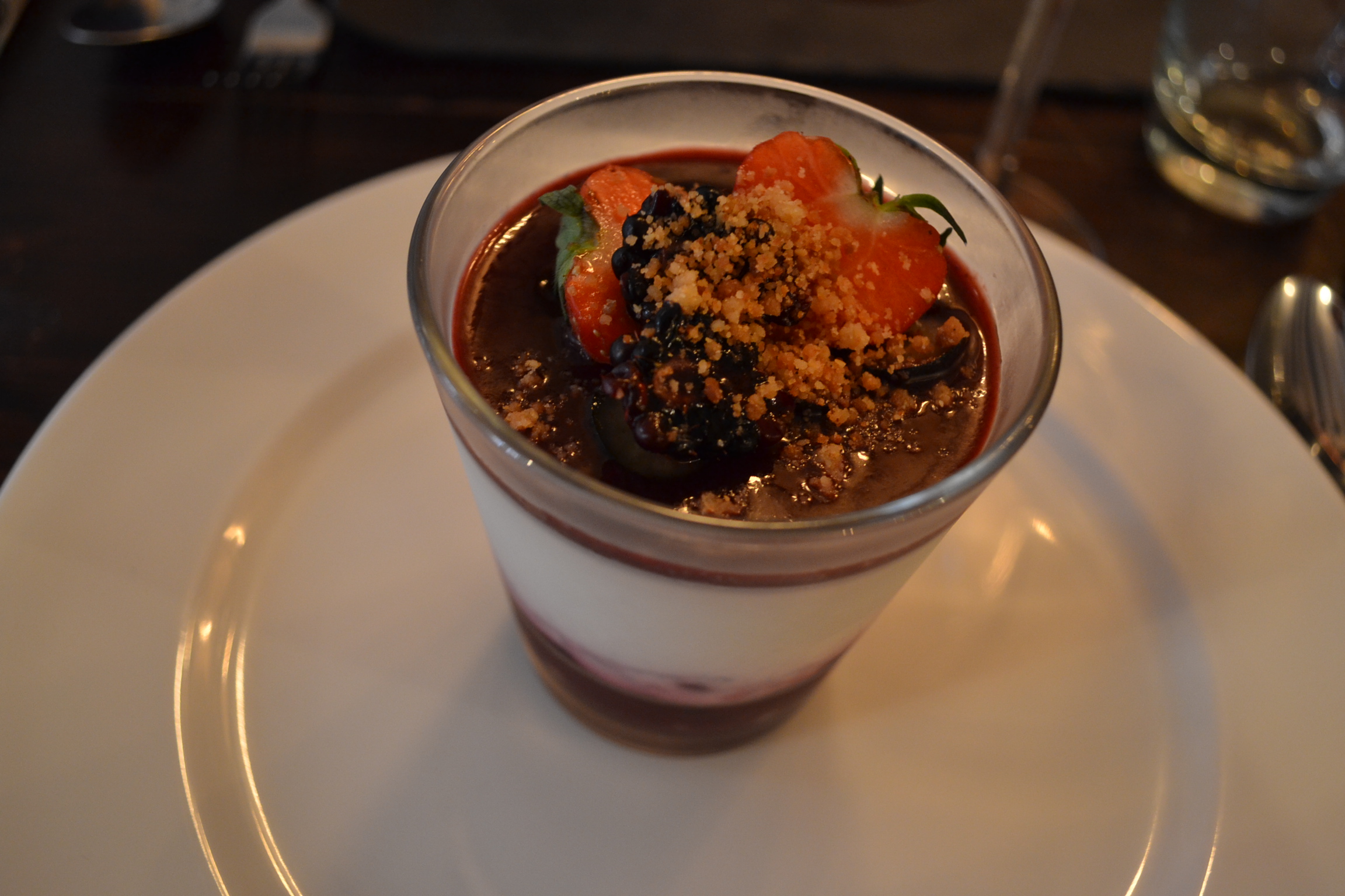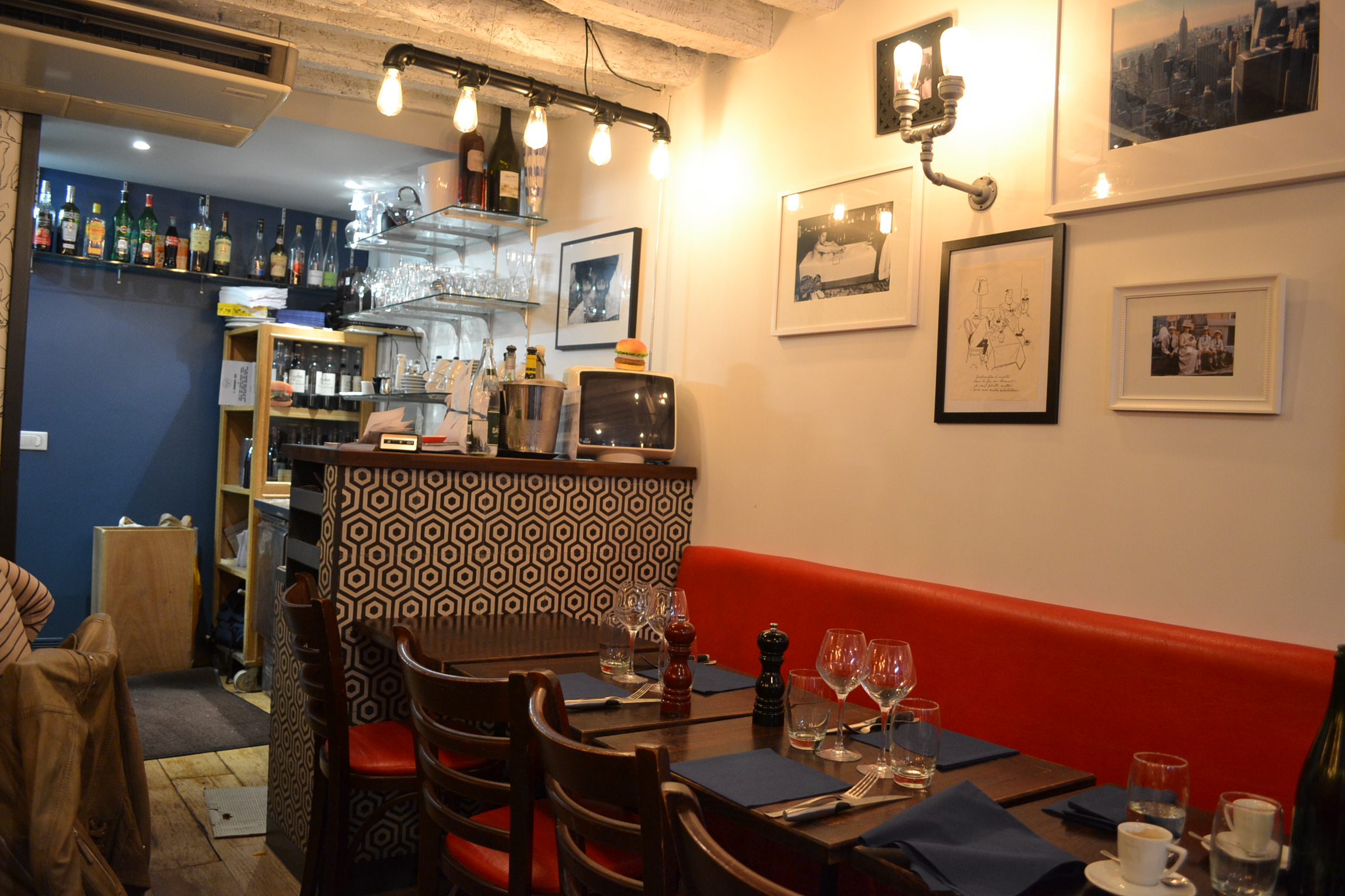 Tous les desserts sont faits maison. J’opte pour une panacotta fruits rouges. Le service est vraiment bienveillant et très efficace. Les tenanciers ont vraiment la pêche ! Côté déco, l’architecte Juliette Moreau a pensé un endroit chaleureux sur deux étages, avec, au sous-sol, une touche américaine : des boxs pour préserver l’intimité et des écrans avec des cartoons en noir & blanc pour les bambins, et diffusion de concert le soirs !!