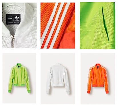 La veste iconique Adidas a été ré-imaginé par Pharrell Williams. Ce sont trois vestes « Superstar » blanche, rouge et verte, en cuir Nappa perforé et signé par les trois bandes iconiques de la marque, qui ont vu le jour. Quelques nouveautés sont évidemment à noter : la coupe plus courte et les manches redessinées rappellent le style « bomber ».