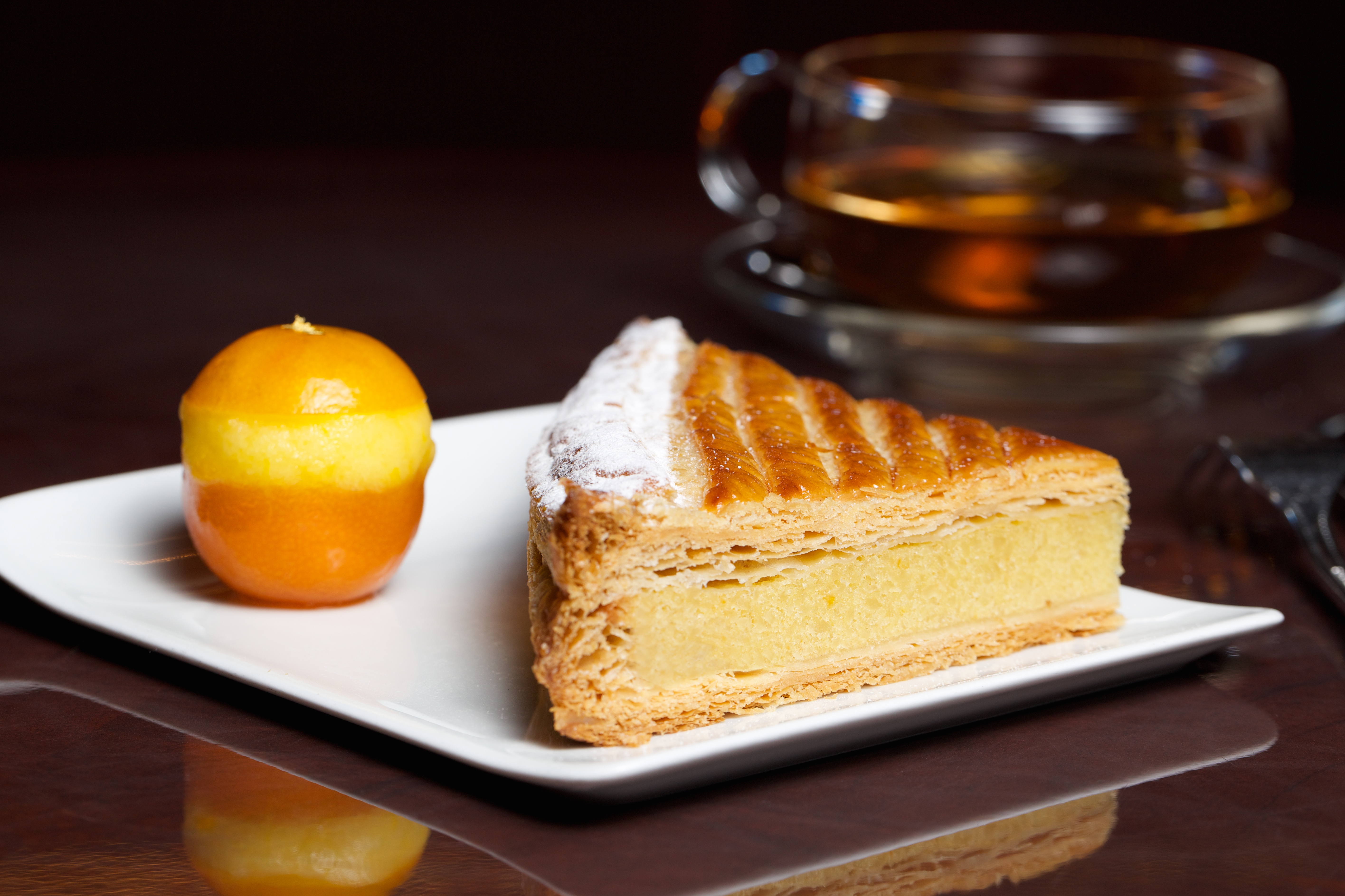 On a pu aussi découvrir la fabuleuse galette des rois carrée avec un feuilletage a&r&, fourrée à la frangipane légère d’amandes Valencia torréfiés extrêmement fine et goûteuse, vanille Bourbon, confit de clémentines corses et soupçon de mandarine impériale, le tout couronné par quatre clémentines corses confites remplies d’un sorbet maison à la clémentine. Disponible jusqu’au 21 janvier pour 4 à 6 personnes : [email protected]