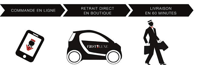 Ce tout nouveau concept de livraison de luxe vous permet de faire votre shopping sur internet et d’être livré dans l’heure qui suit. C’est simple, rendez vous sur le site internet ou l’application FIRSTLUXE (disponible sur tablette et smartphone) et découvrez les quelques 10000 références de plus de 350 boutiques.