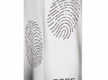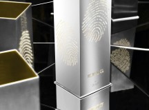 L’étui aux lignes élégantes et contemporaines est ajouré sur chacun de ses côtés, où des écritures composent des empreintes digitales, évocation de l’identité et l’histoire propre à chaque bouteille. Une fois retiré le coffret Krug Grande Cuvée, le fourreau servira de photophore, laissant filtrer la lumière au travers des empreintes découpées dans le métal.