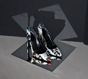 En plus d’utiliser les polaroids de la célèbre iconographe, Eugène Riconneaus s’est approprié l’image de la femme pour l’apposer sur un des souliers de la collection. Ainsi, il réaffirme son goût pour la culture underground, forte des années 70 et 80. À travers ces escarpins, c’est aussi son goût pour le style punk féminin qui ressort.