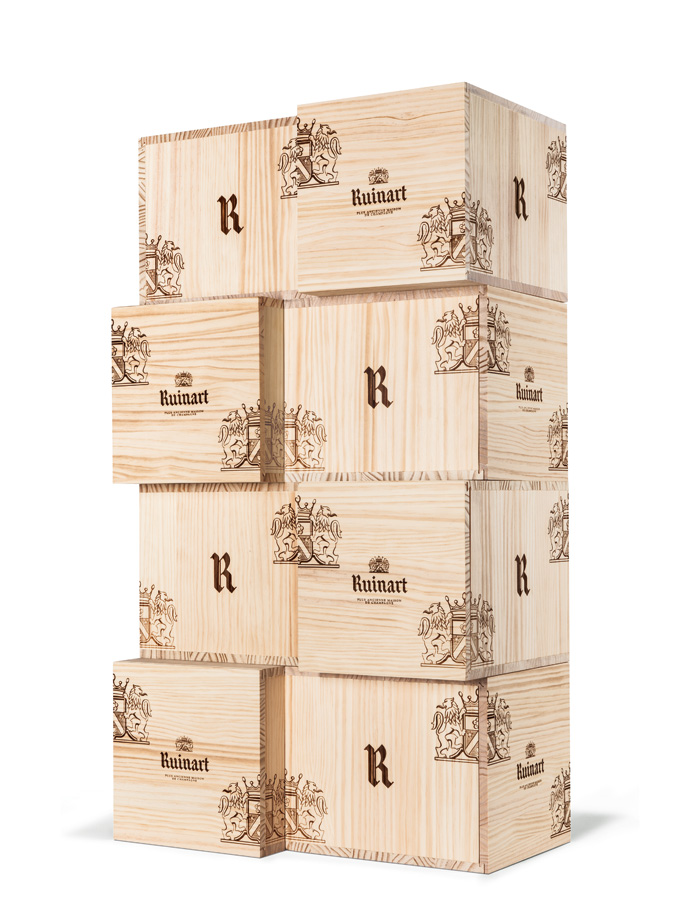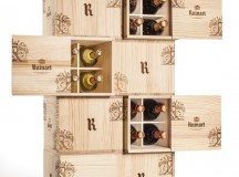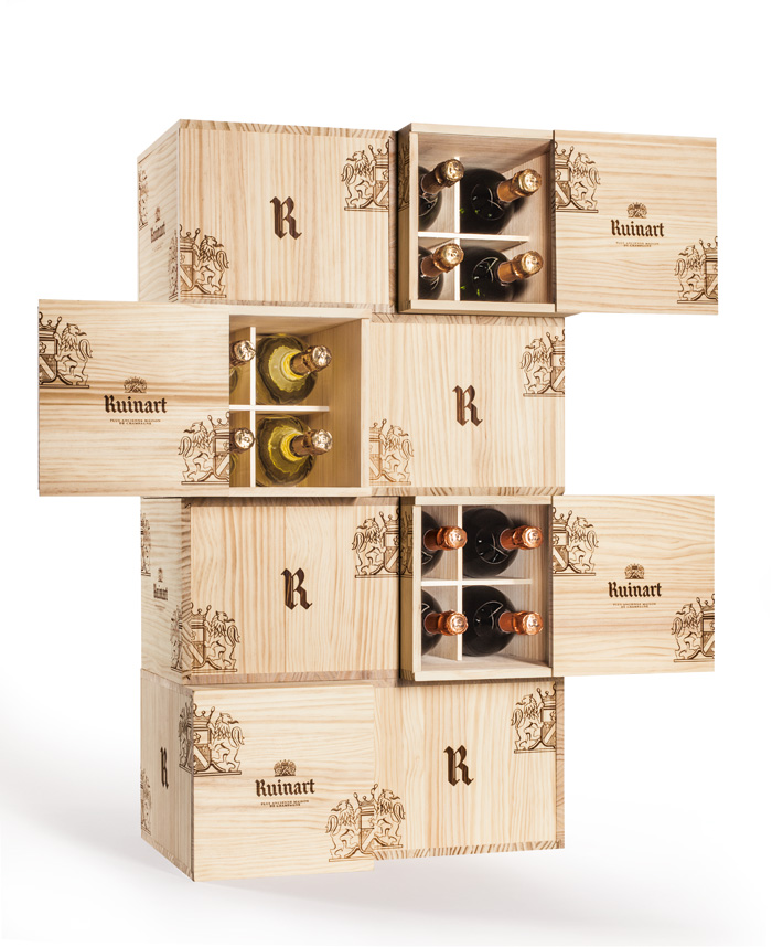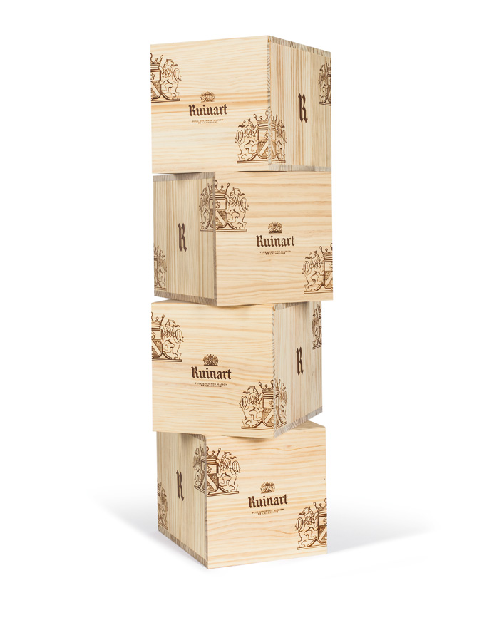 À l’occasion des fêtes de fin d’année, la Maison Ruinart a imaginé la Caisse-Cave, caisse bois pratique et ludique : rectangulaire, elle s’empile tel un jeu de construction,