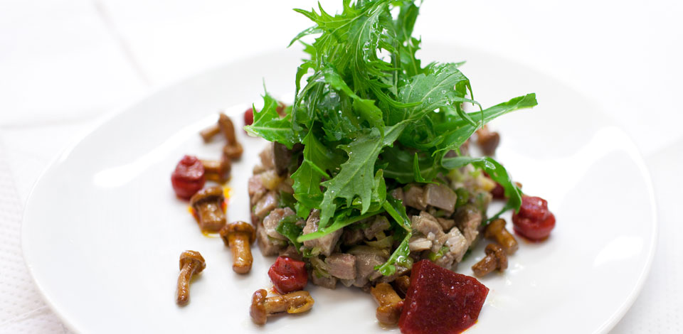 > Les Suggestions du Marché, les classiques de l’Auberge : T-bones de veau rôti, risotto, champignons des bois (26€), Filet de boeuf rôti, gratin de macaroni parmesan, jus poivré (28€), Côte de cochon fermier rôtie, gnocchi au chorizo gratiné au parmesan (24€) ou encore Les premières St Jacques rôties au beurre coriandre, citron confi t, paprika (28€).
