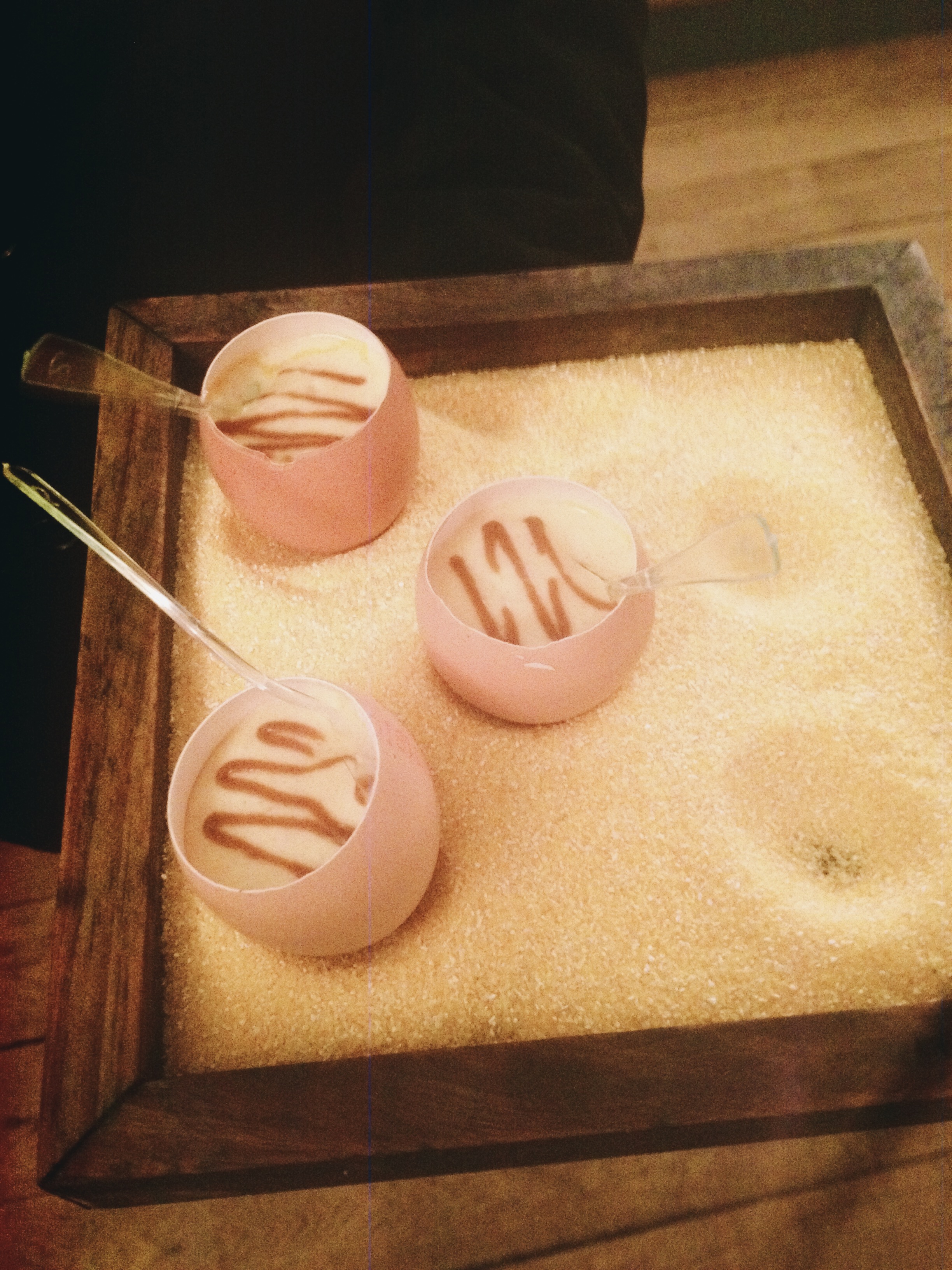 Nous passons ensuite aux plats, avec le plat signature du chef : l’oeuf, mais et cumin
