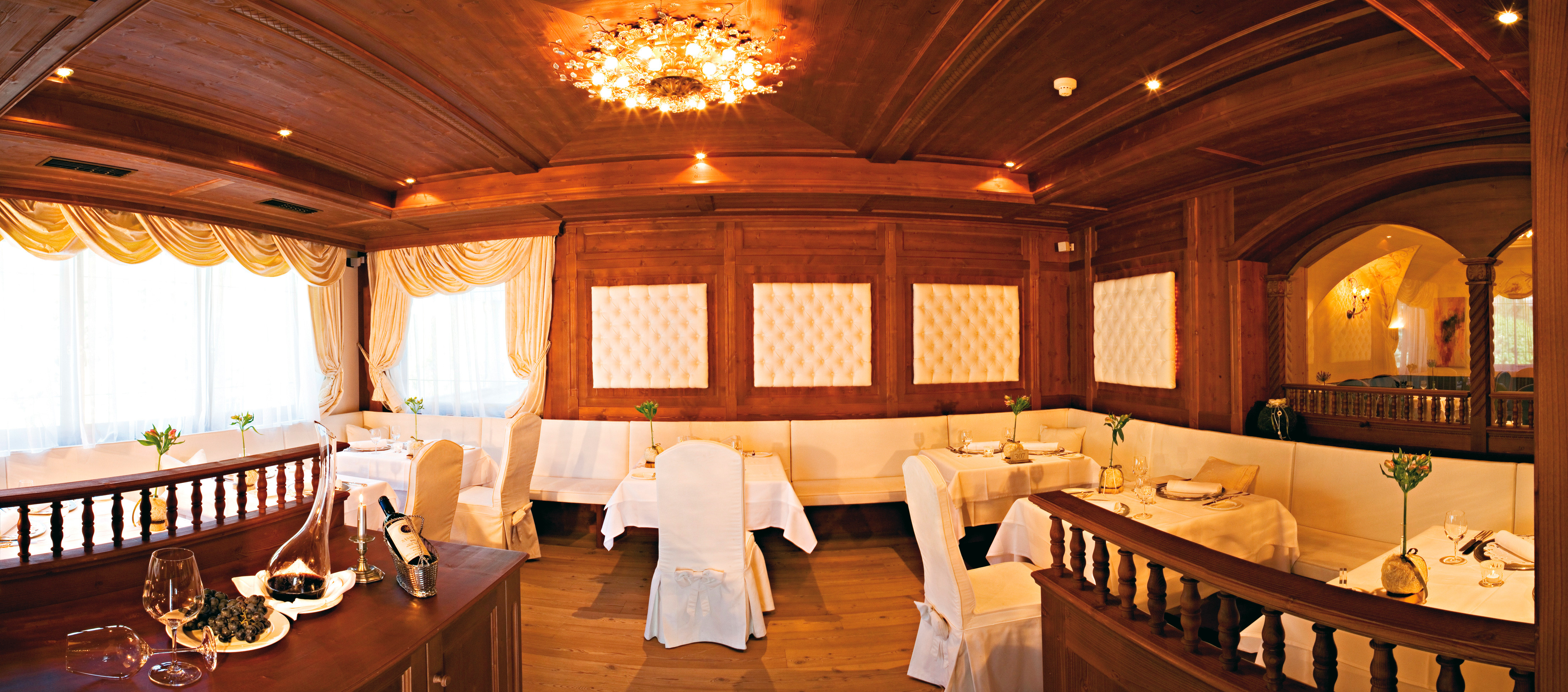 Ses plats signatures sont de véritables révélations gustatives. Un service de haut vol ainsi qu’un excellent registre oenologique sous la houlette du sommelier Franz Lageder (élu meilleur sommelier du Tyrol du Sud en 2014) ajoutent à la qualité de cette table remarquable.