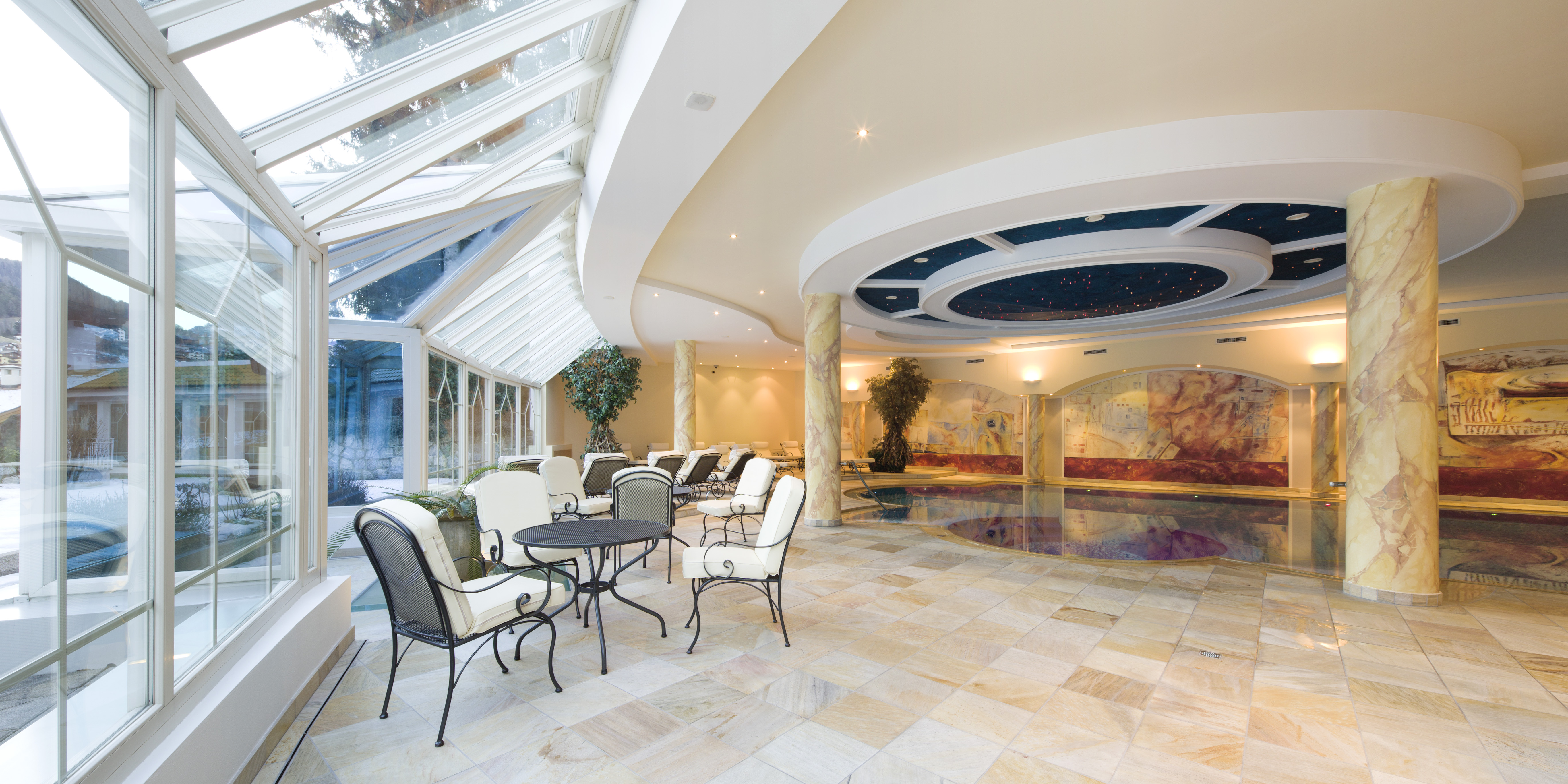 Ce refuge montagnard d’exception, classé 5 étoiles, est l’un des fleurons hôteliers de la célèbre station de sports d’hiver d’Ortisei (St Ulrich) dans le Val Gardena, une destination phare des Dolomites. Cette ville est connue pour son artisanat de la culture du bois et sa gastronomie.