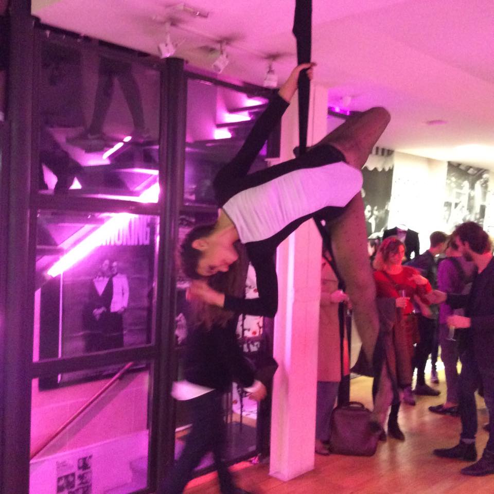 Le 27 novembre s’est tenu le vernissage de la nouvelle collection capsule « Dancing smoking » de Stefanie Renoma auquel nous avons été conviés. Lors de cet événement, « Dancing smoking » chapitre 3, nous avons été surpris par la richesse de la mise en scène (projection vidéos, performeuse aérienne, photographies…). Et pour cause, Stefanie aime animer ses nouvelles collections de multiples surprises qui mettent en valeurs son style en racontant une histoire.