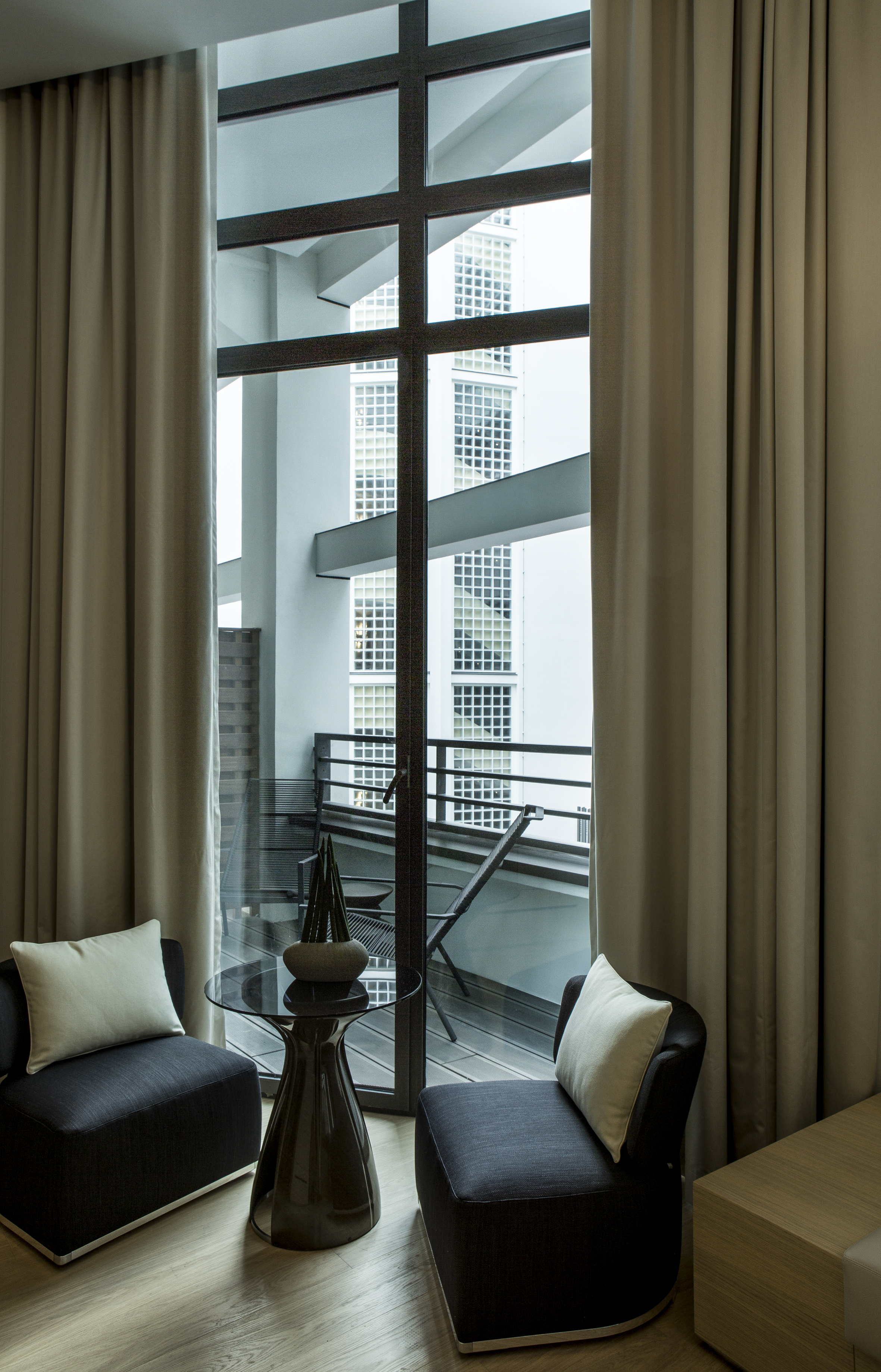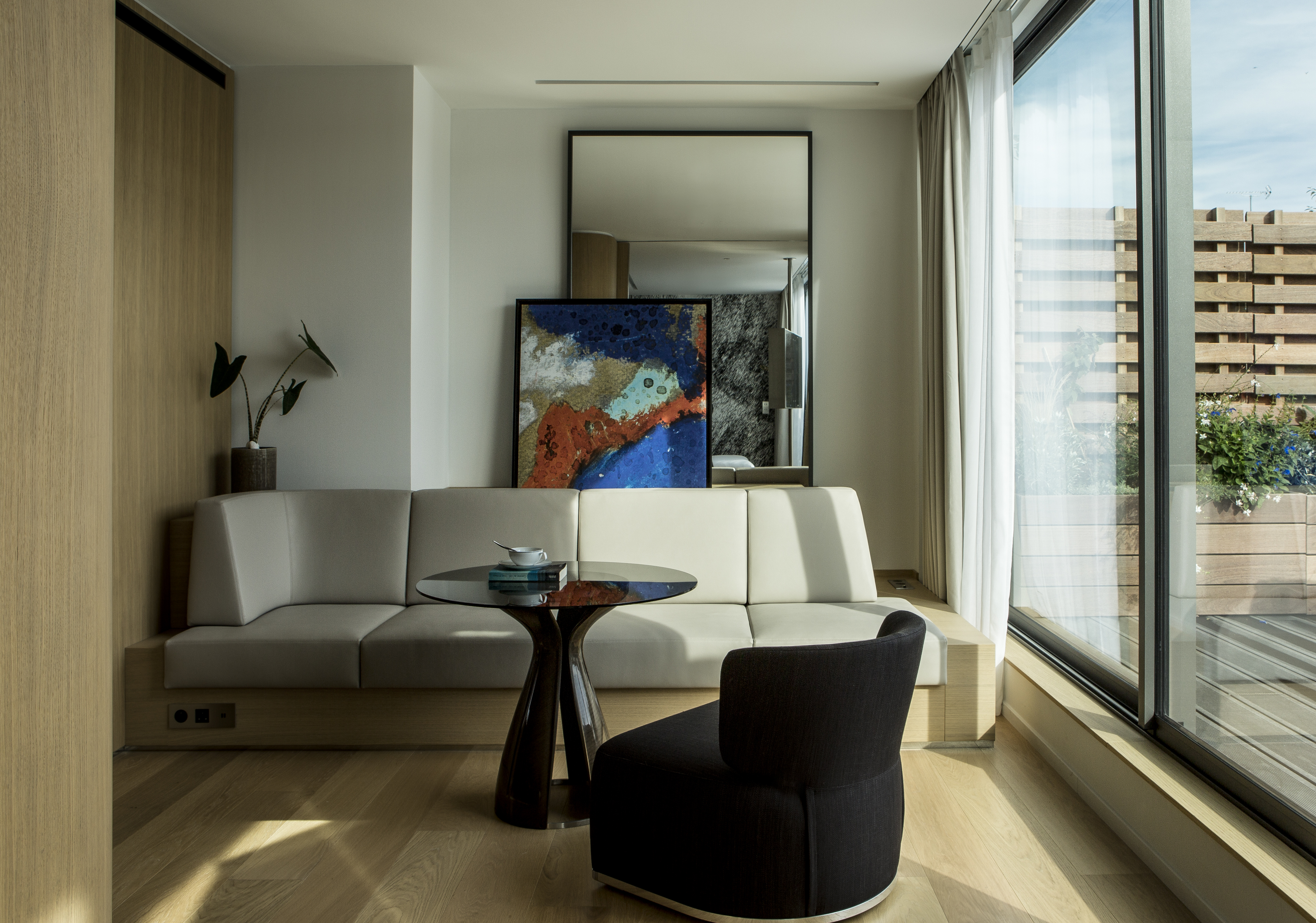 Dans un registre domestique en cohérence avec le quartier, toutes les chambres, dont certaines en duplex, sont perçues comme des ateliers de collectionneurs à l’identique des parties communes où les œuvres d’art et les pièces de mobilier en édition limitée donnent au projet une identité unique.