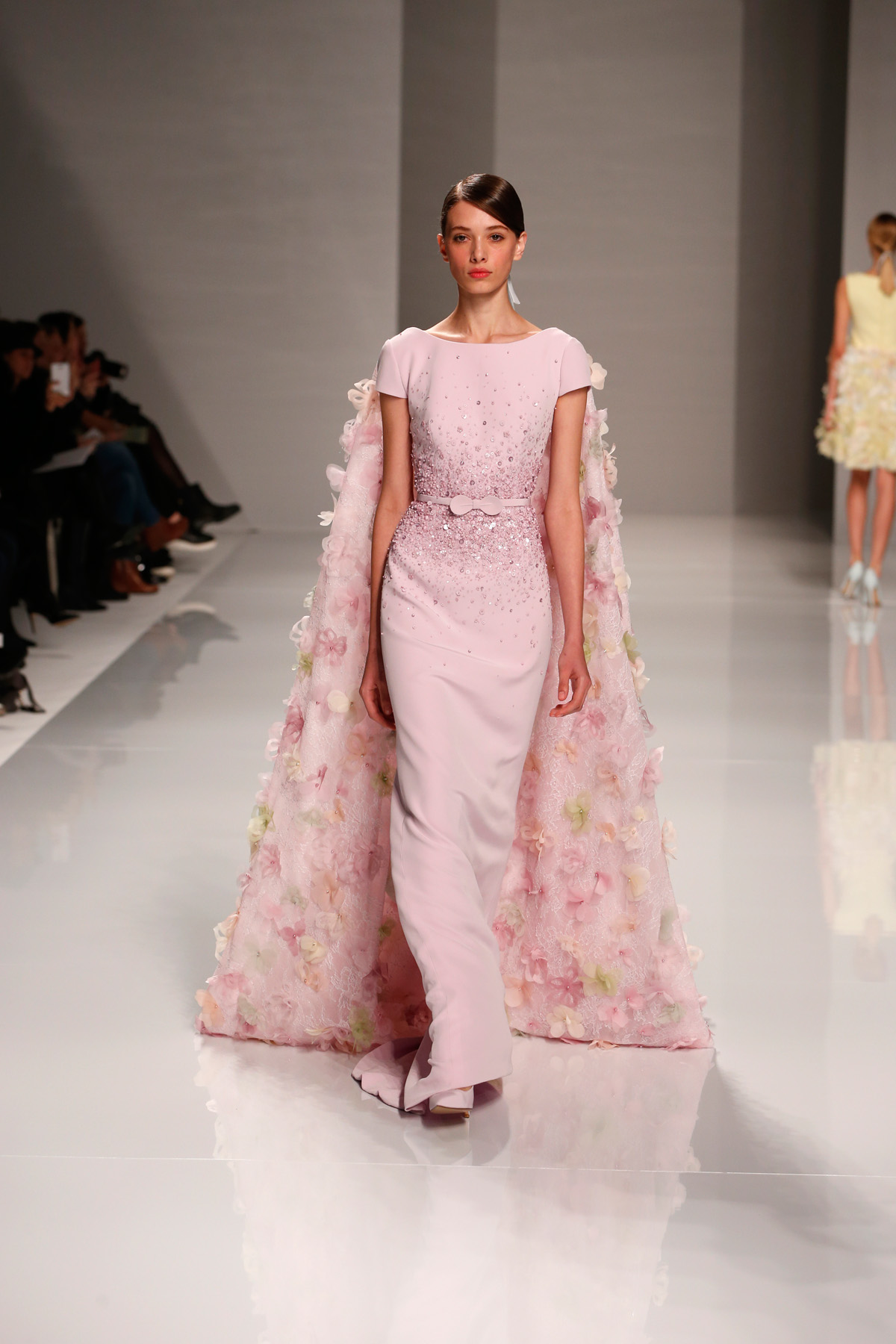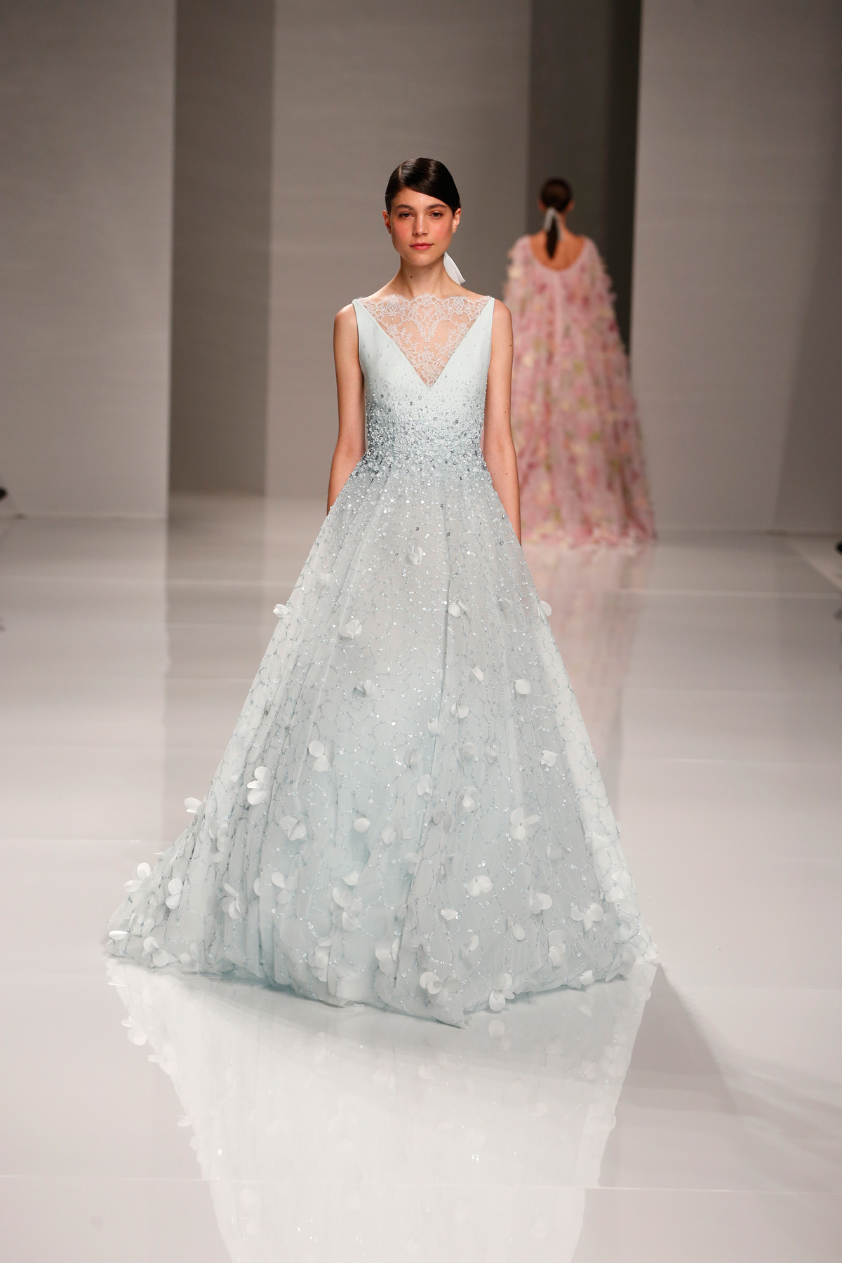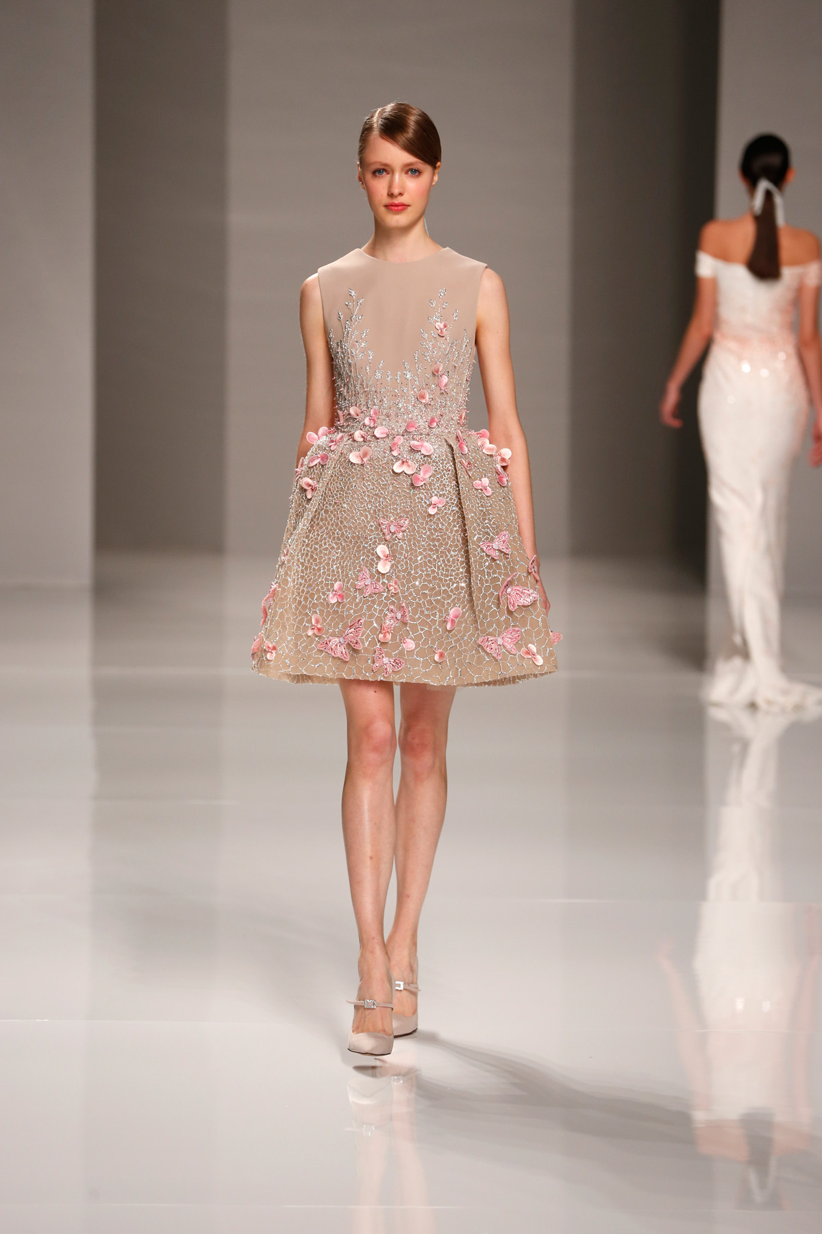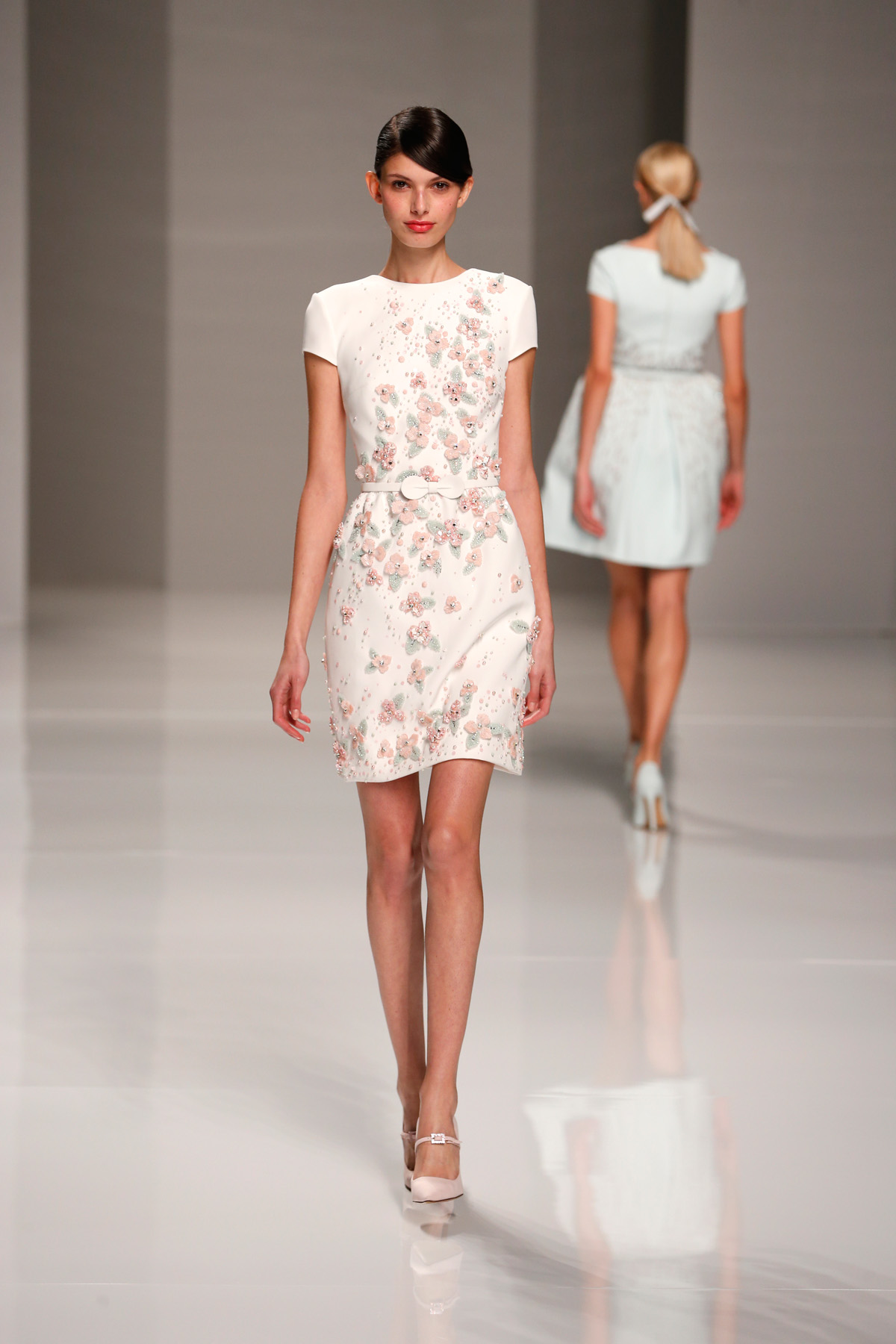Sa collection printemps/été propose des couleurs pastels aux touches fleuries réchauffant l’hiver, embellies dans des pièces aussi longues que courtes. De véritables tenues issues tout droit d’un conte de fée, aussi scintillantes que légères.
