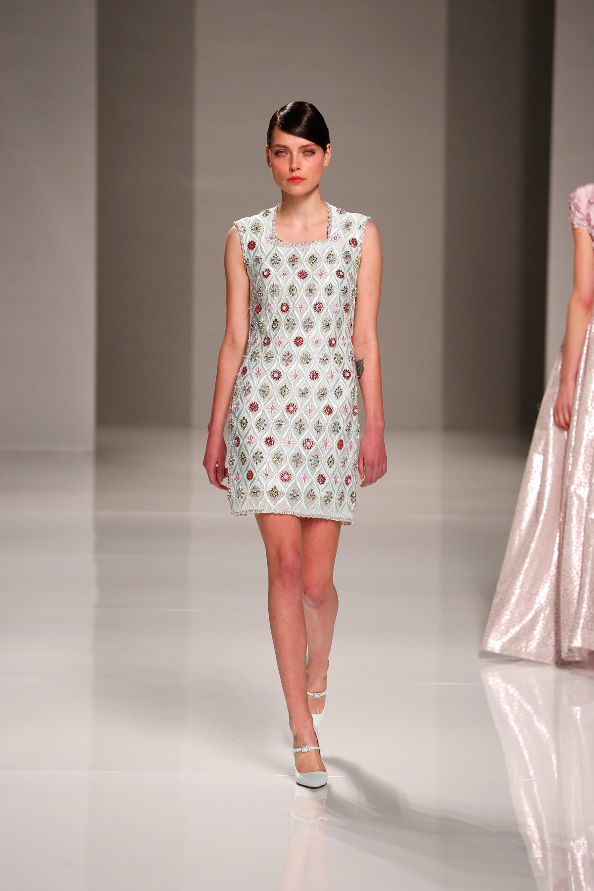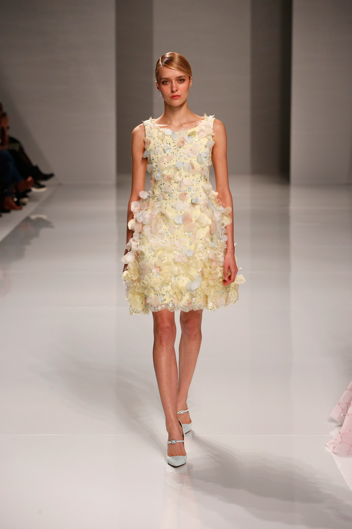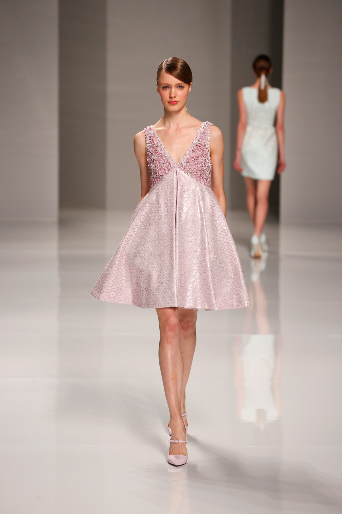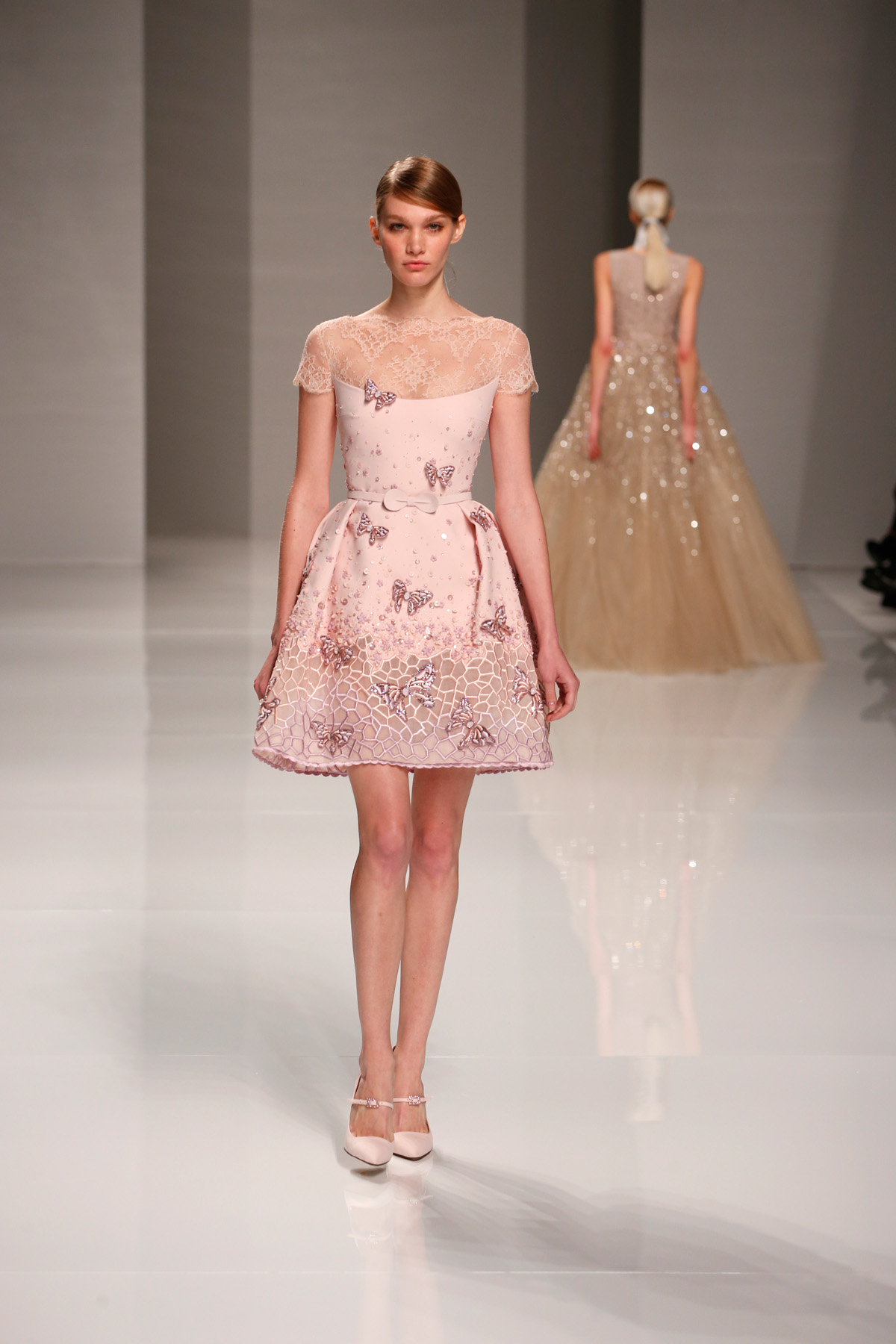 Sa collection printemps/été propose des couleurs pastels aux touches fleuries réchauffant l’hiver, embellies dans des pièces aussi longues que courtes. De véritables tenues issues tout droit d’un conte de fée, aussi scintillantes que légères.