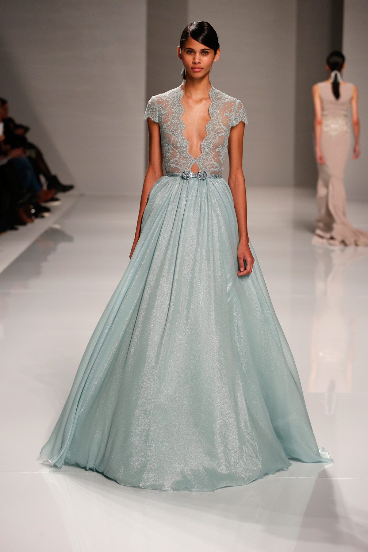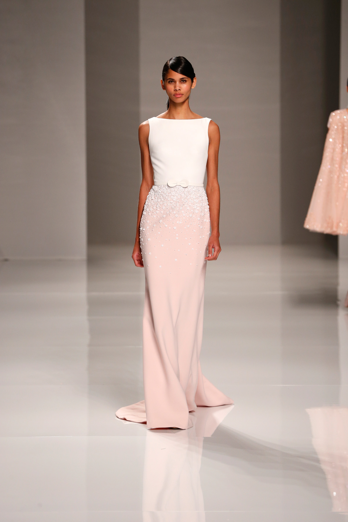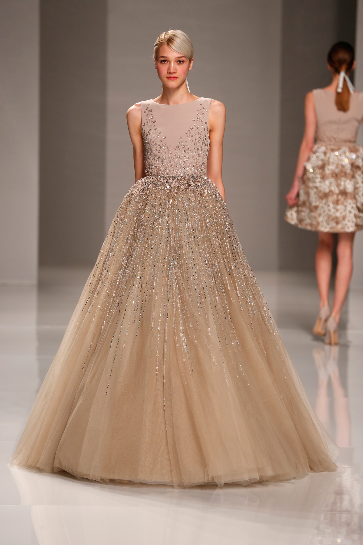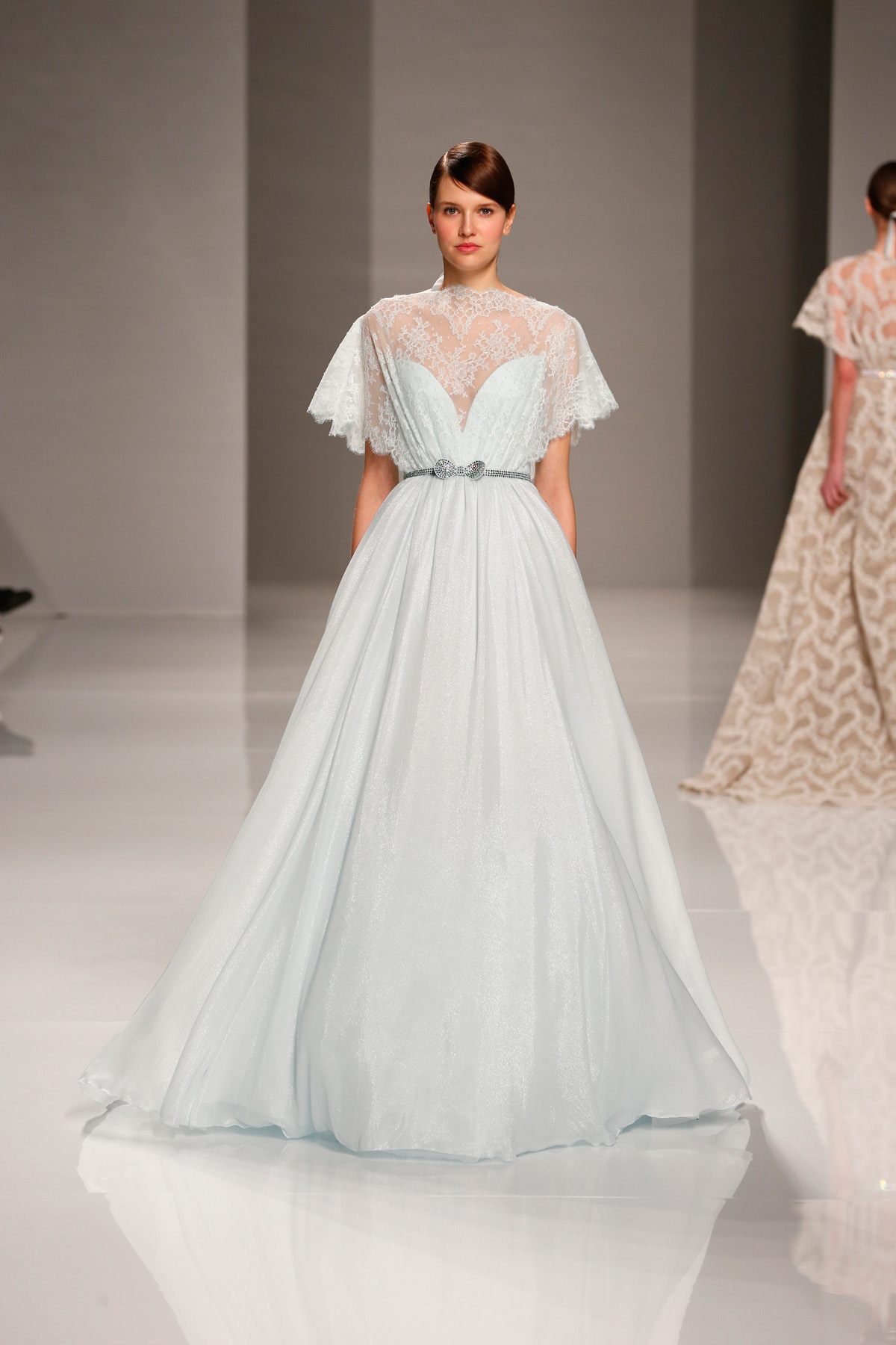 Sa collection printemps/été propose des couleurs pastels aux touches fleuries réchauffant l’hiver, embellies dans des pièces aussi longues que courtes. De véritables tenues issues tout droit d’un conte de fée, aussi scintillantes que légères.