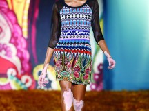 Desigual a présenté sa nouvelle collection automne hiver 2015 dans le cadre de la Mercedes Fashion Week de Madrid qui a débuté hier. Chantelle Winnie, le mannequin canadien a ouvert le défilé de cette collection moins colorée et plus structurée. Un défilé plein d’énergie et de bonne humeur inspiration tribale et amérindienne.