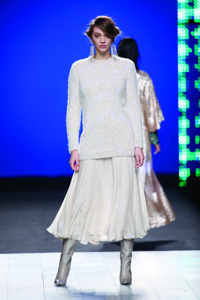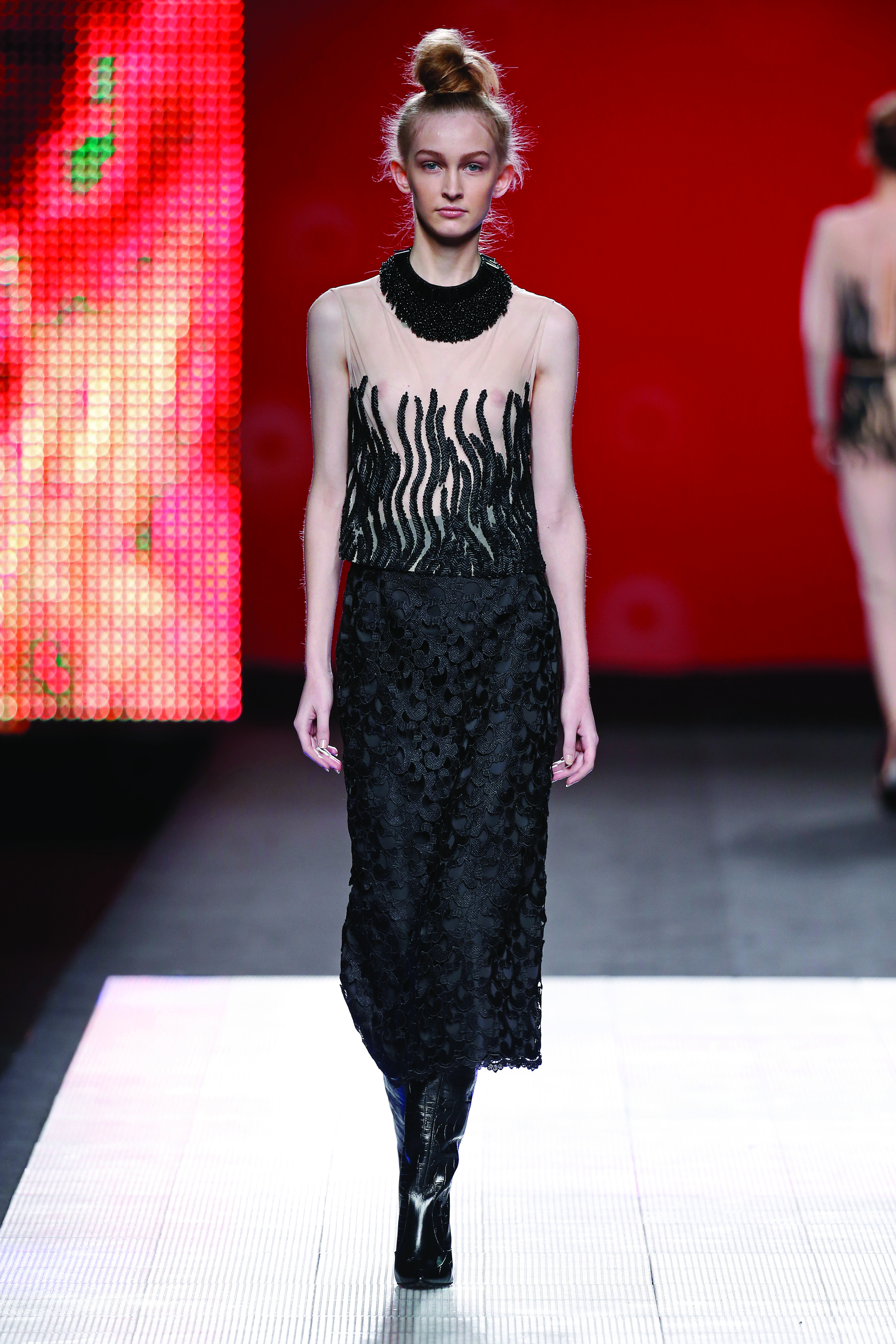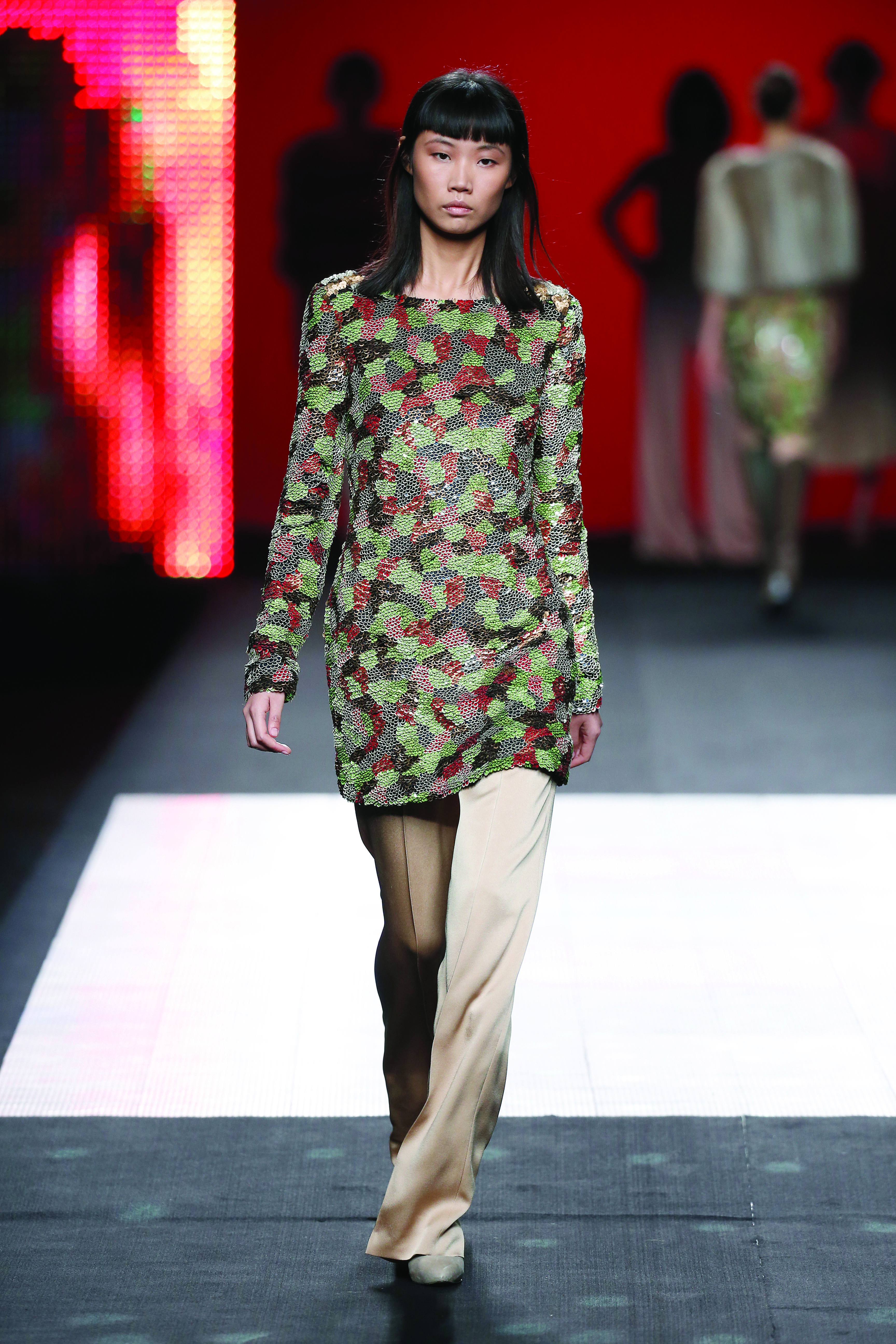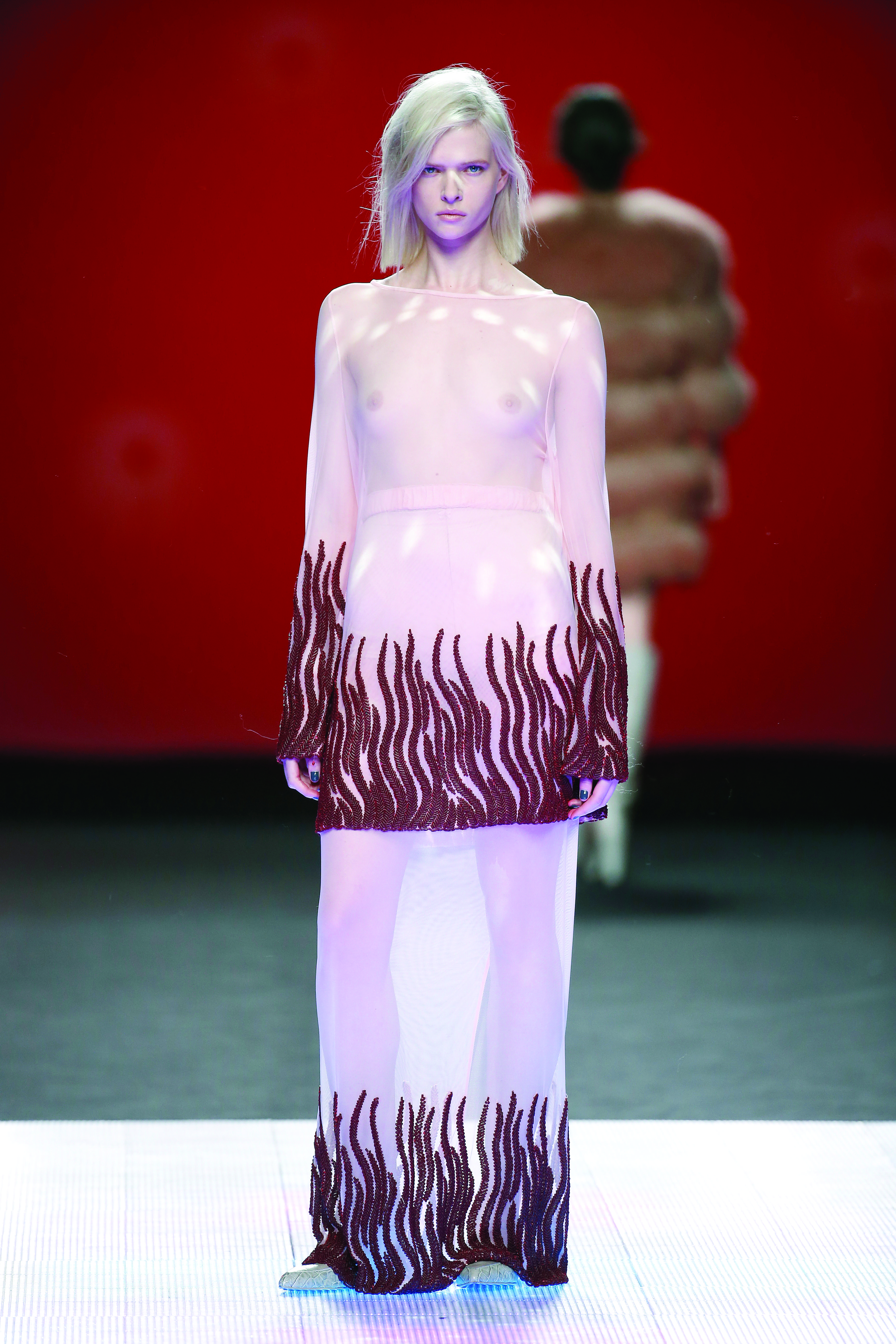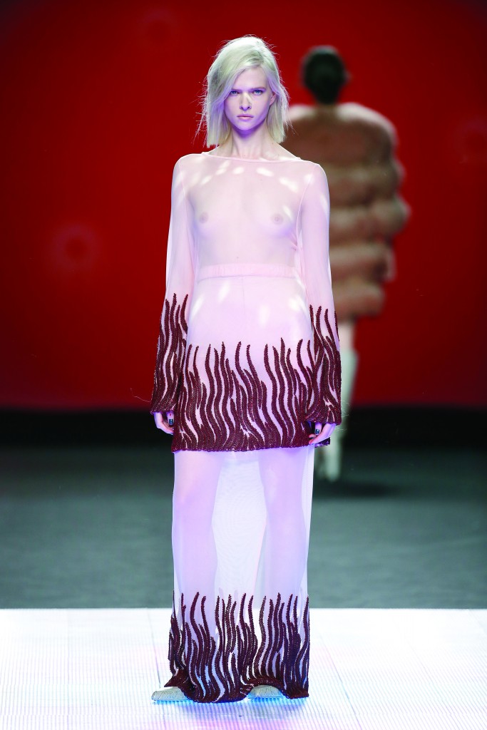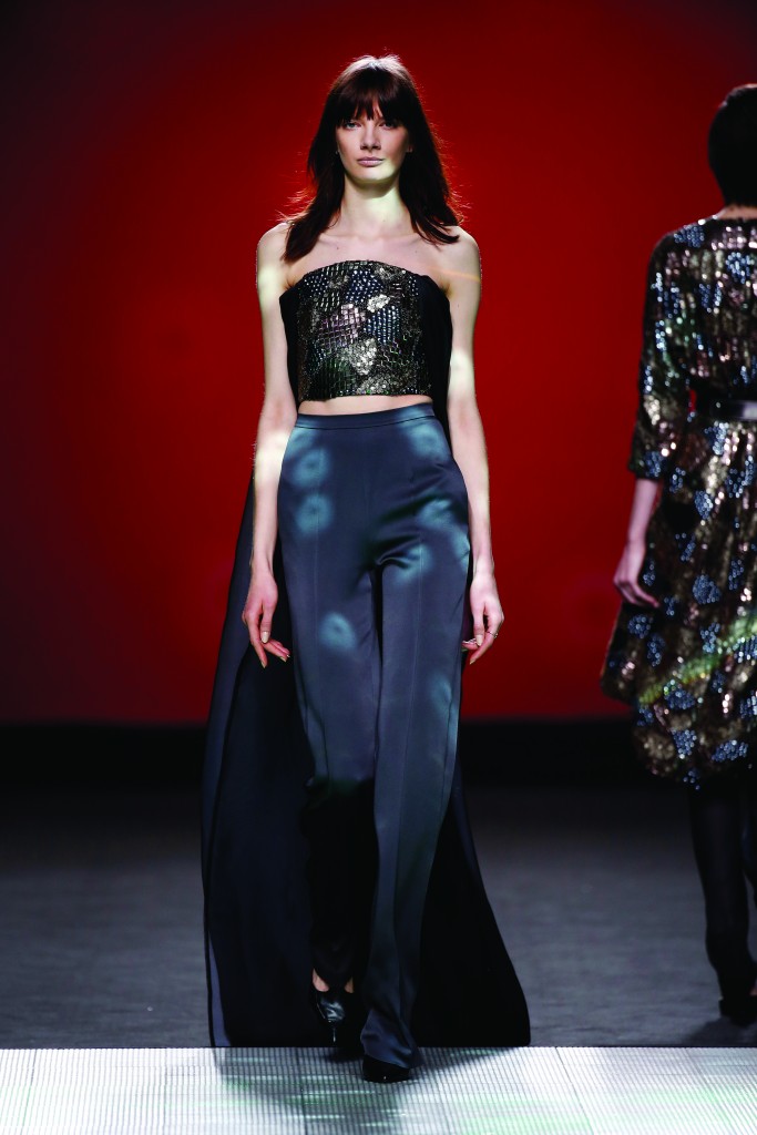 Duyos présente une collection hédoniste et sexy dans son club de la mode ! Au son de « I feel love » de Donna Summer, les mannequins défilent tout en strass et metals.