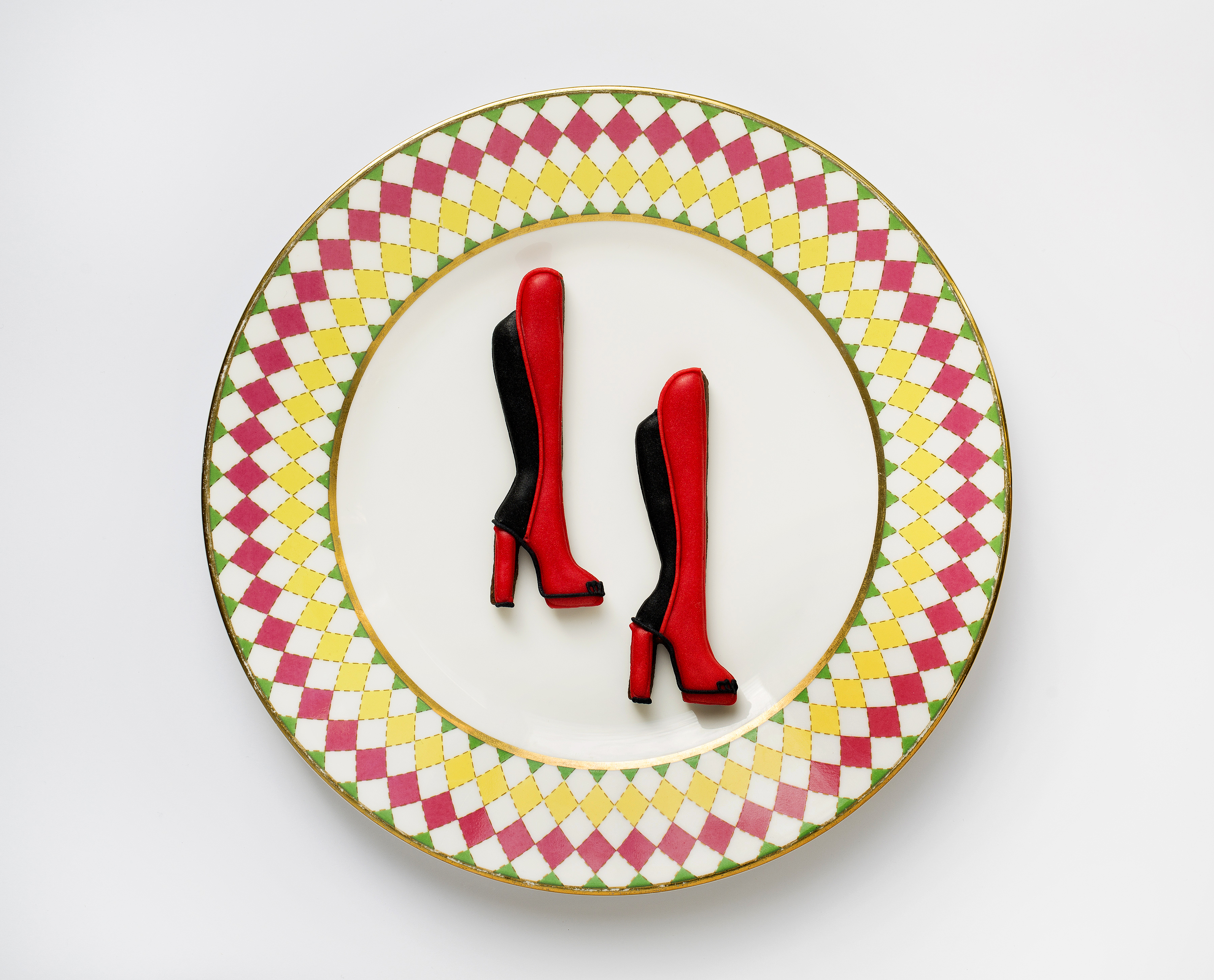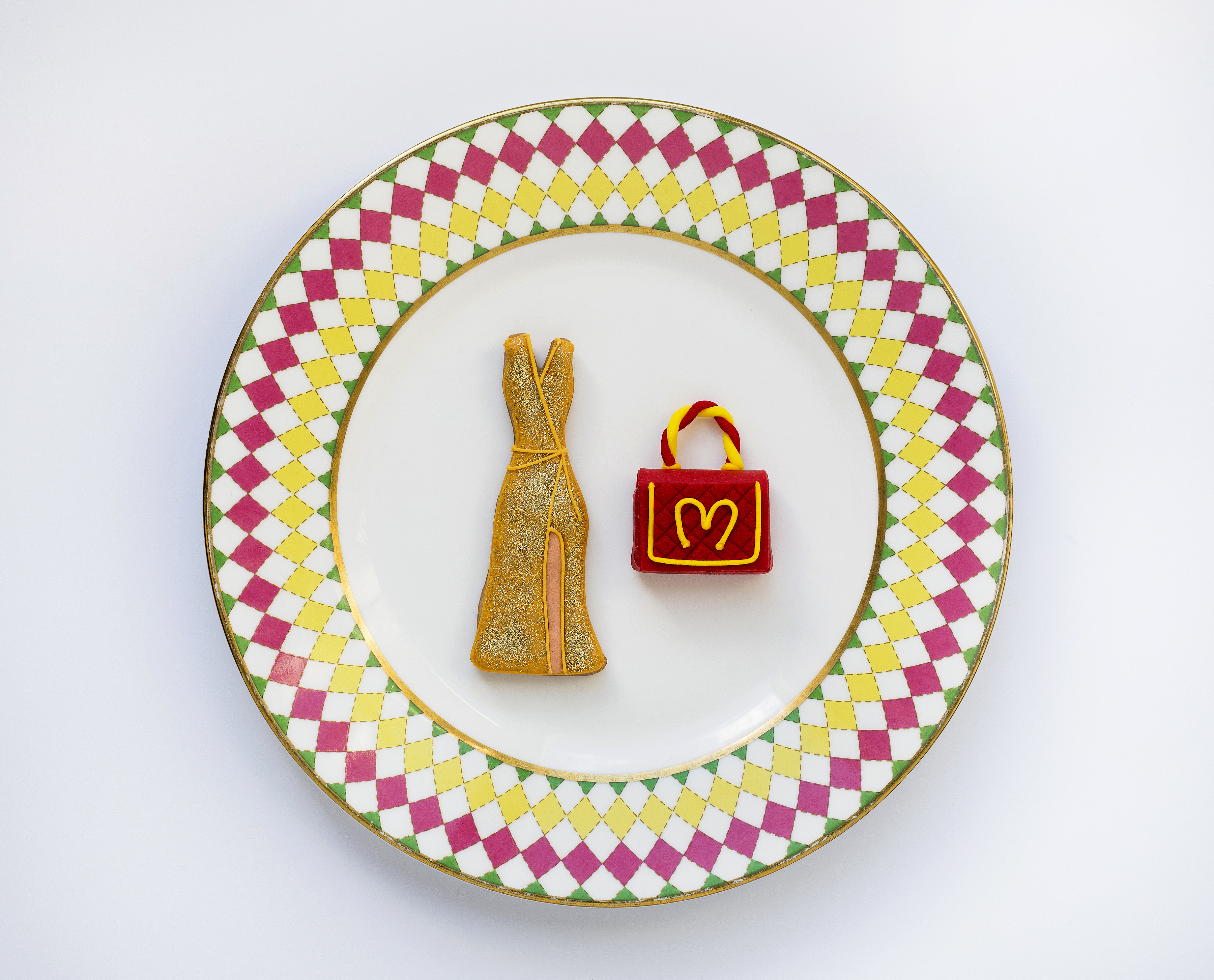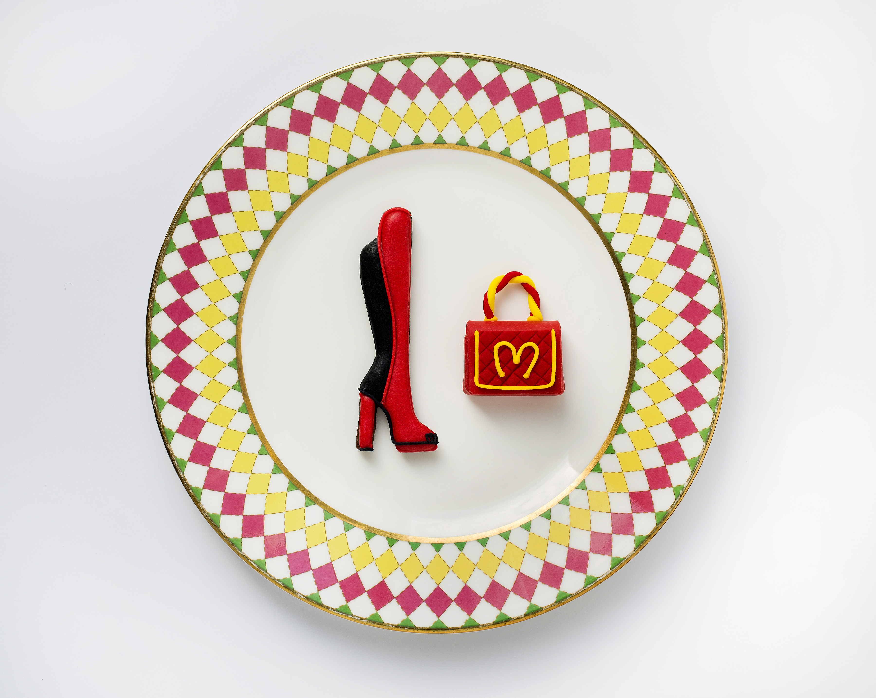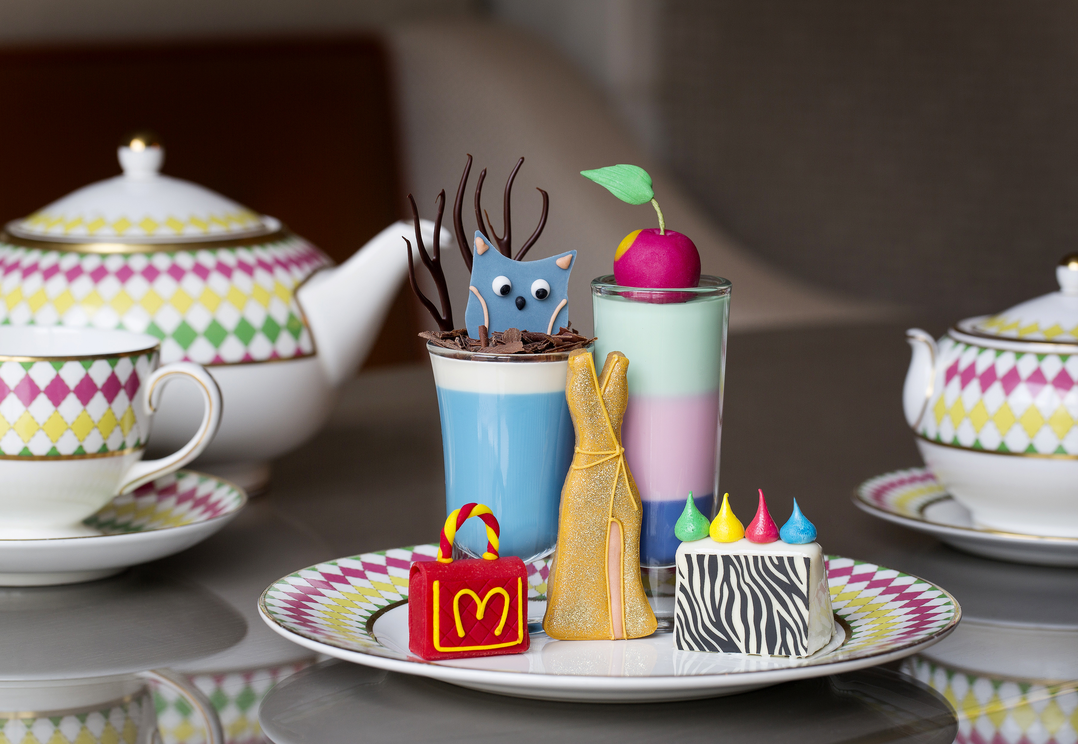 Savourez le gâteau à la cacahuète Christopher Kane, la tartelette au chocolat Valentino et la finesse des macarons Matthew Williamson. Enfin, craquez pour le moelleux au chocolat Jimmy Choo en forme sac Cayla zébré.