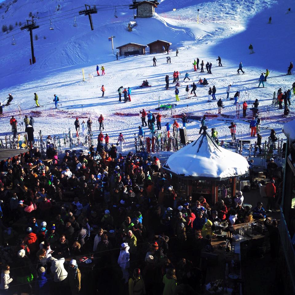 La musique change de registre. Les skieurs se retrouvent alors autour d’un verre. L’ambiance s’embrase et toute la Douce Folie du lieu apparaît. Les danseurs et chanteurs continuent leurs prouesses artistiques, les corps des spectateurs se libèrent et les tables sont assaillies, non pas pour s’asseoir autour mais bel et bien pour servir de podium.
