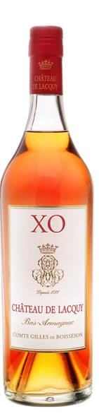 Le XO est très légèrement réduit au moment de l’assemblage passant de 47° à 43° (environ 8%).La robe du XO de Château de Lacquy est d’un brun soutenu avec une collerette verte. Son nez est très expressif et doux avec des notes de noix confites, chêne, vanille, figue sèche et chocolat. En bouche, ce Bas-Armagnac est complexe et mûr. La fin de bouche est longue, crémeuse avec des notes d’épices et de vanille. (Andreas Larsson, Meilleur sommelier du monde 2007) Le XO est vendu dans son coffret livre chez les meilleurs cavistes au prix public moyen de 90 € et dans sa Carafe Hélios au prix public moyen de 100 €