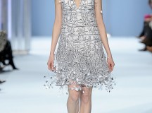 Les imprimés aquatiques se mêlent aux gouttes en 3D, complétées par des broderies fines et légères.