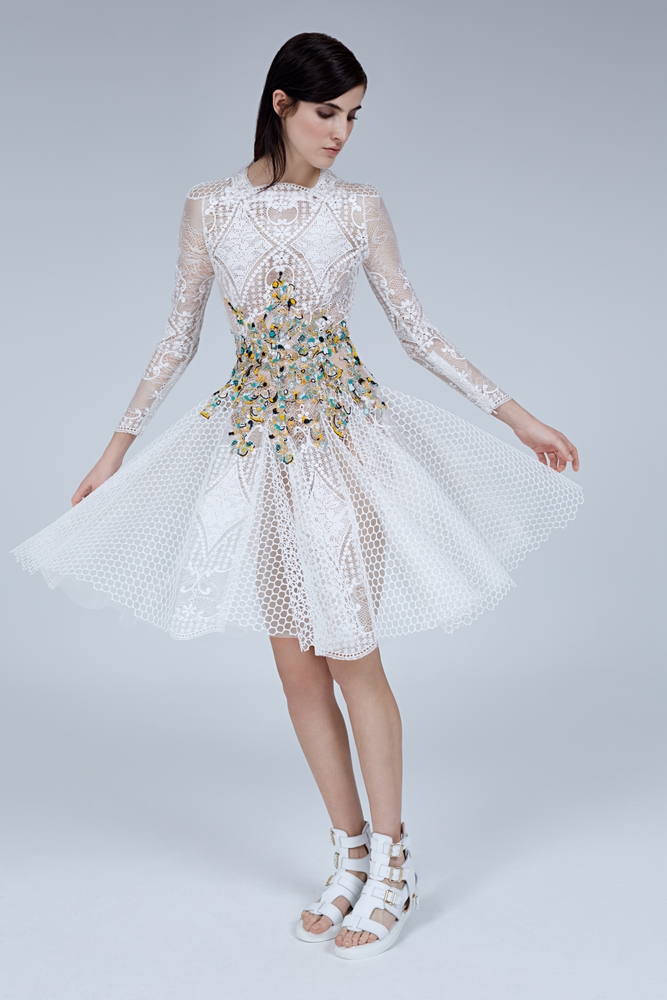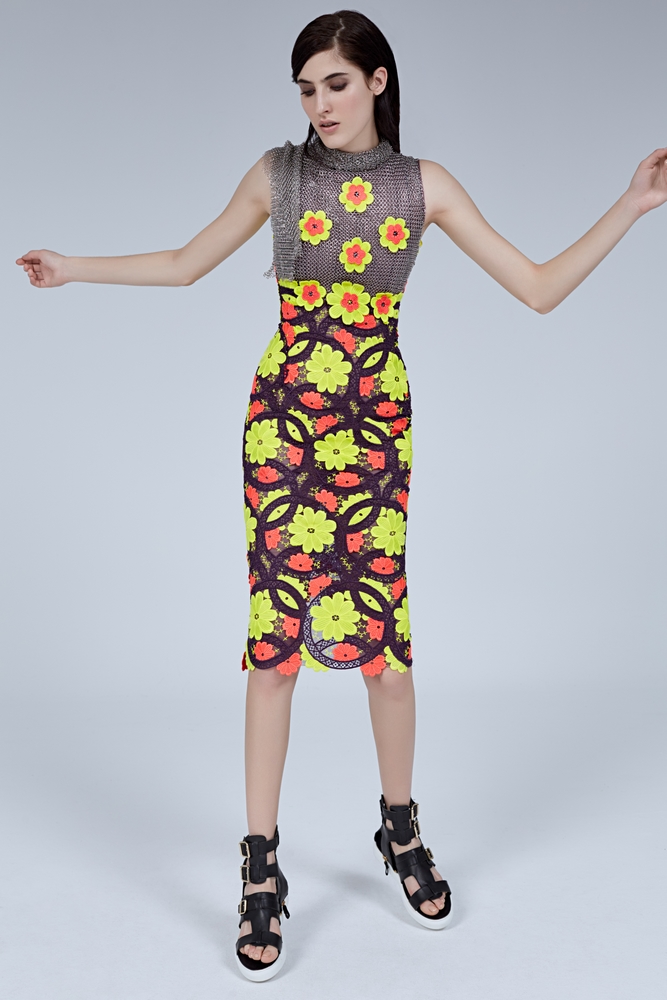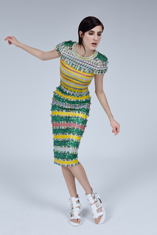 La griffe espagnole Alfredo Villalba a présenté une collection excentrique, colorée et sensuelle. Diego Villalba, le directeur artistique d’Alfredo Villalba, a pour principale inspiration la culture, la musique et la mode des années 80, d’où son goût pour le mélange de looks et matières improbables.