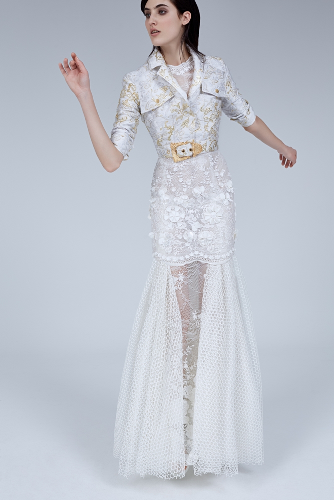 La maison n’a pas de limites et l’assume : la ligne regorge de styles opposés. Les robes hyper féminines côtoient les vestes en cuir comme les robes glamour de divas font face aux ensembles plus sages. Rien n’est trop beau pour cette héroïne que la marque encense.