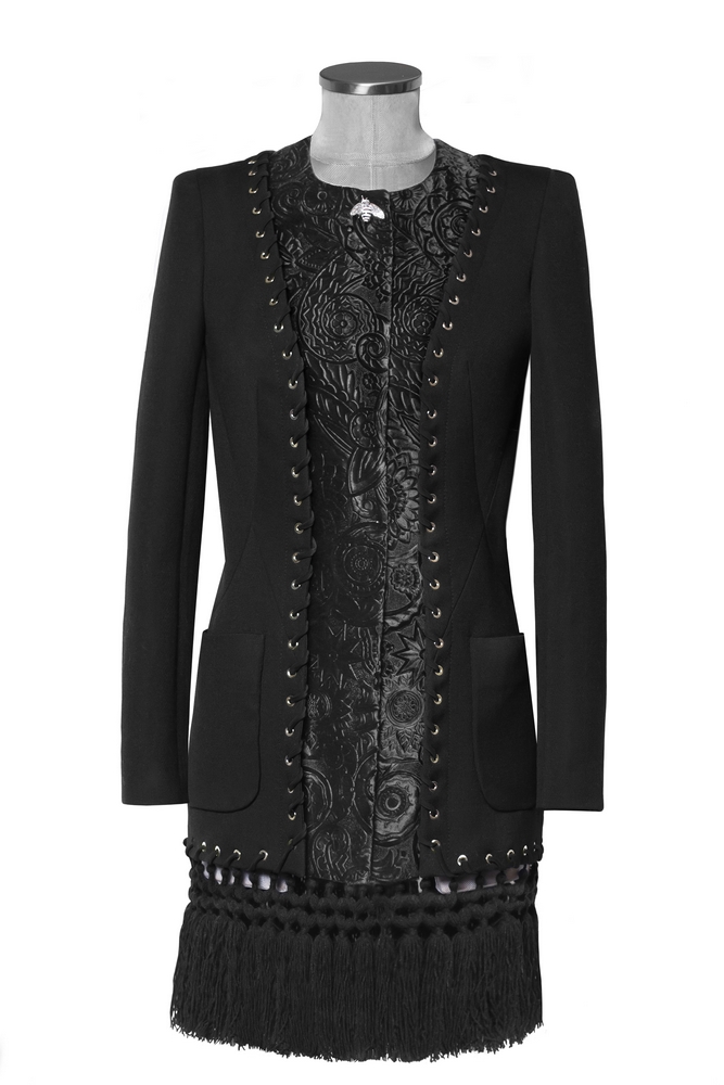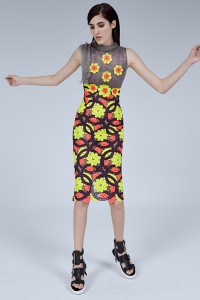 La maison espagnole déploie donc un large éventail de styles, de couleurs et de matières toutes luxueuses. En effet, elle a recours à l’usage de guipure, de tweed, de python, de velours devoré, de brocart coloré et de fourrures. On raffole particulièrement des jeux de transparence associés aux motifs graphiques des pièces.