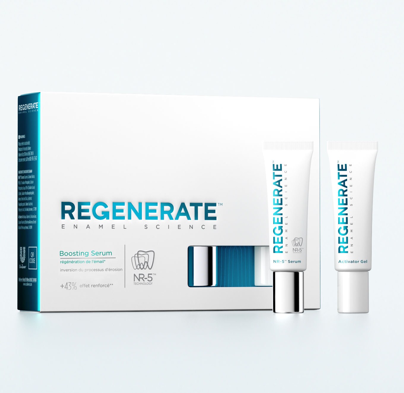Cette innovation qu’est REGENERATE , va permettre d’inverser le processus d’érosion à un stade précoce et invisible, et de régénérer l’émail en l’aidant à se restaurer avec le même minéral qui le constitue grâce à la technologie brevetée NR-5, inspirée par la capacité du corps de l’être humain à « réparer » ses propres os.