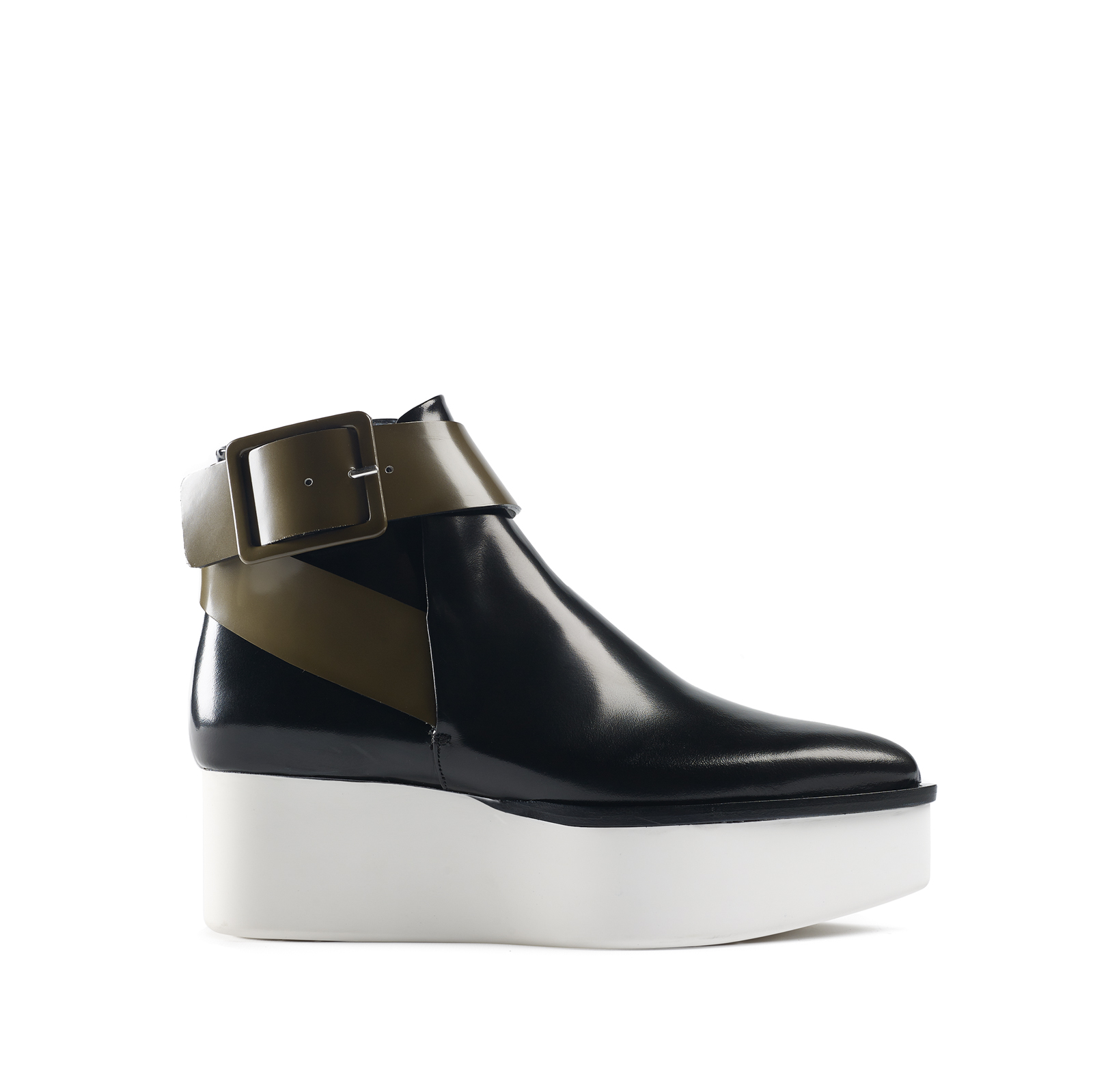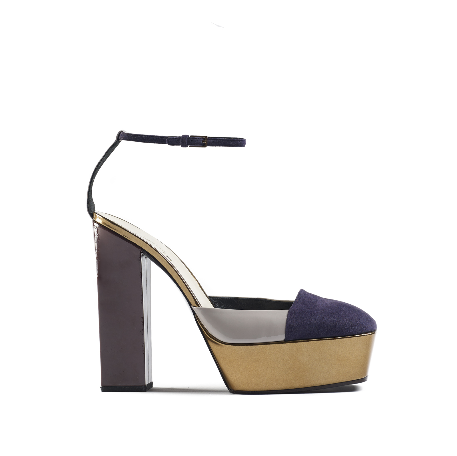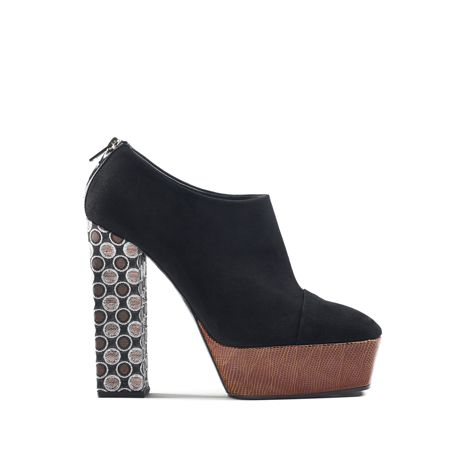 – IDOLE. Design trapézoïdal, plateformes hautes et talons carrés volumineux, marquent cette collection pour le jour et le soir, typique du marché de Camden à Londres réputé pour son côté underground, et qui évoque les années 70. Toute une mosaïque de styles accentuée par les matériaux précieux et exclusifs.
