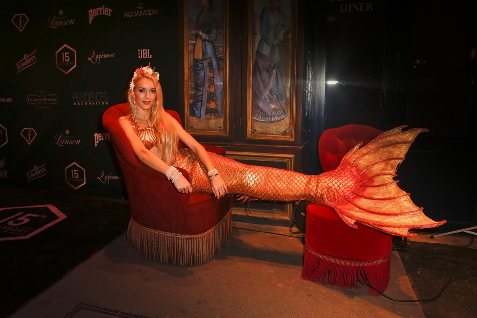 Dès l’arrivée au restaurant, une agréable ambiance années 30 se dégageait avec l’accueil du saxophoniste Geoffrey Secco. Les fondateurs de la chaîne ont fait un clin d’oeil au 1er Avril en faisant venir une jolie sirène confortablement installée près du photocall. Les invités ont pu déguster des petits fours en buvant du champagne dans les nombreux salons intimistes de ce restaurant à l’architecture atypique.