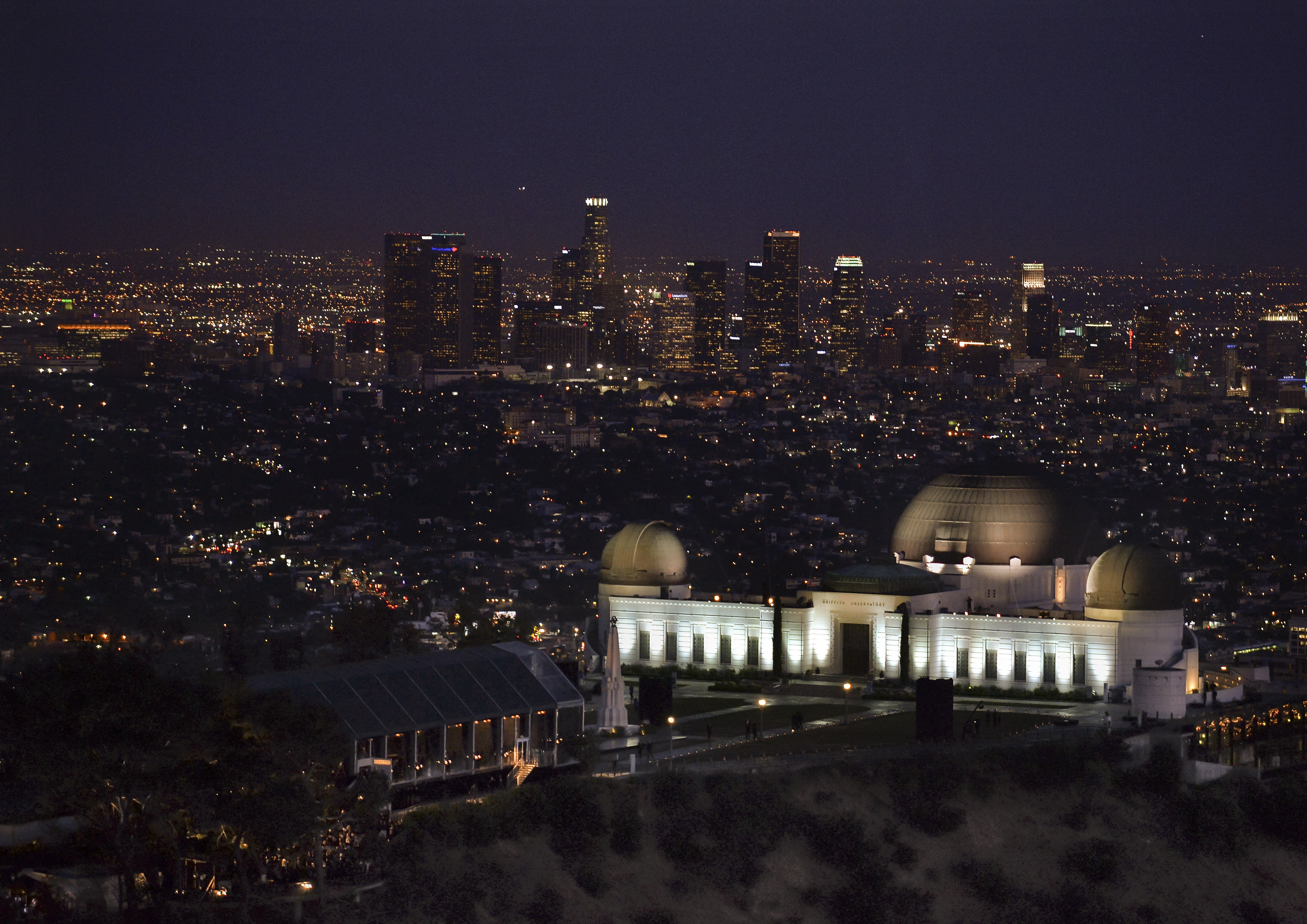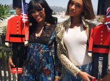 Les privilégiés ont ensuite pu assister au défilé de la marque, qui présentait la collection Automne/Hiver 2015 pour hommes et femmes. Parmi les mannequins défilant, des membres de la famille Burberry comme Naomi Campbell ou Jordan Dunn ont fait le show. Le clou du spectacle : une apparition surprise de la star de télévision et cinéma anglaise : James Corden. Des gardes anglais ont également défilé aux sons de leurs flûtes et tambours, alors que des projections des drapeaux anglais et américains étaient projetés sur un écran, illuminant la facade du Griffith Observatory.