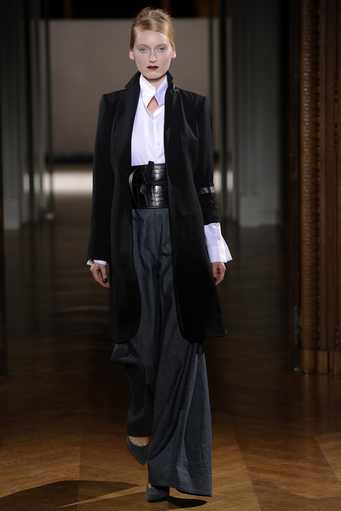 Les vestes sont structurées, galbées comme des selles à monter. La tournure et l’ampleur de certaines manches ont été pensées pour mettre en valeur la finesse des mains.