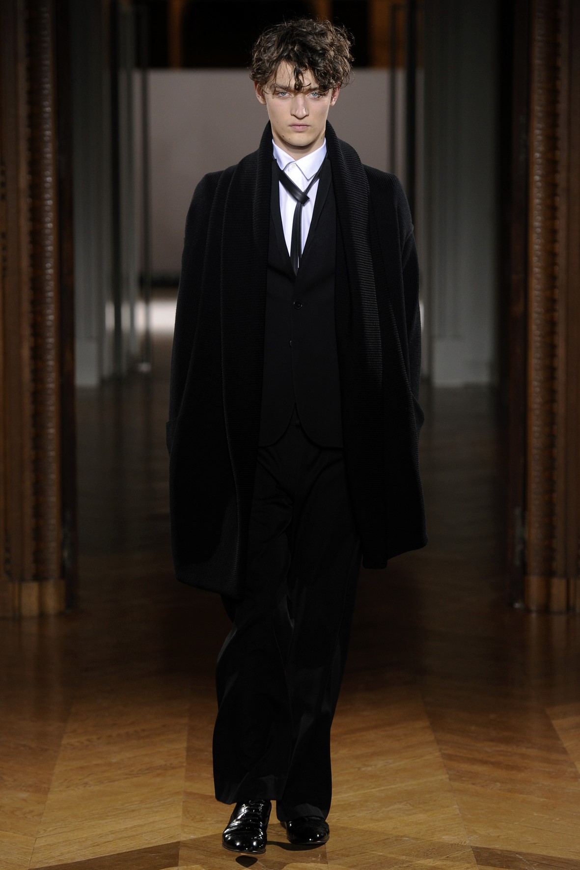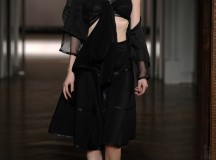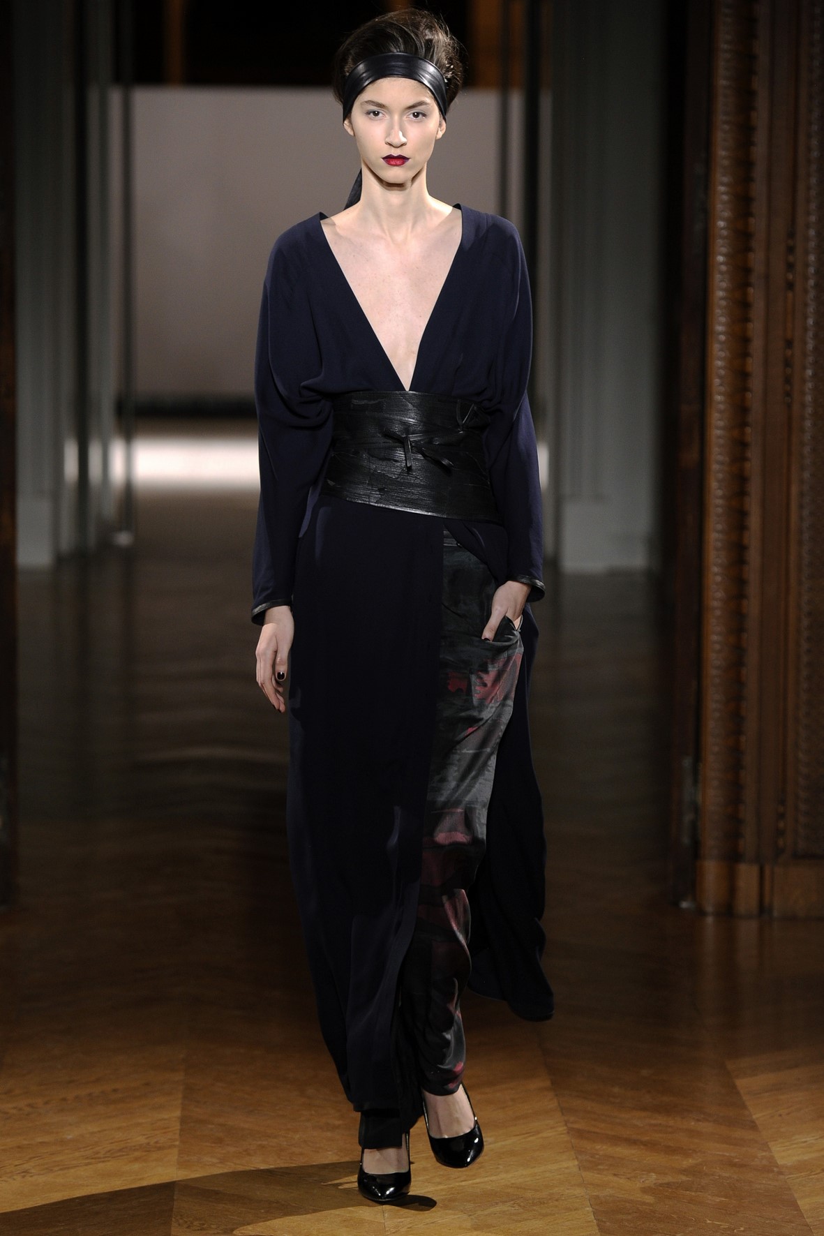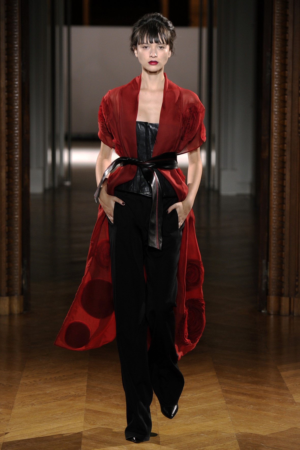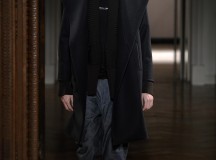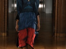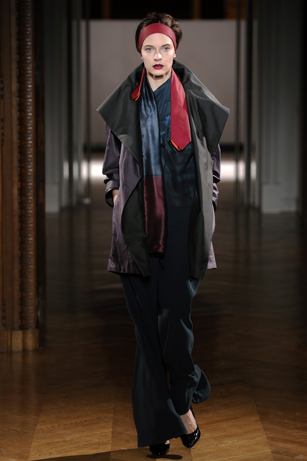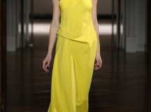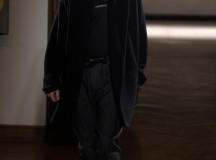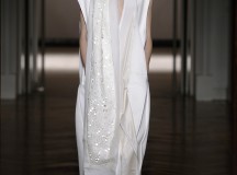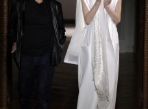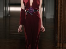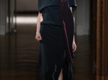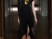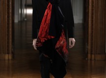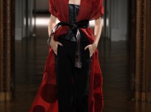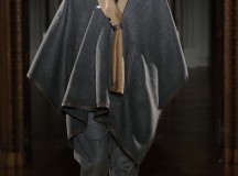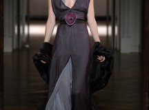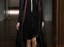 Une collection très ondoyante constituée de formes enveloppantes et souples: les manteaux se portent avec nonchalance, comme des peignoirs, les longues robes-fourreau très largement fendues comme des déshabillés de soie, les larges kimonos du soir se portent ouverts, les pantalons immenses, fluides…