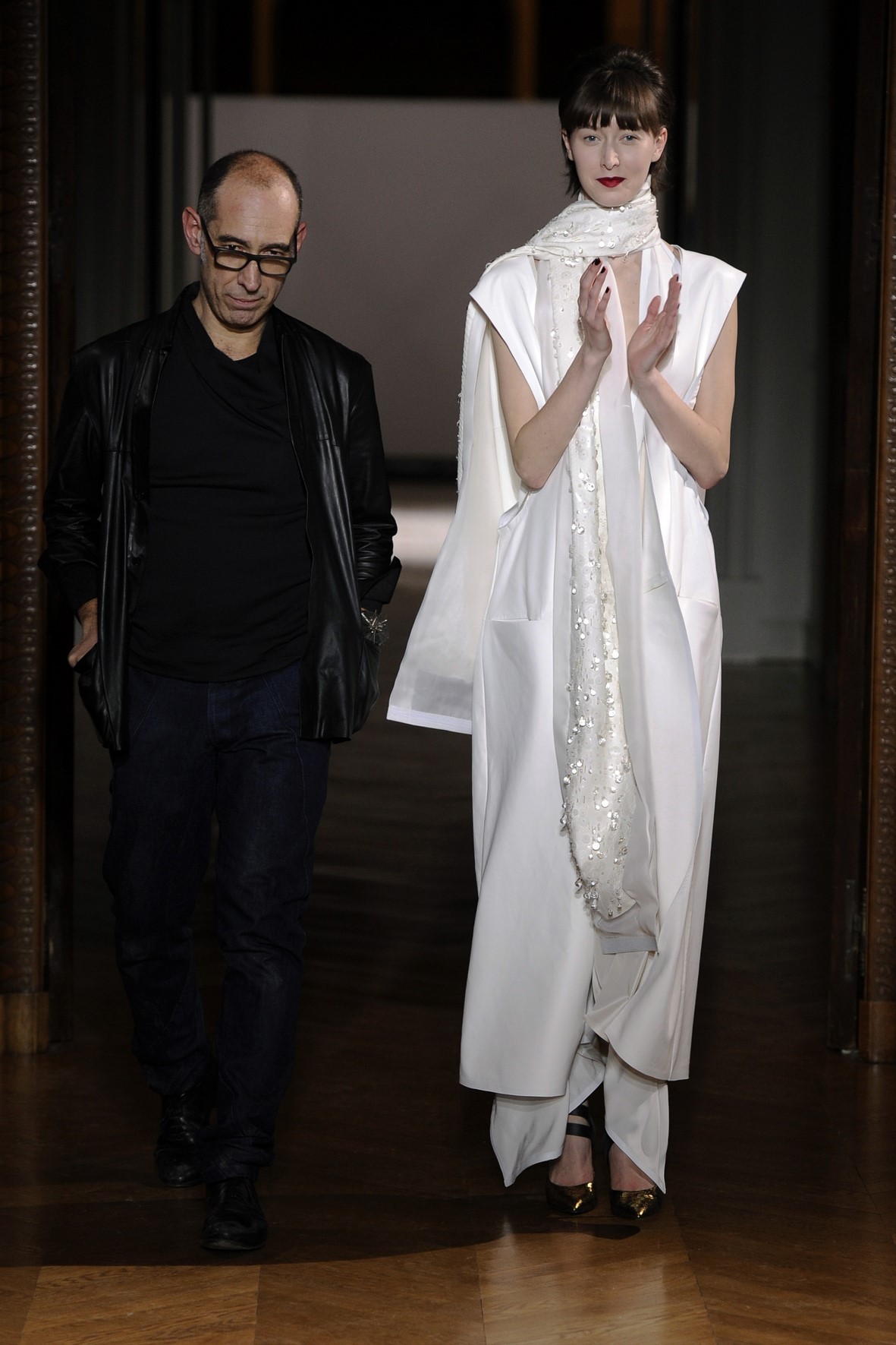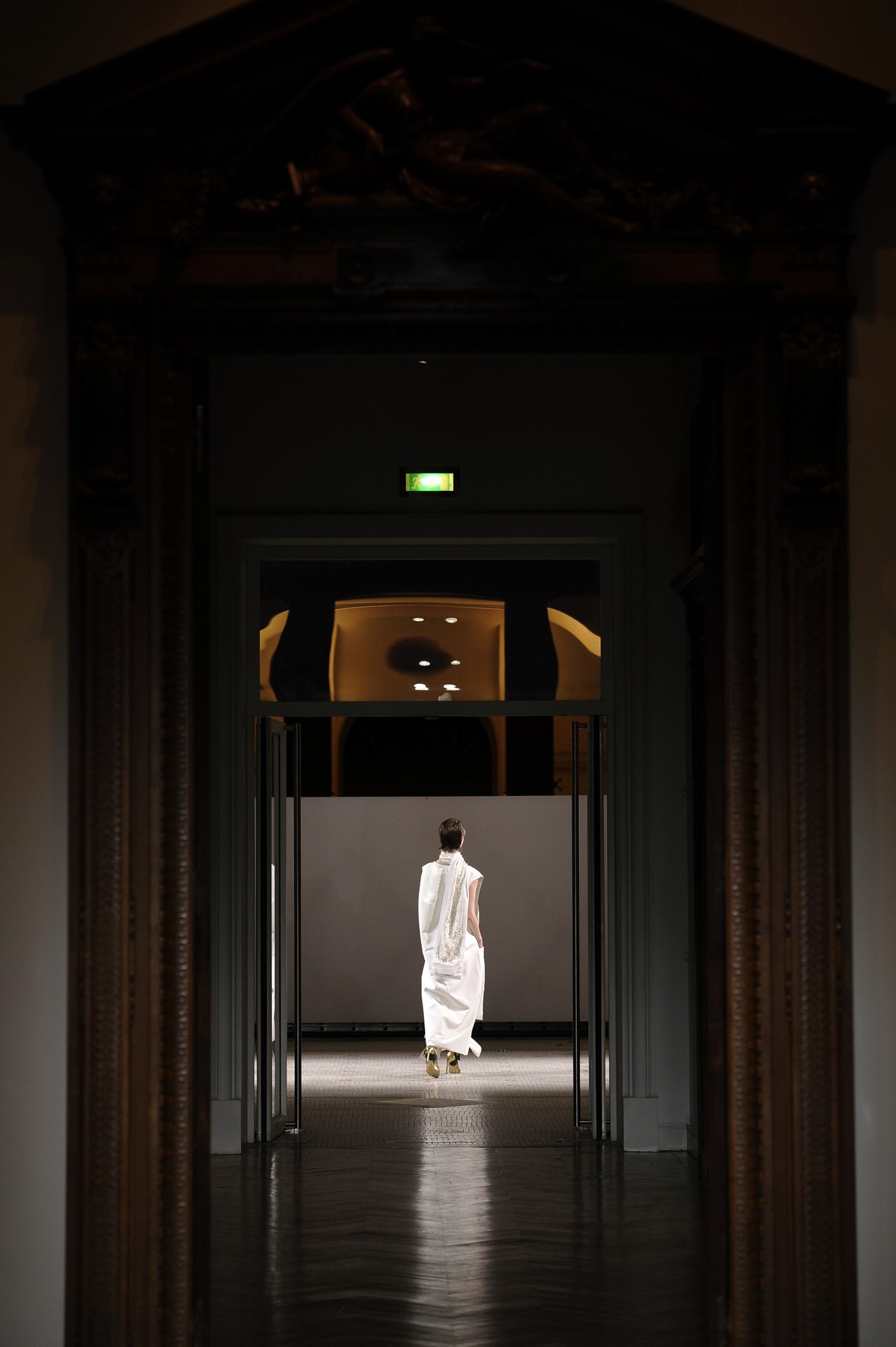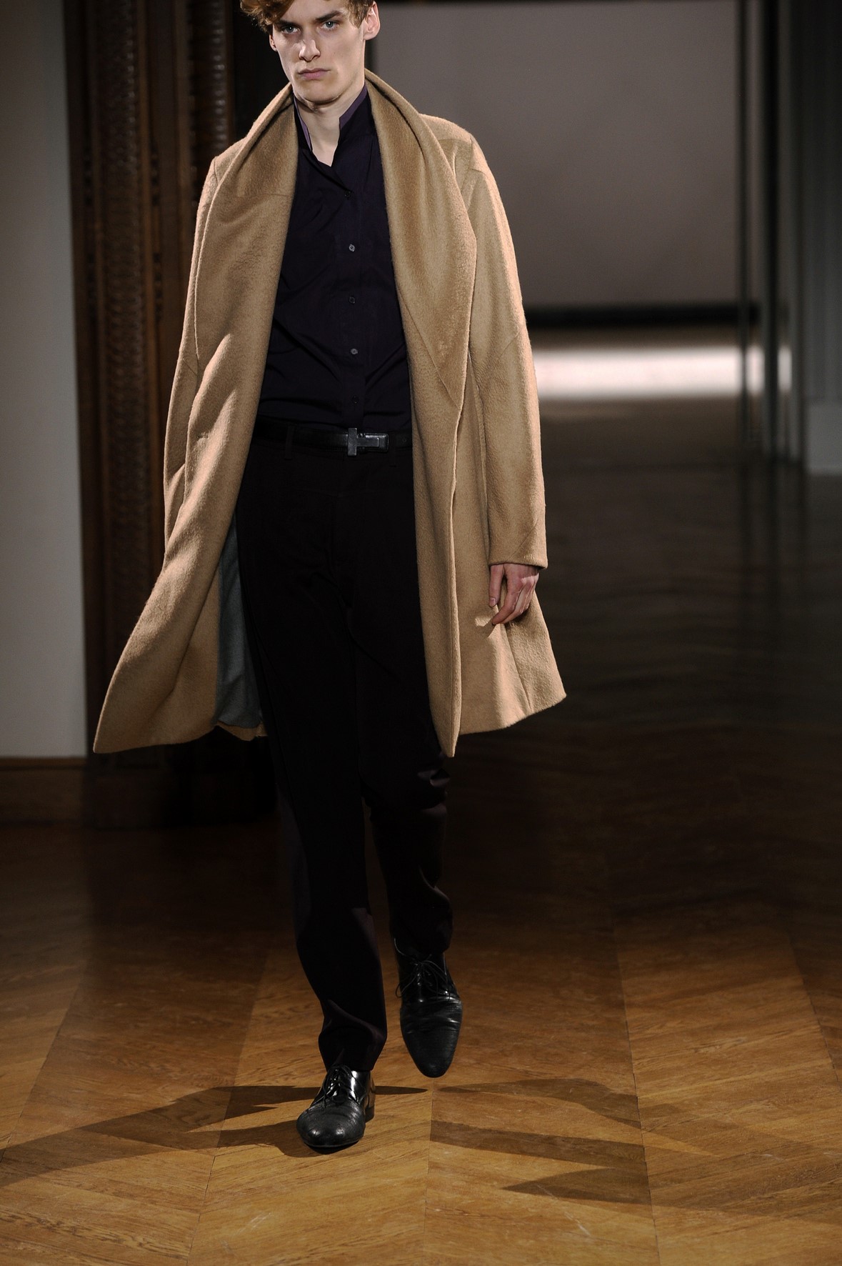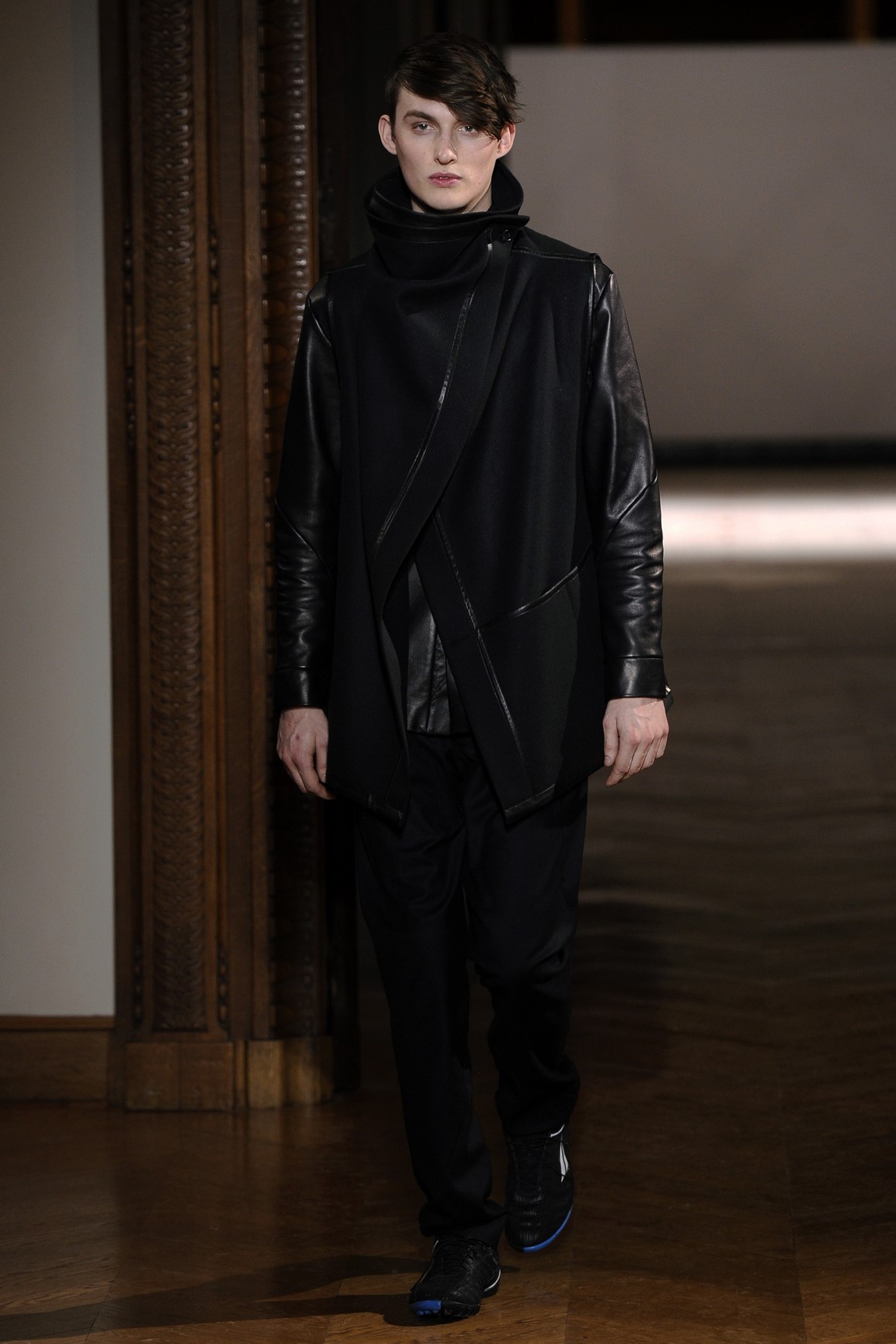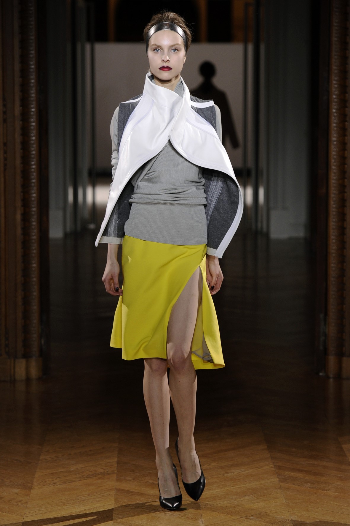 Une collection très ondoyante constituée de formes enveloppantes et souples: les manteaux se portent avec nonchalance, comme des peignoirs, les longues robes-fourreau très largement fendues comme des déshabillés de soie, les larges kimonos du soir se portent ouverts, les pantalons immenses, fluides…