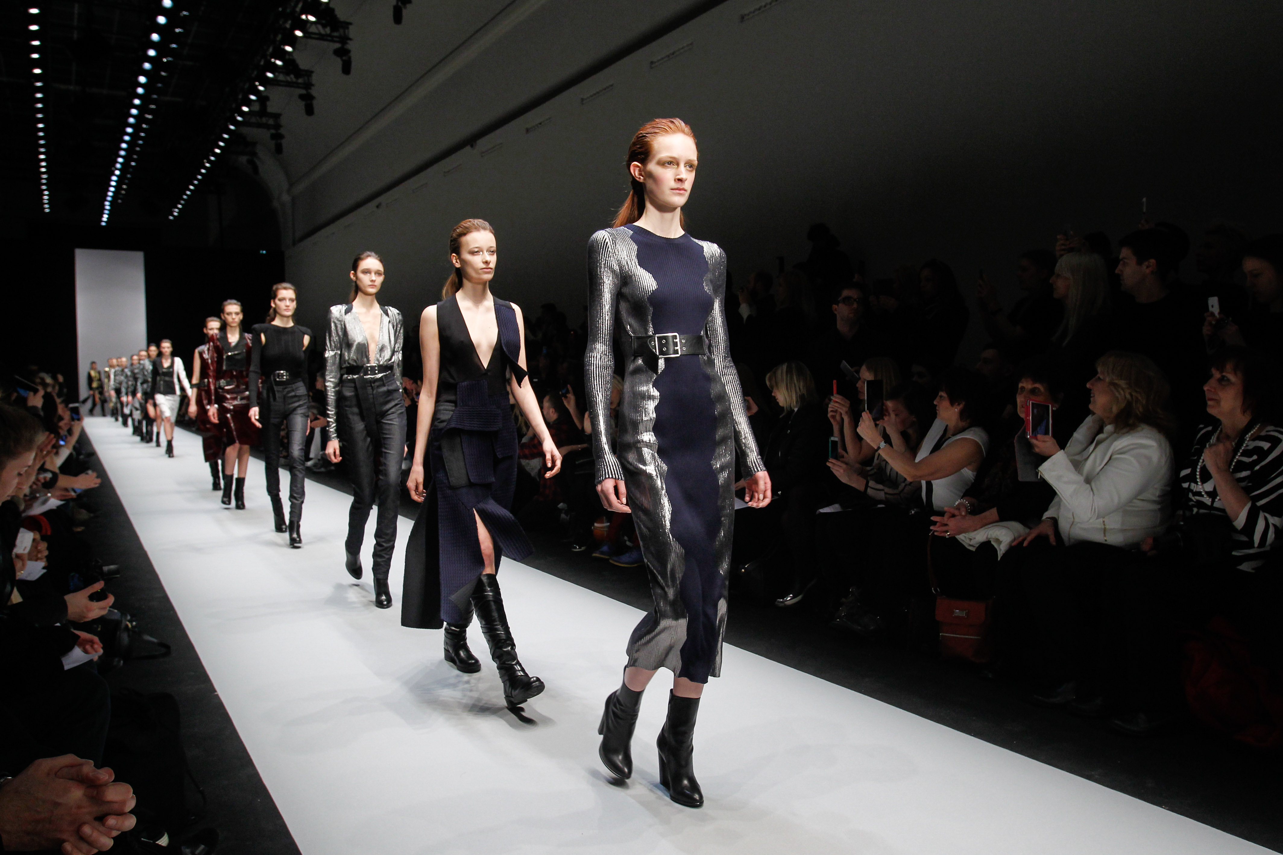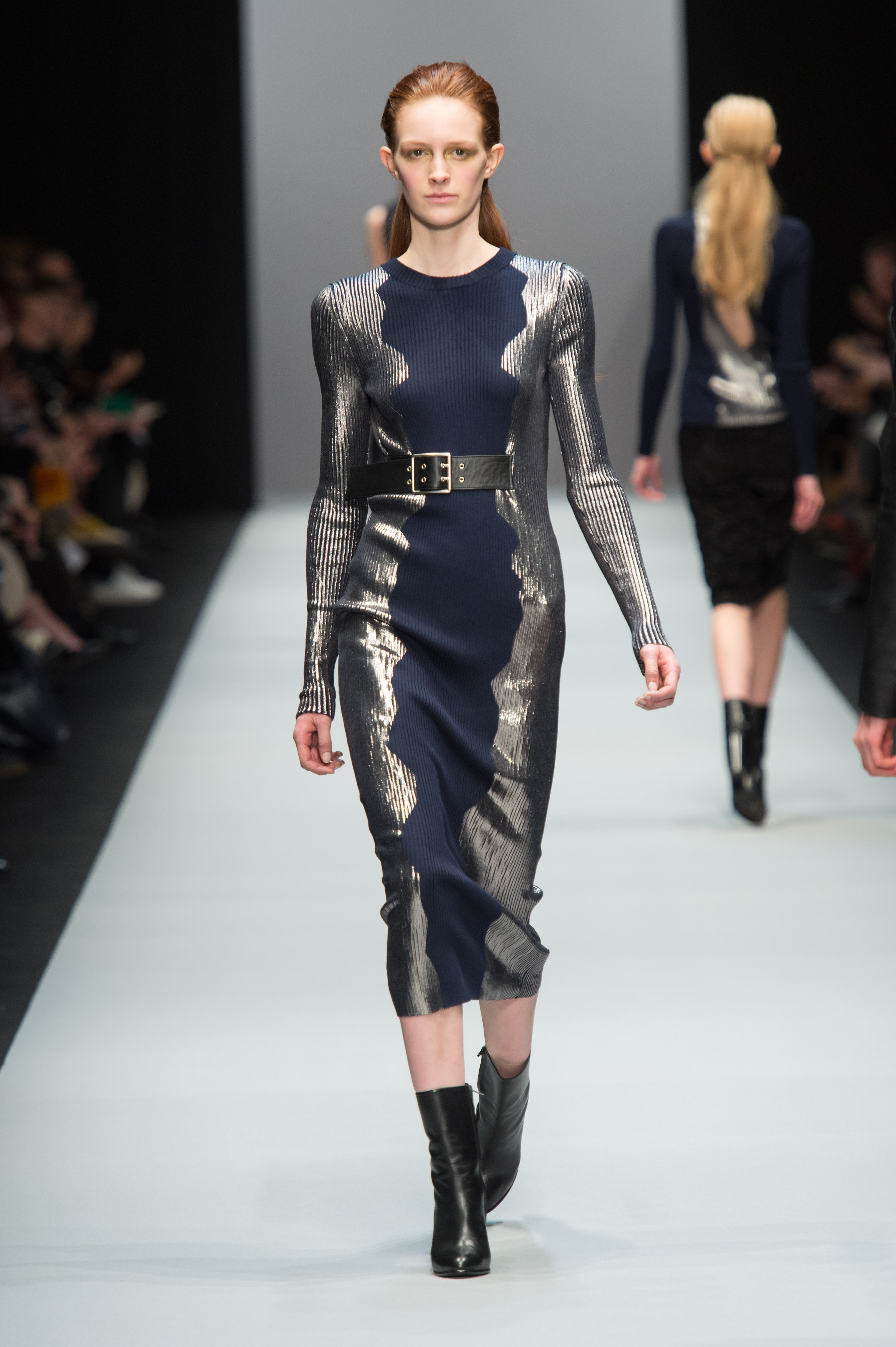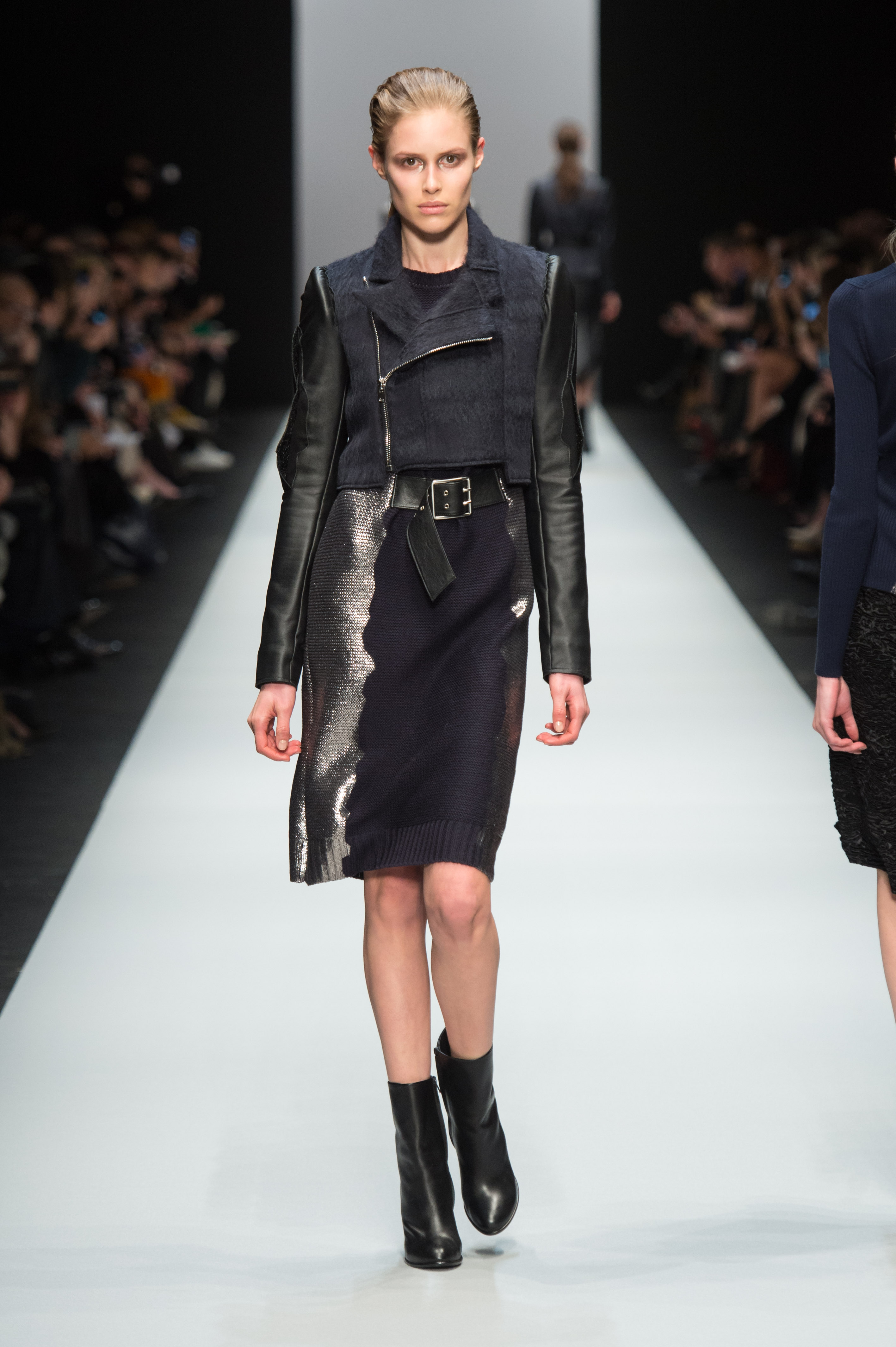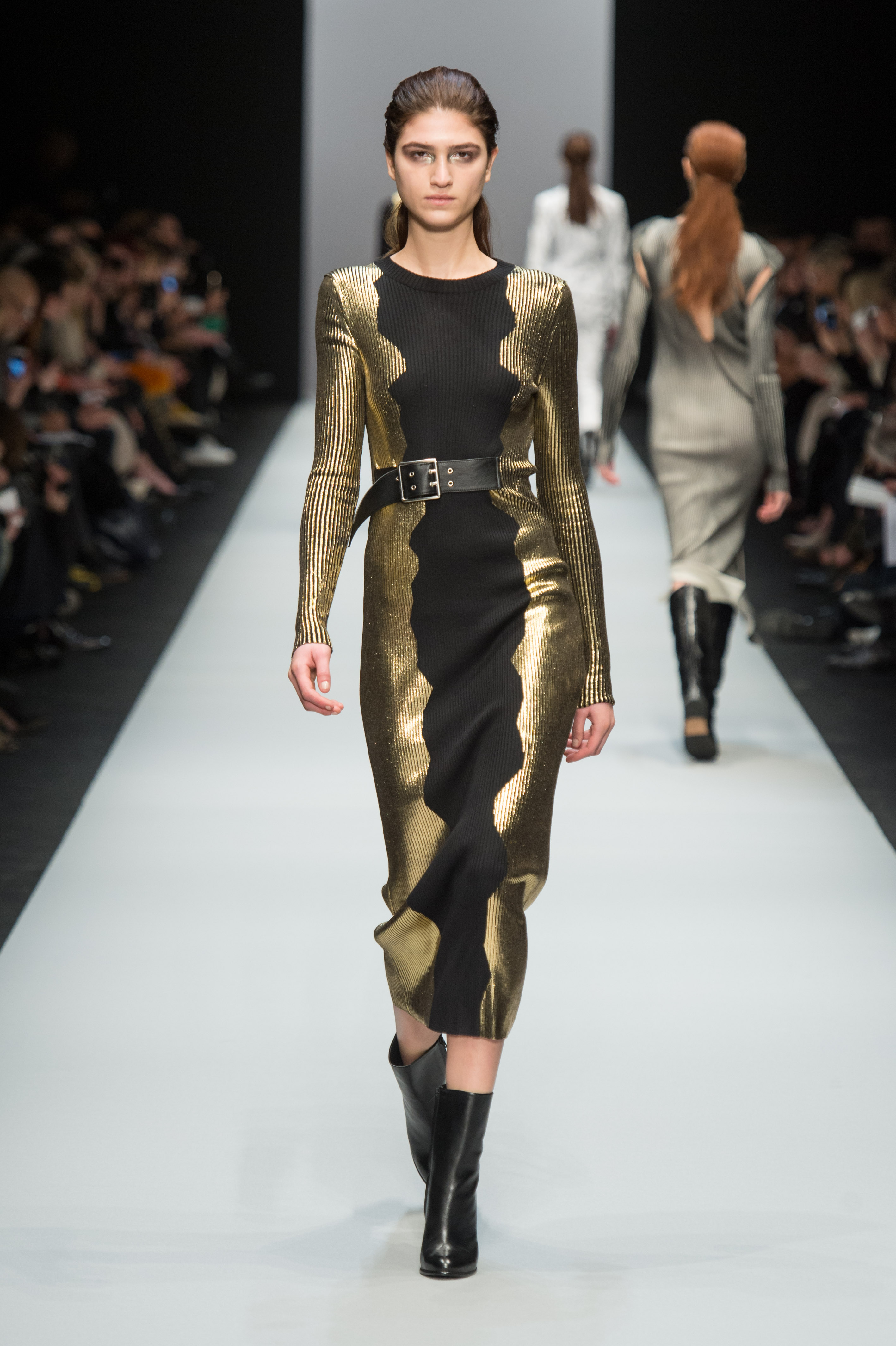 La collection tente également d’allier les classiques androgynes et silhouettes voluptueuses : des vestes imprimées dites Biker, et des trenchcoats déconstruits sont contrastés de pièces de mailles cintrées portées à même peau, ou de jupes en brocart dévorées. Une partie de la collection est même inspirée du film de Peter Greenaway : « The Pillow Book », un drame prenant place au Japon, qui dépeint la vie tumultueuse de la fille d’un calligraphe.