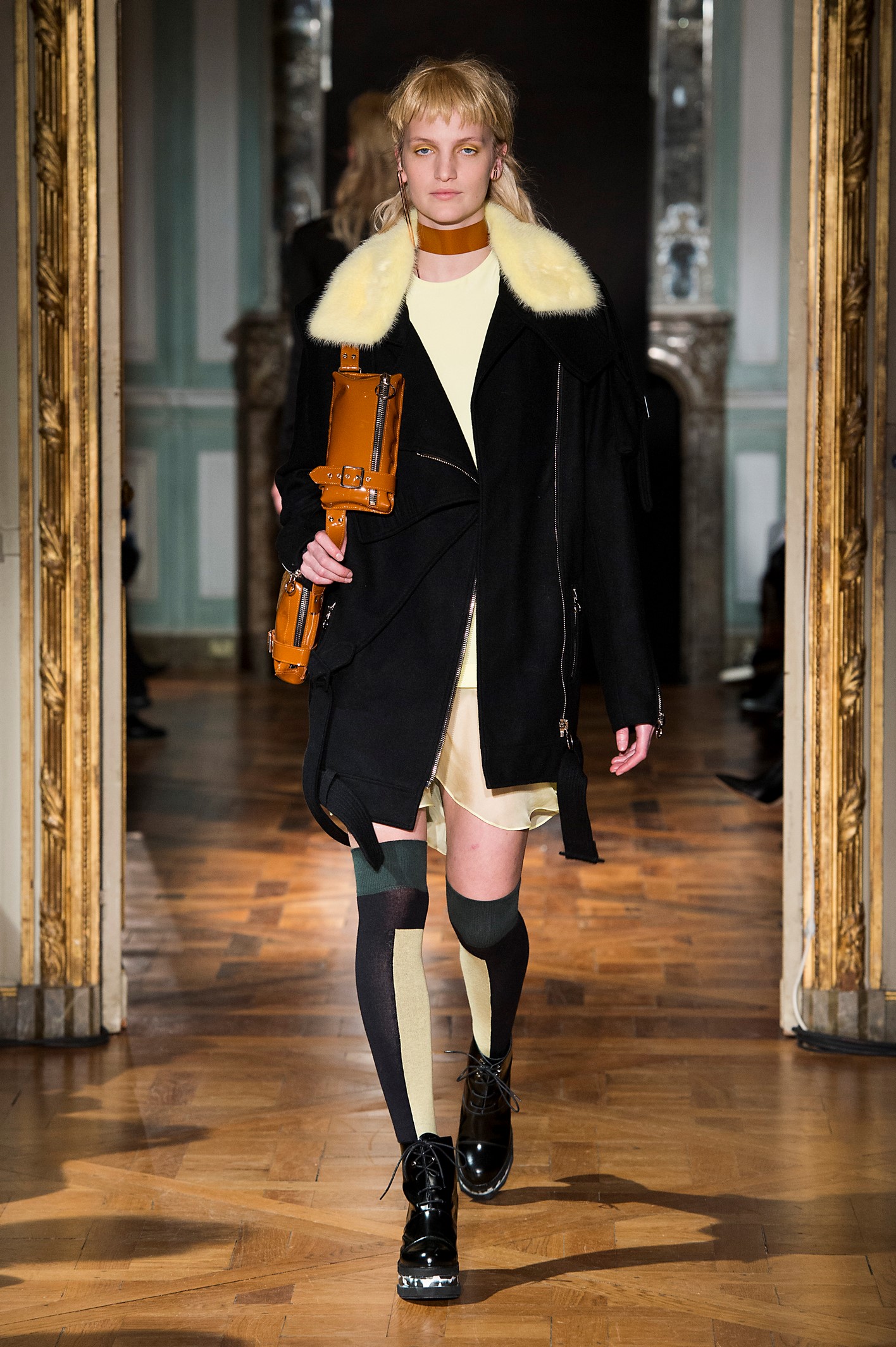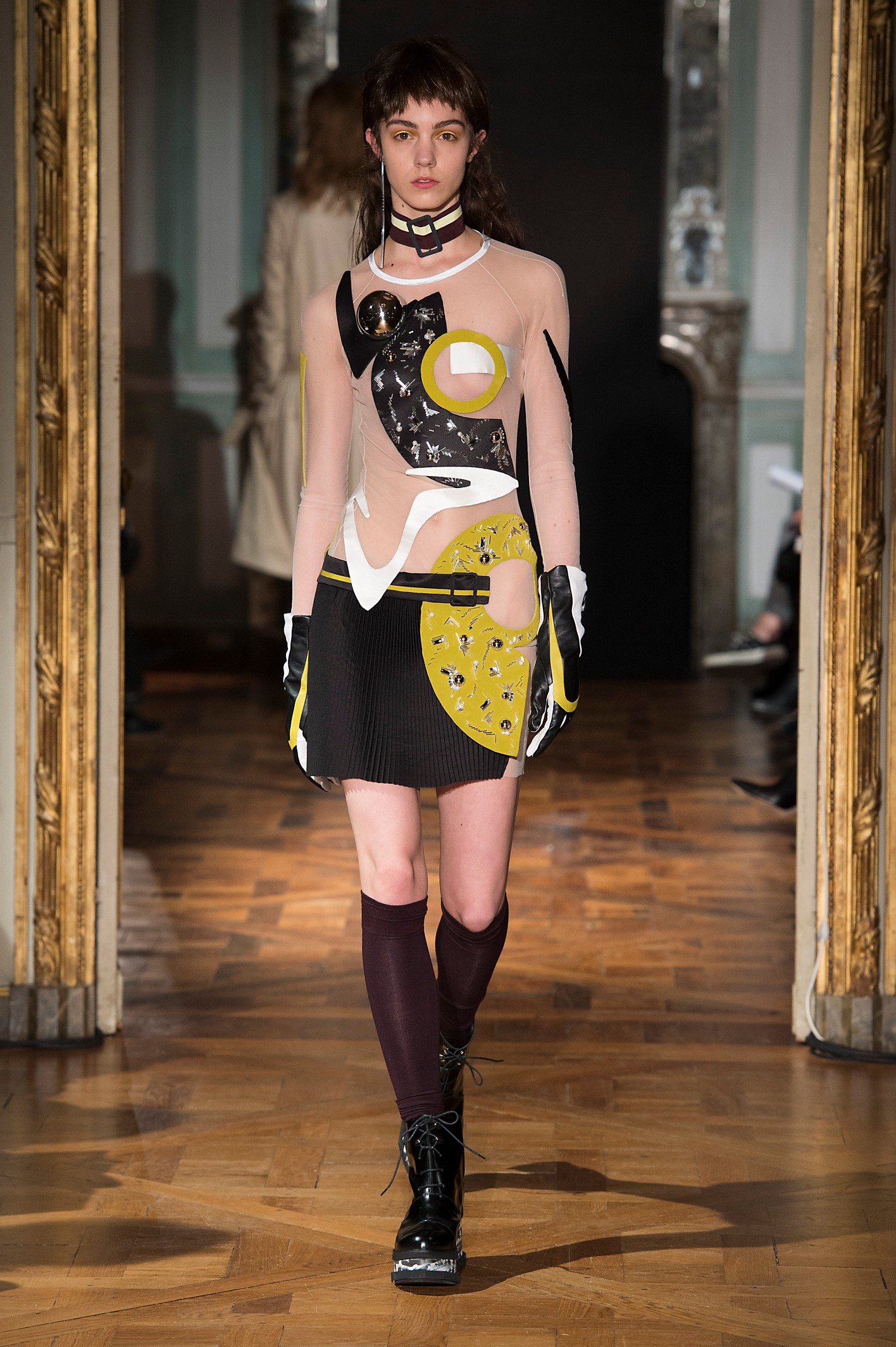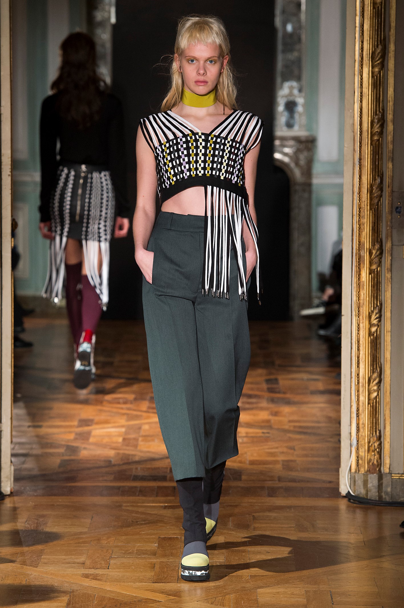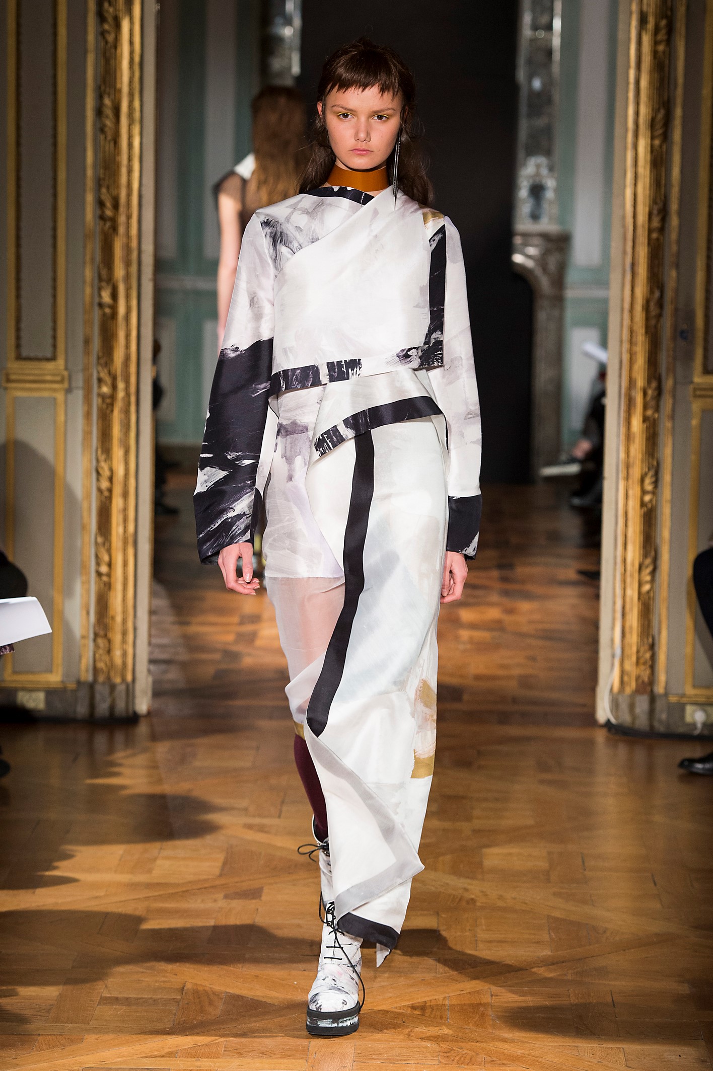 Anne Sofie Madsen nous a présenté une collection Automne Hiver 2015-2016 toujours aussi futuriste et grunge. Une collection accessoirisée par la maison Aristide. L’ensemble est graphique et moderne.