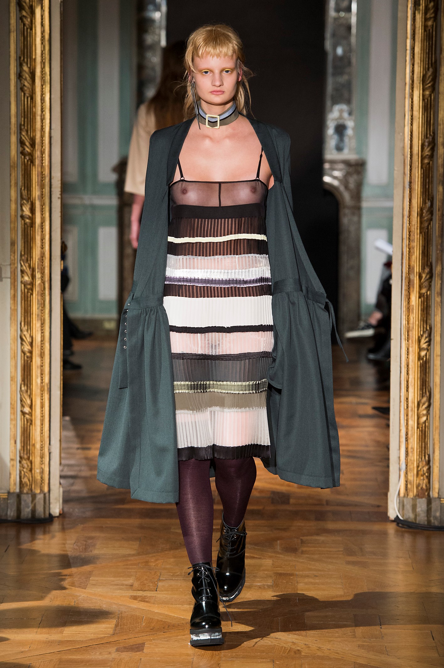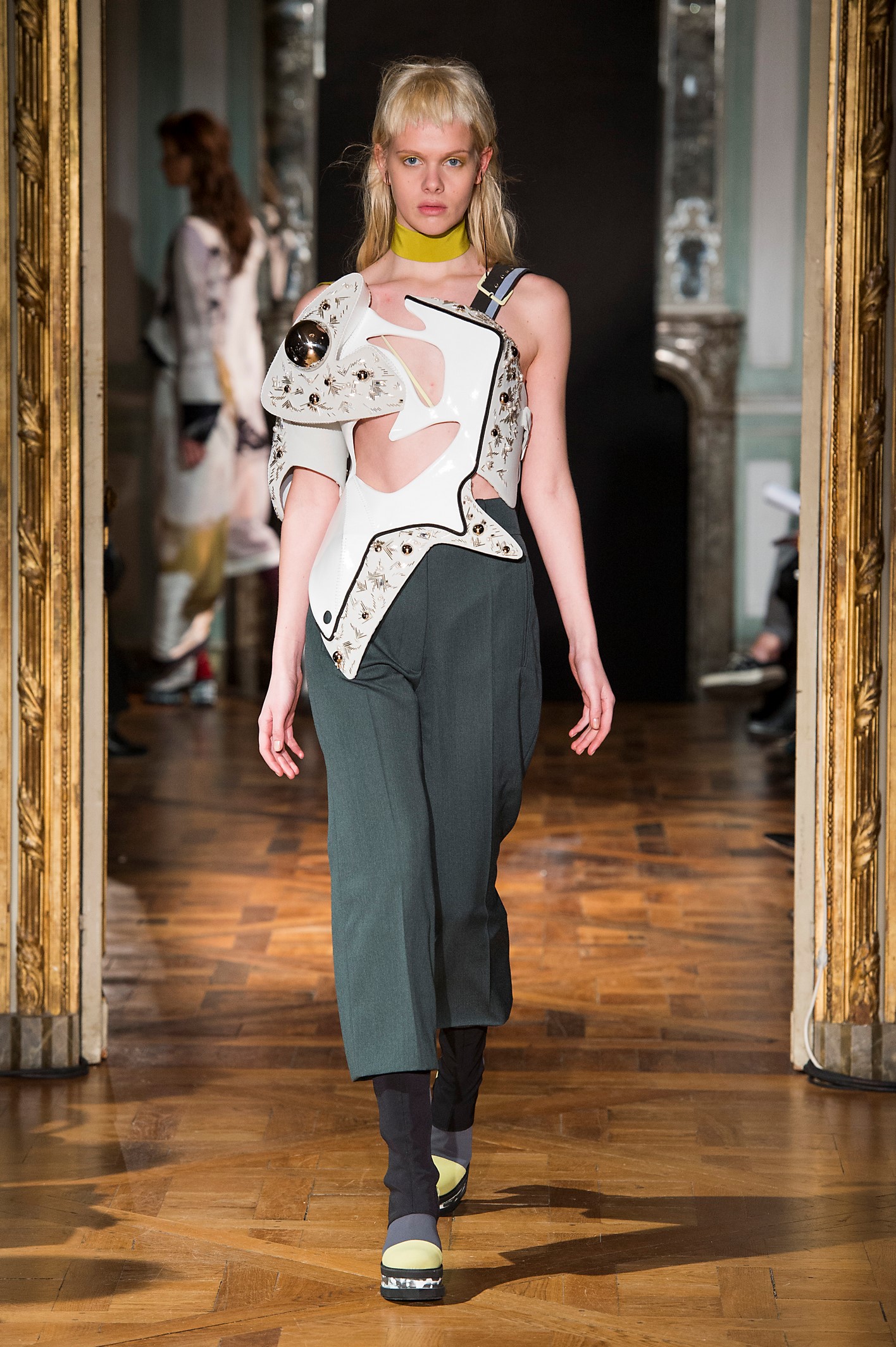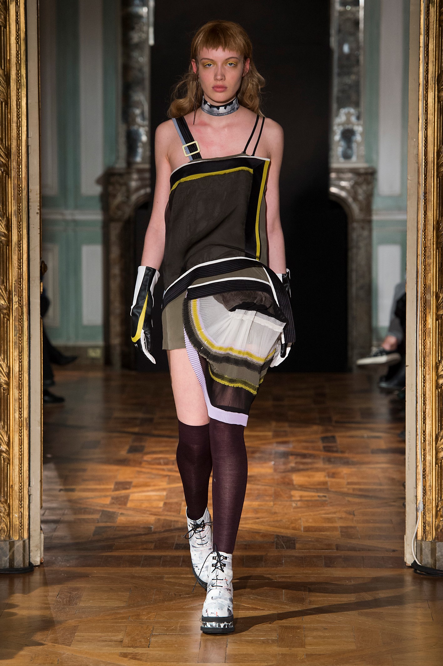 Anne Sofie Madsen nous a présenté une collection Automne Hiver 2015-2016 toujours aussi futuriste et grunge. Une collection accessoirisée par la maison Aristide. L’ensemble est graphique et moderne.