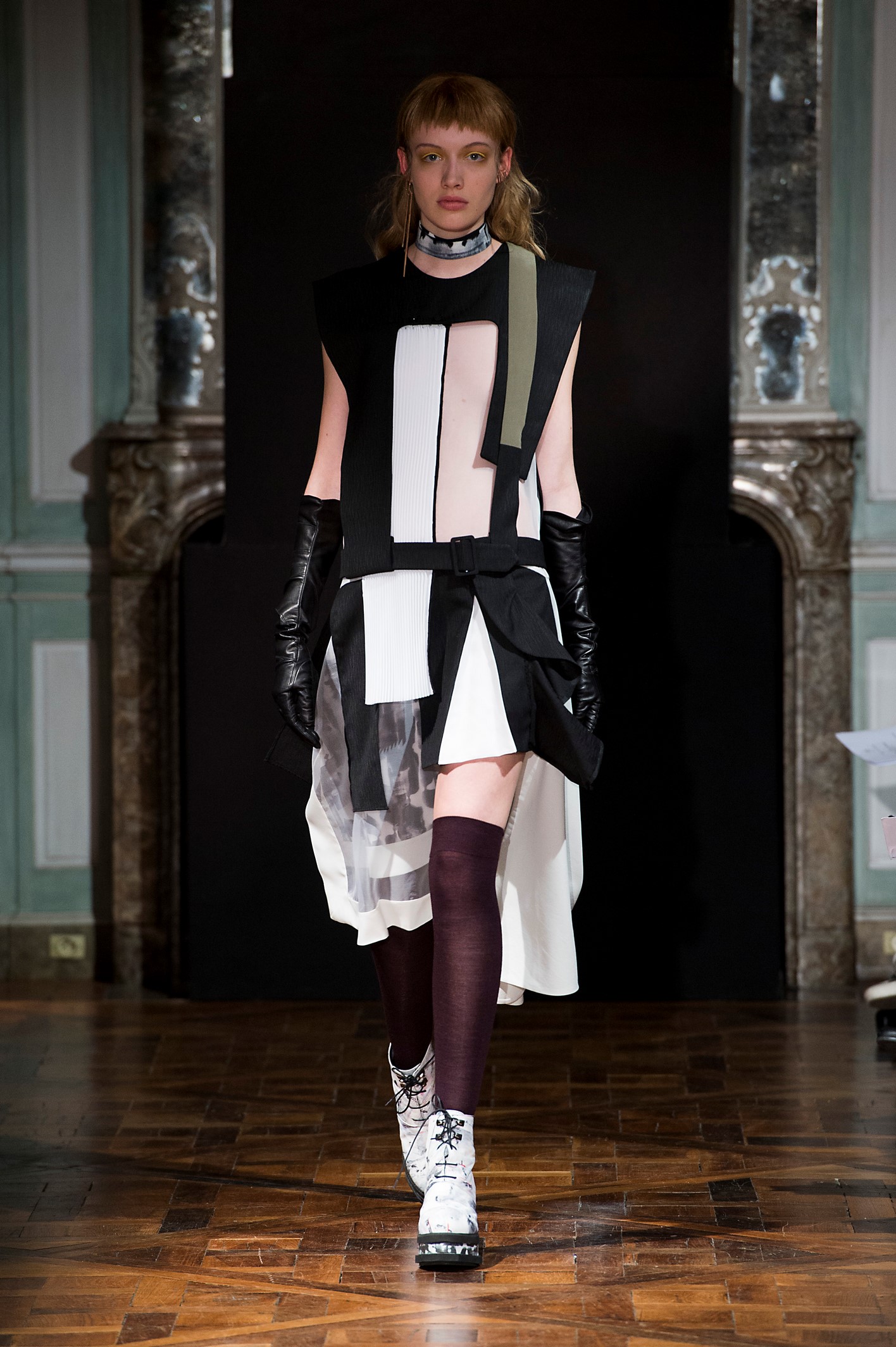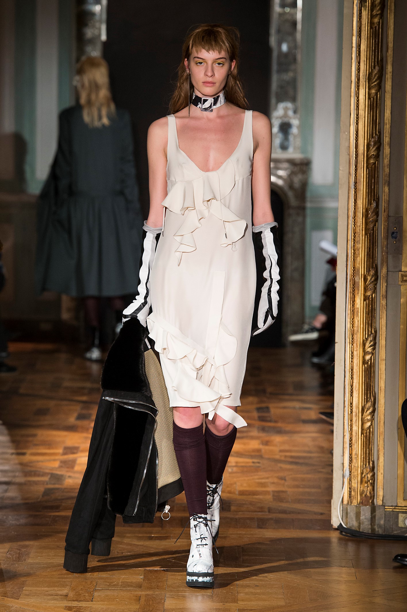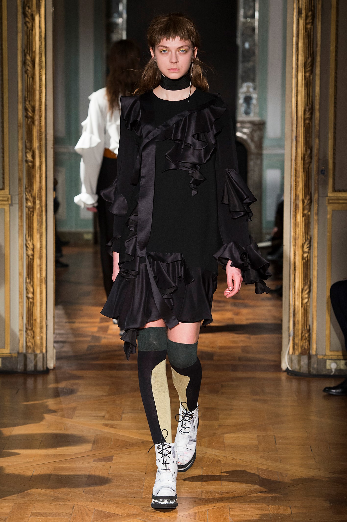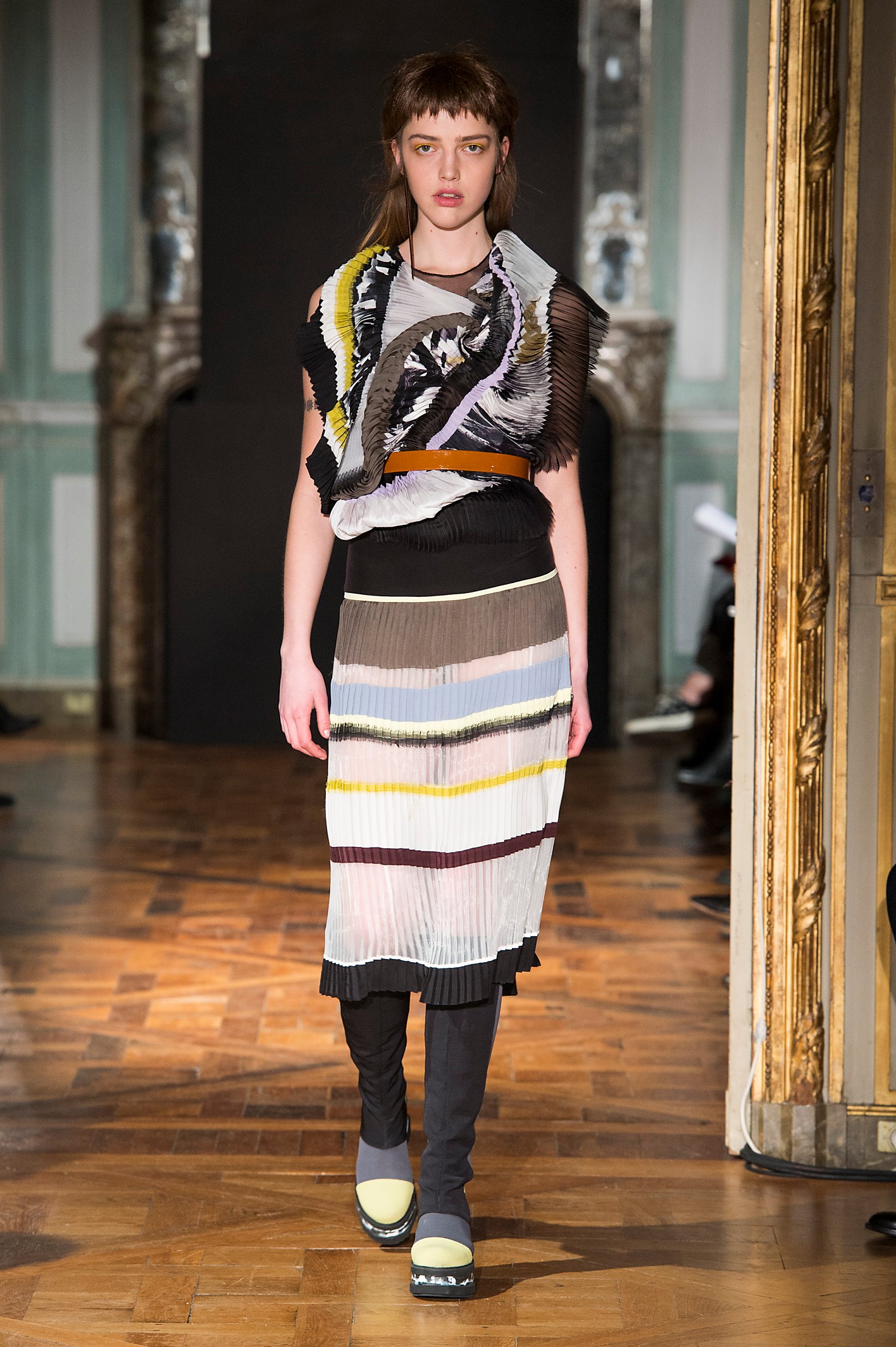 Anne Sofie Madsen nous a présenté une collection Automne Hiver 2015-2016 toujours aussi futuriste et grunge. Une collection accessoirisée par la maison Aristide. L’ensemble est graphique et moderne.