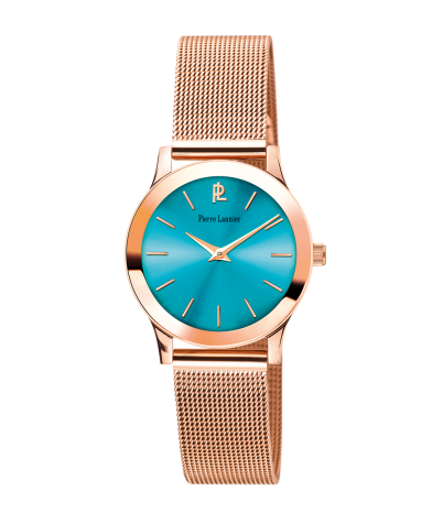 Trois couleurs phares, le turquoise, le vert véronèse et le rose fuschia, déclinées sur des cadrans soleillés, boîtier et bracelet acier en maille milanaise acier doré rosé sont disponibles au prix de 109 euros.
