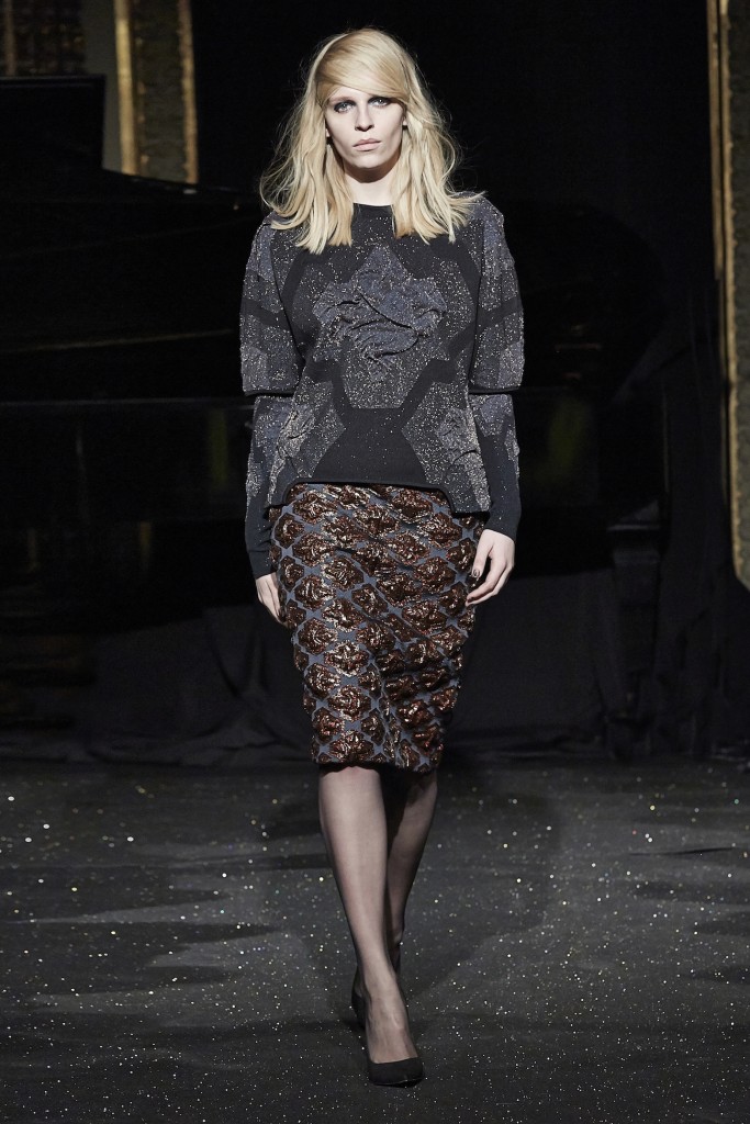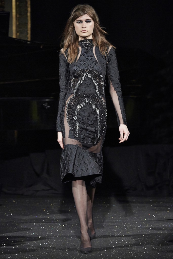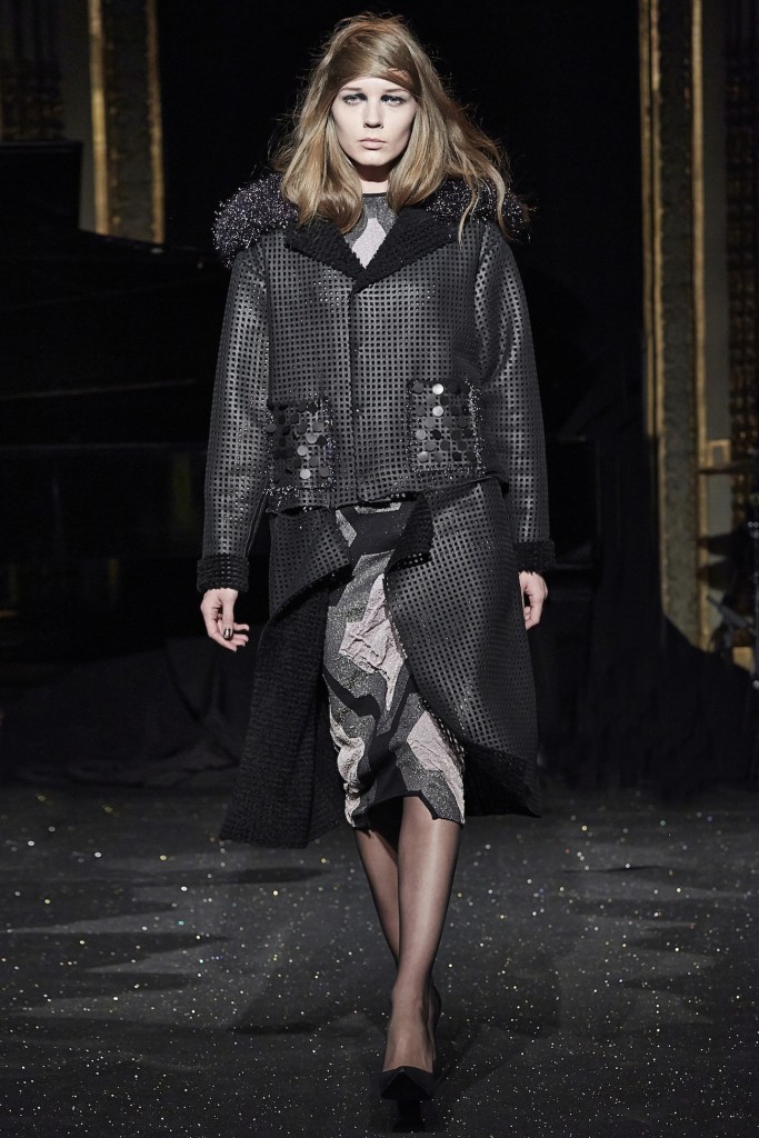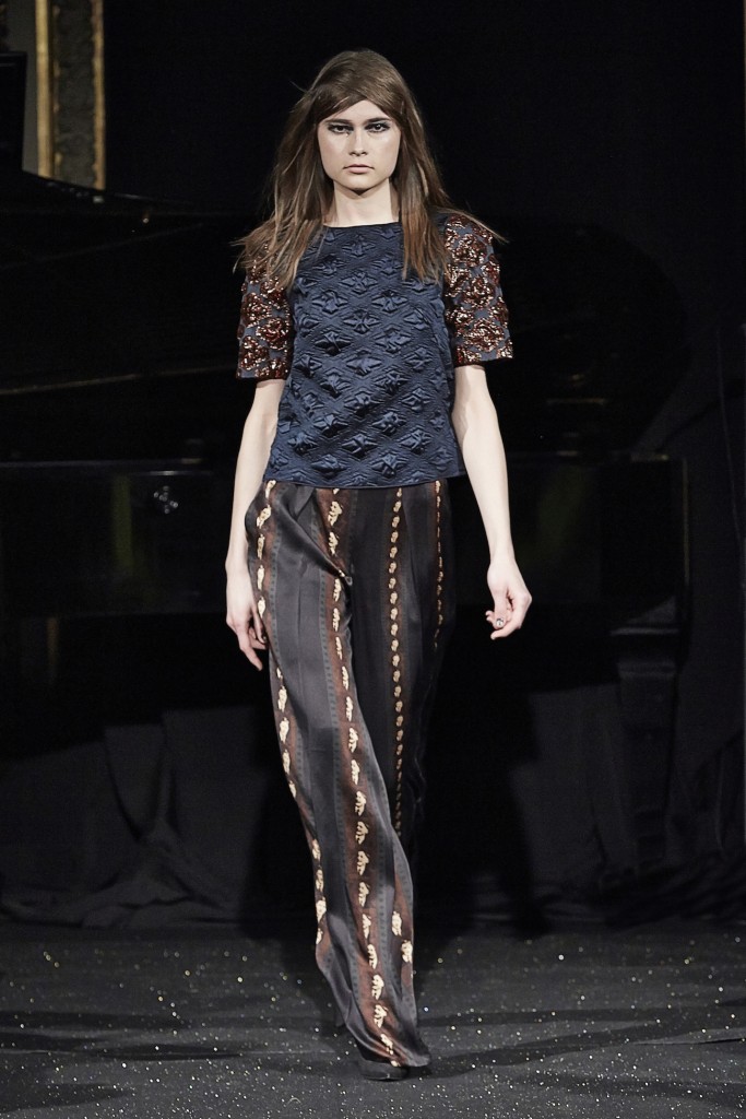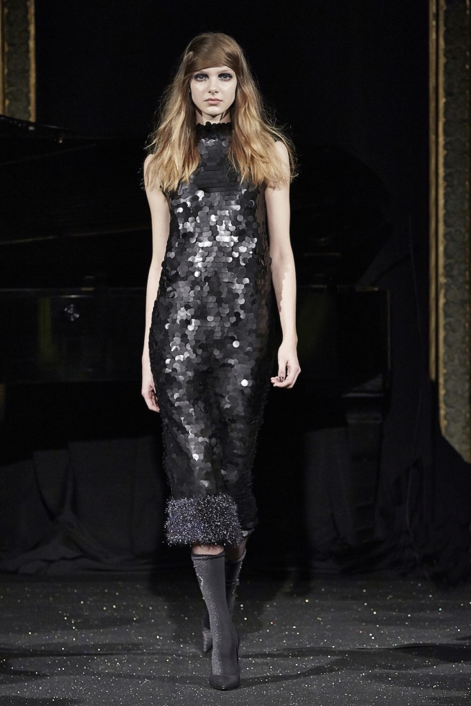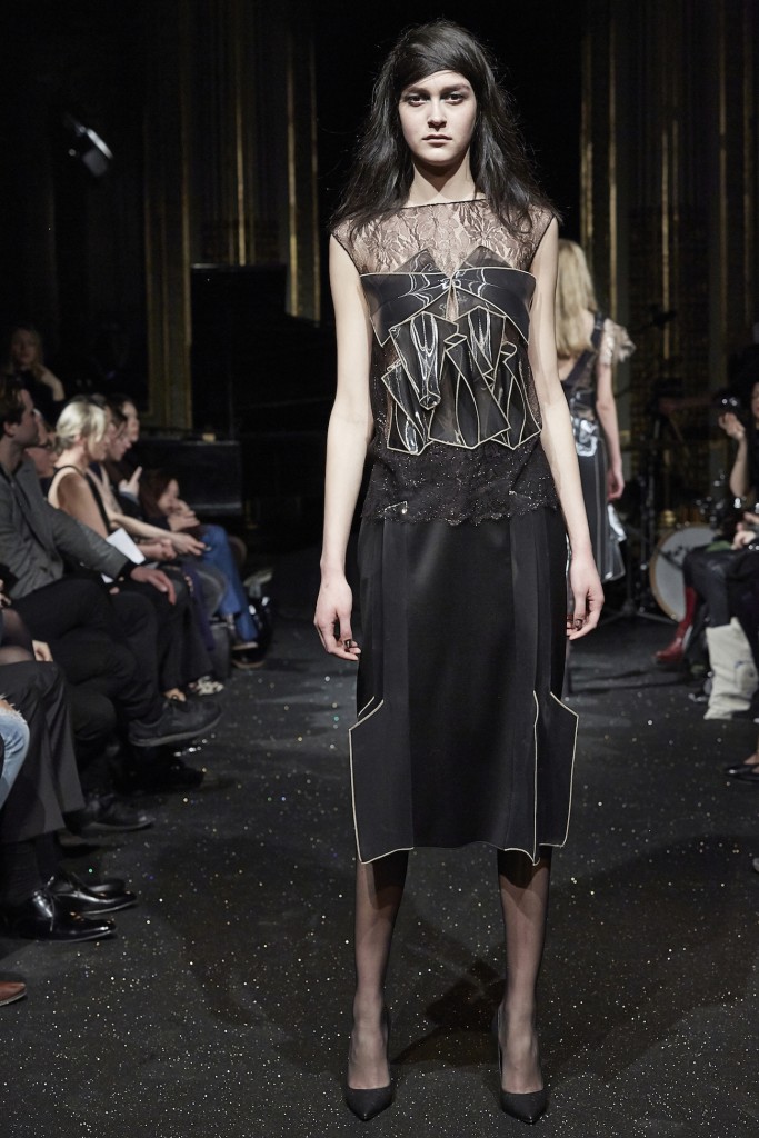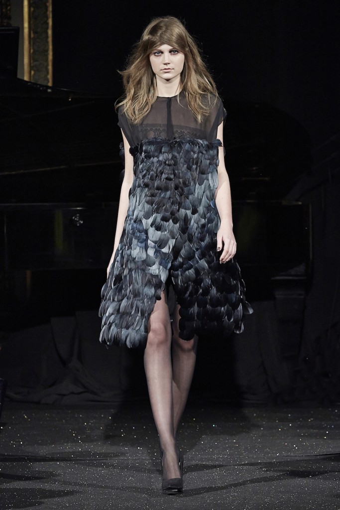De subtils manteaux sombres, des costumes parfaitement taillés et des robes de tous les jours, des pièces en cuir découpées au laser, et des forêts de plumes.  Gosia Baczynska n’a pas lésiné sur les détails pour élaborer une collection hors du commun, sombre mais subtile.