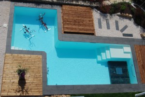 Ce concept exclusif s’articule autour de 2 espaces : 1 coin piscine traditionnel associé à 1 espace remise en forme disposant d’appareils destinés à l’aquagym. Avec ce concept original, il est désormais possible de pratiquer seul ou accompagné des exercices de mise en forme chez soi tout en profitant de son environnement et des bienfaits du soleil.