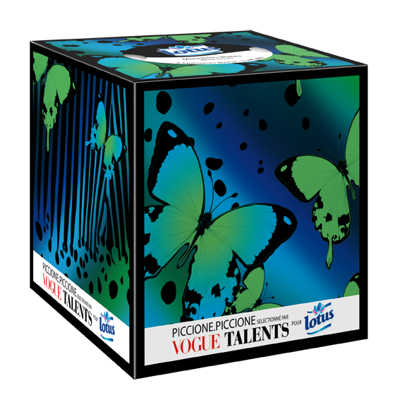Parce que l’esthétique et le design sont des éléments déterminants d’une marque, Lotus collabore avec Vogue Talents pour apporter dans vos maisons non seulement un objet à la mode, mais aussi un véritable design d’intérieur. En ce début 2015, Lotus a lancé une édition limitée pour la Collection Boîtes Cubiques avec trois designs exclusifs. C’est le très talentueux designer italien Piccione.Piccione, sélectionné par Vogue Talents, qui a signé les nouvelles Boîtes Cubiques Lotus et fait de simples boîtes de mouchoirs, de véritables objets de décoration.