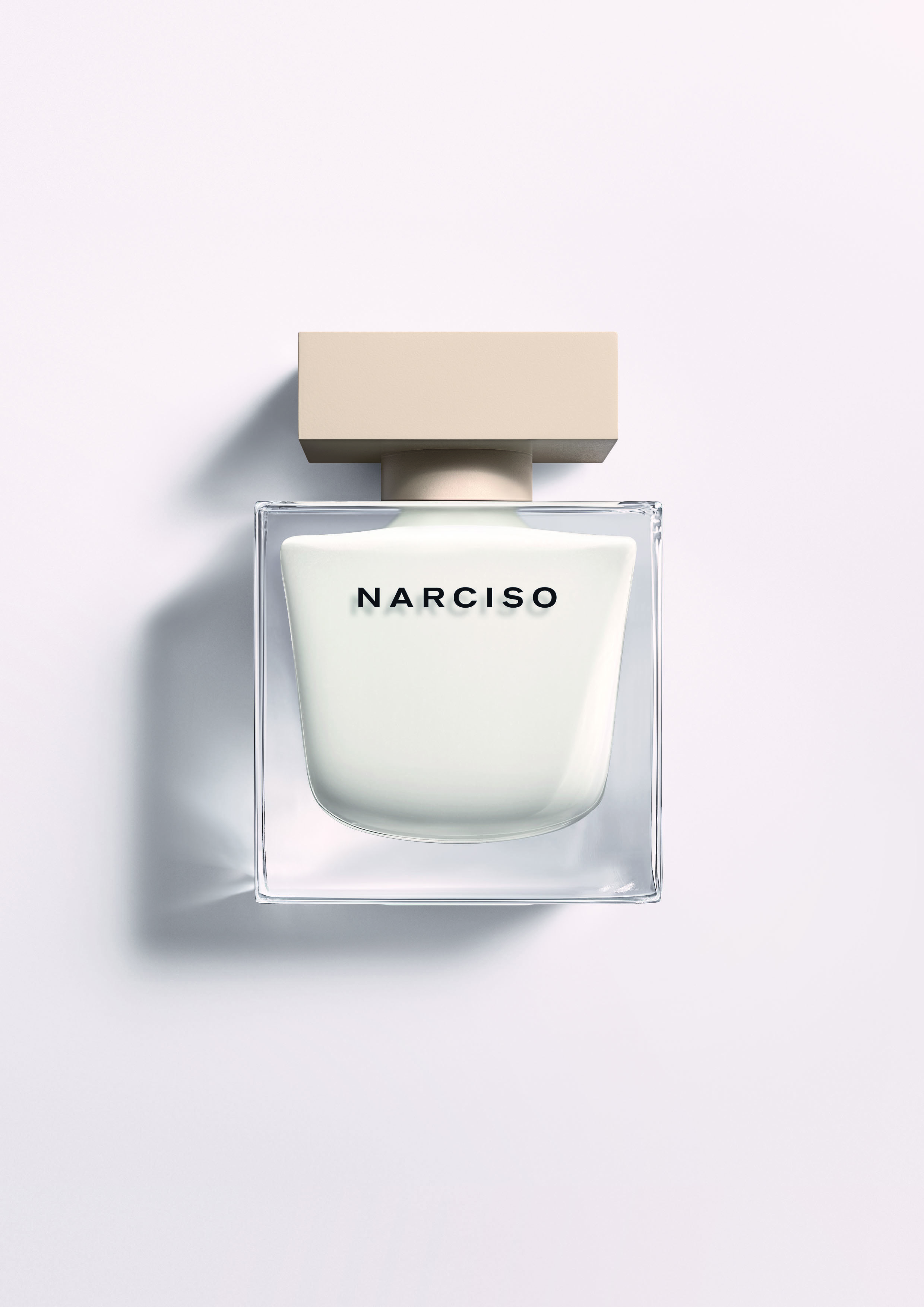 Le flacon de Narciso incarne l’excellence créative et l’art de l’éloquence, sa forme carrée est déclinée en blanc crème mat, jouant les contrastes avec les reflets du flacons, le logo noir exprime la simplicité.