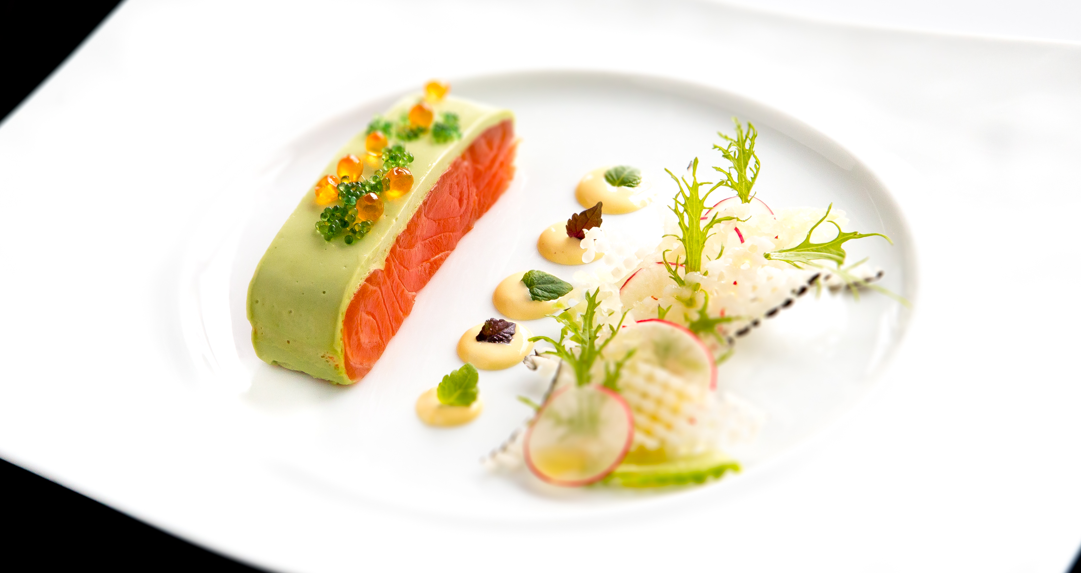 - Bavarois de petit pois oeuf poché copeaux d’lomo
