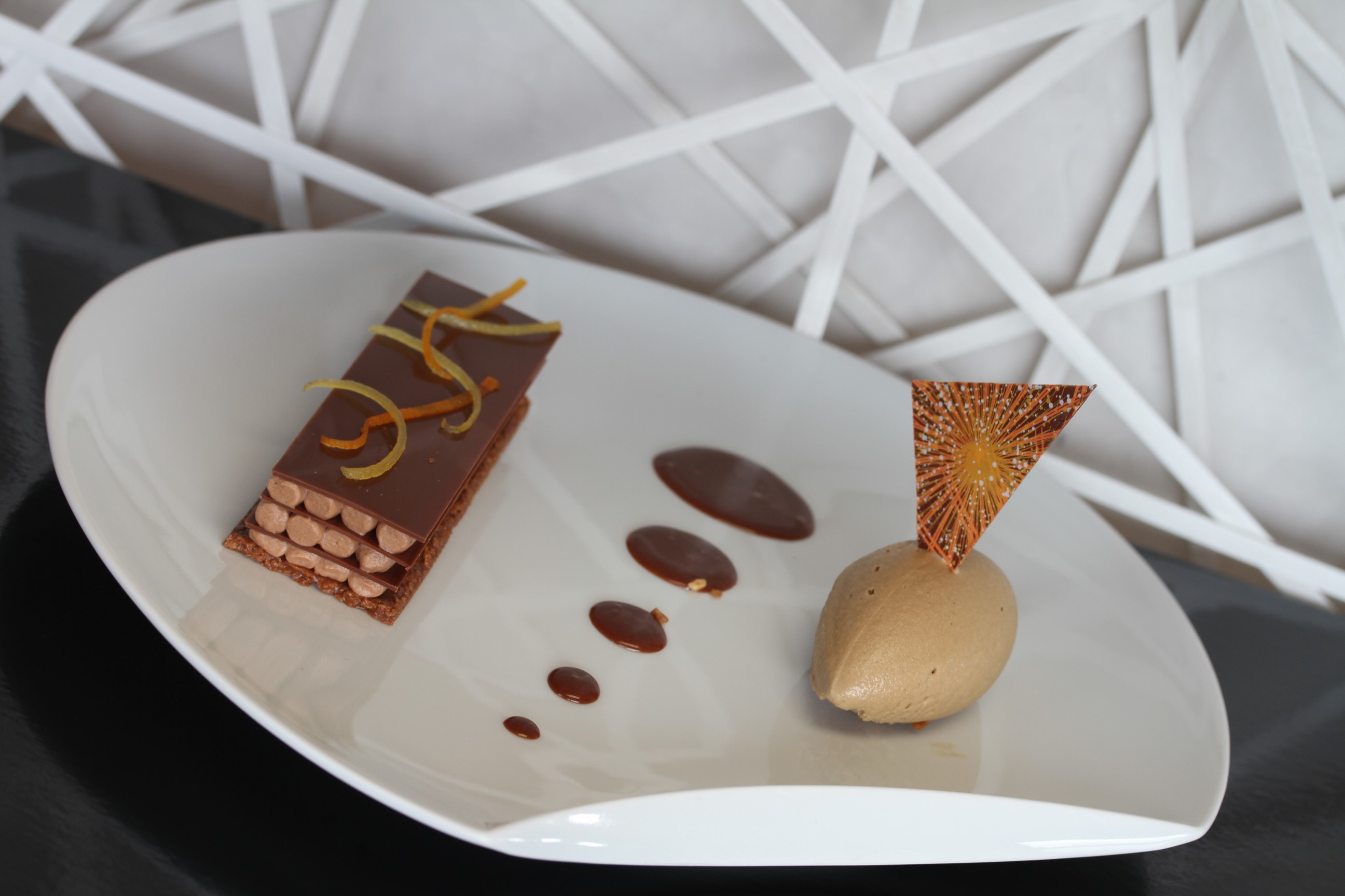 - Mille-feuille croquant praliné chocolait glace arabica aux agrumes