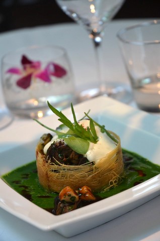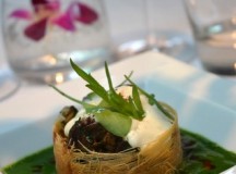 Tartare de veau, mangue et coriandre, huiles parfumées