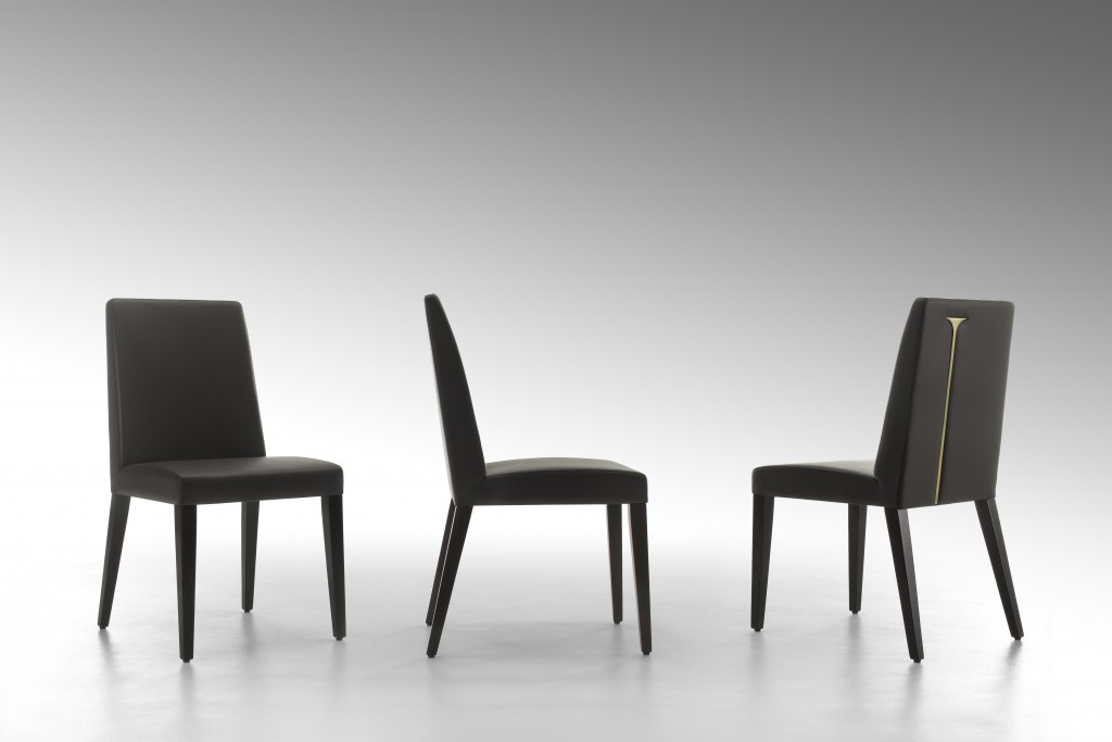 Un living qui souligne la richesse de la recherche du style, définie par des combinaisons de volumes et matériaux différents, rugueux et lisses, simples et nobles. C’est dans ce contexte que des meubles comme la chaise Artù, prennent vie. Pour cette chaise aux proportions modernes, de précieux velours sont en contraste avec la base cylindrique en laiton mat satiné.